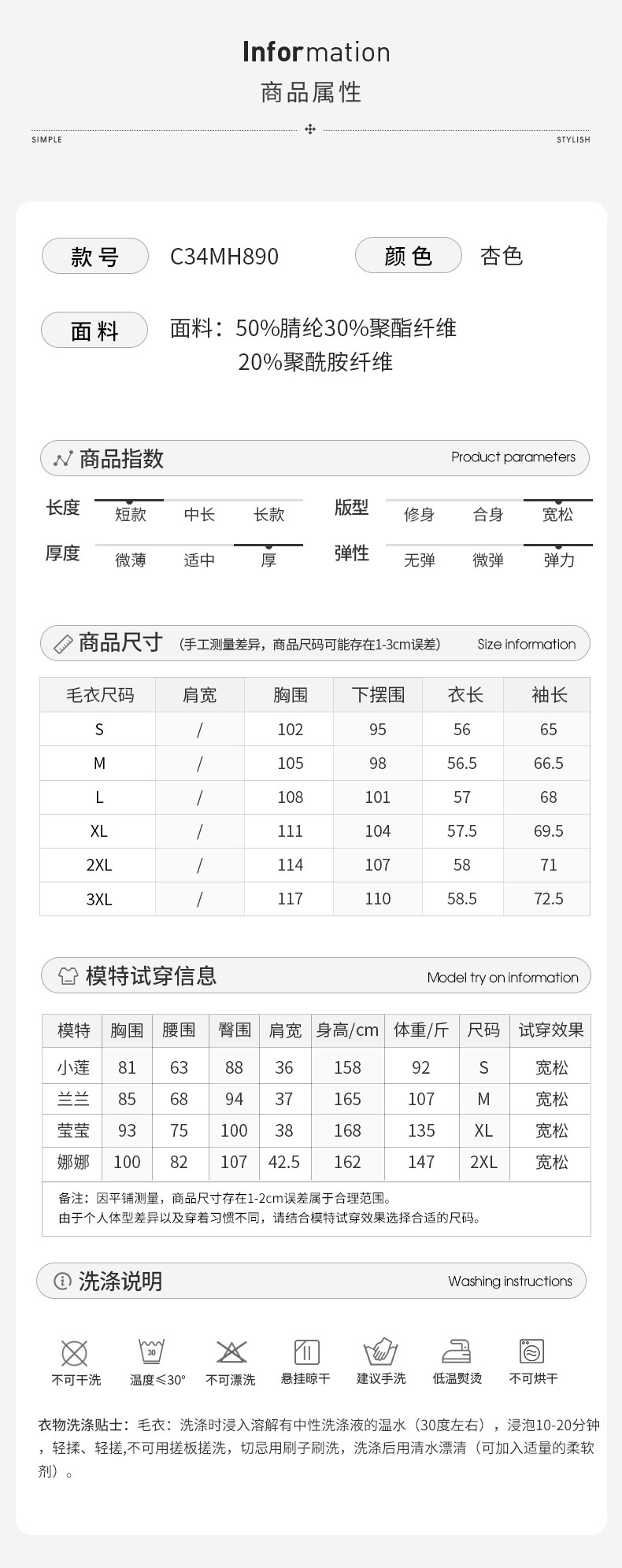| 服裝版型 | 寬松型 |