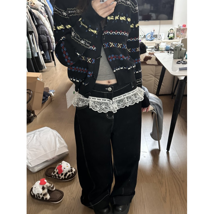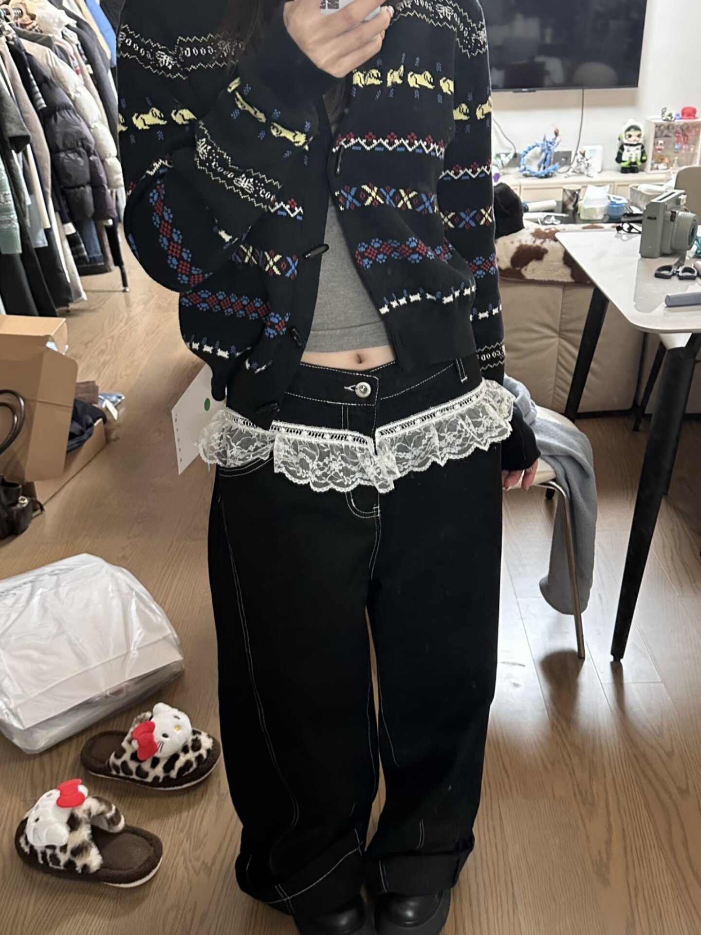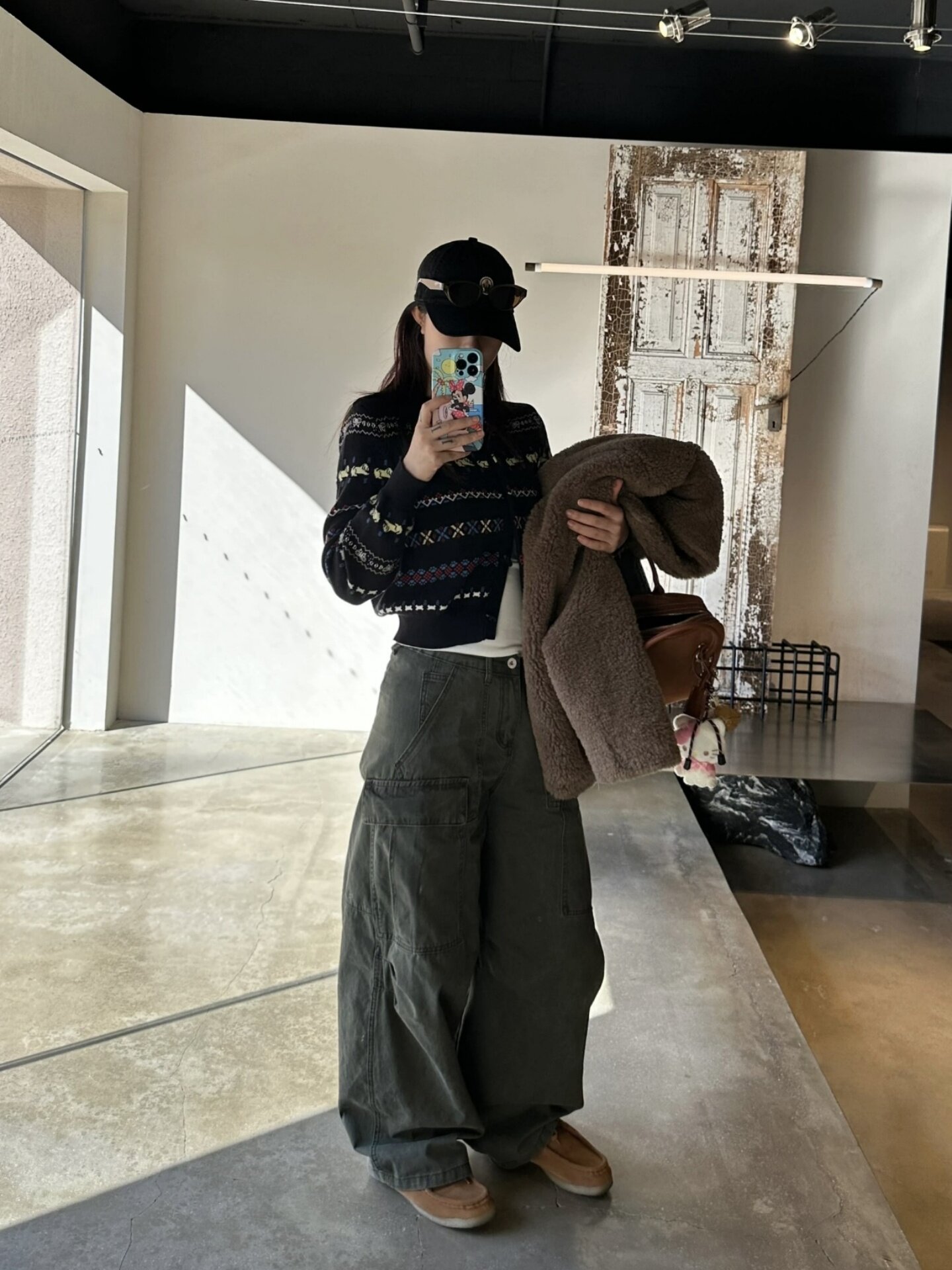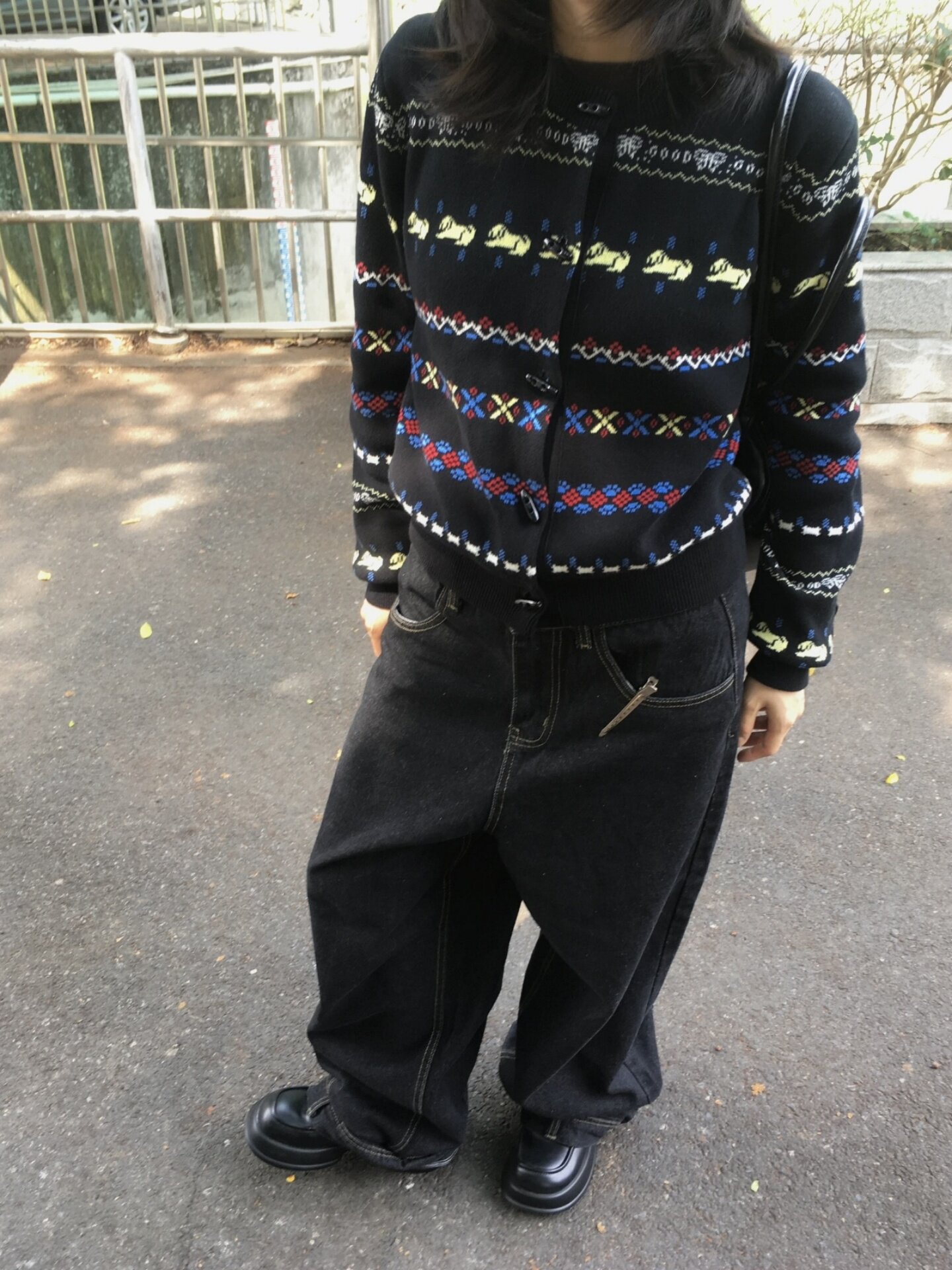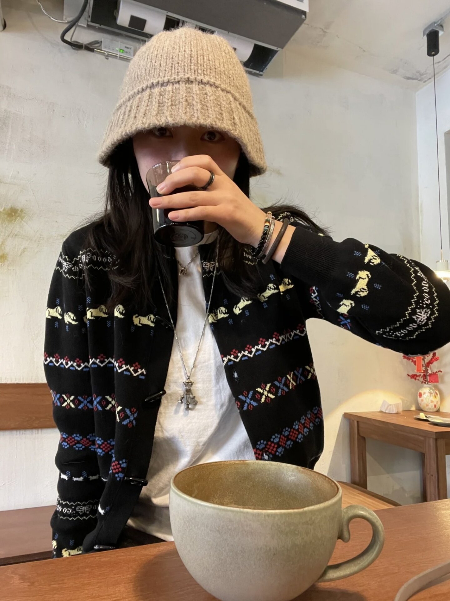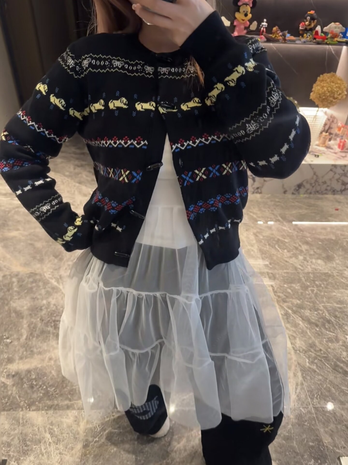 古著感~北歐復古可愛蝴蝶小狗提花費爾島毛衣外套牛角釦針織開衫