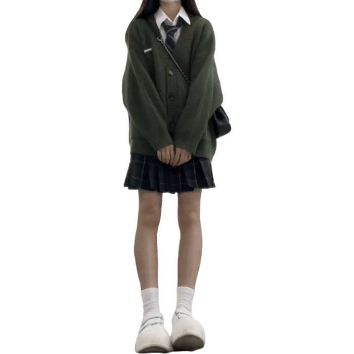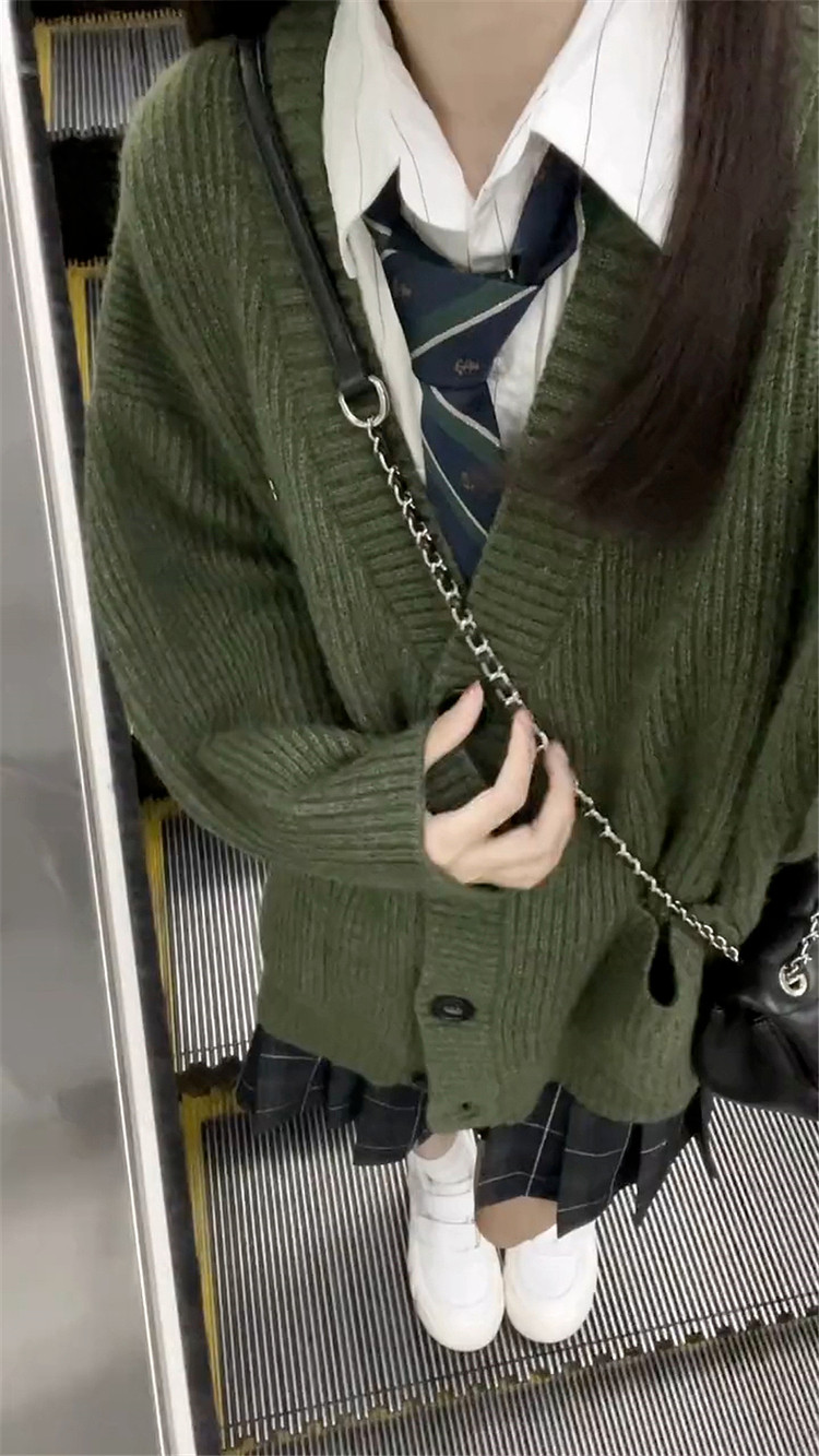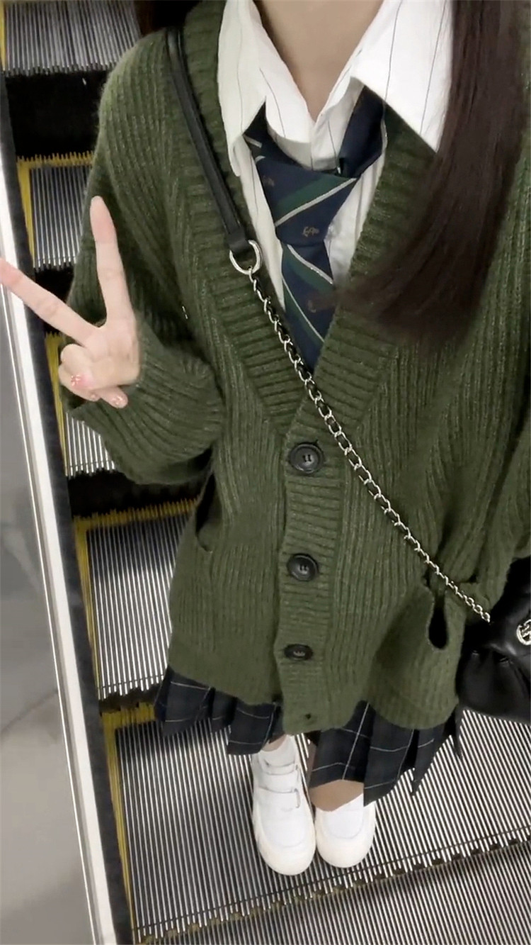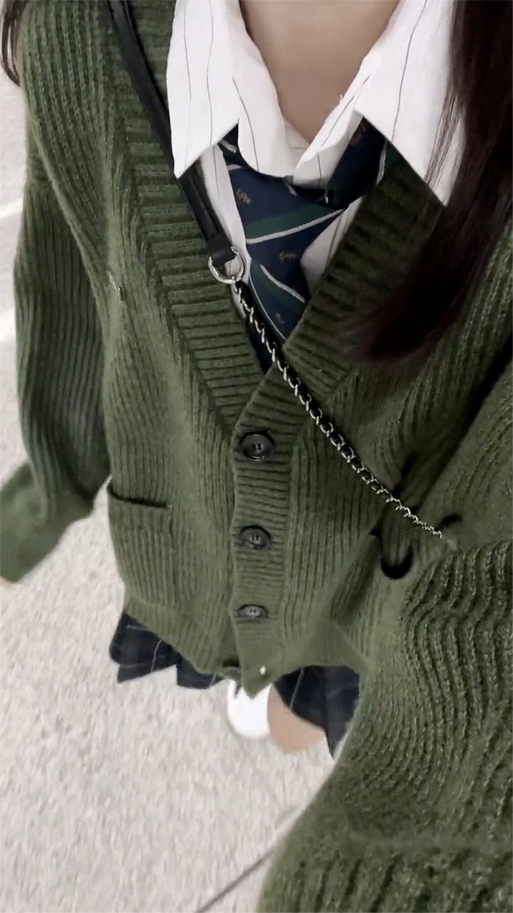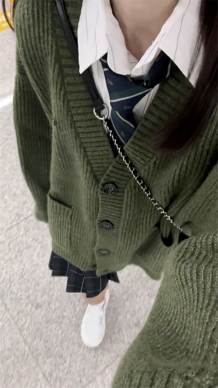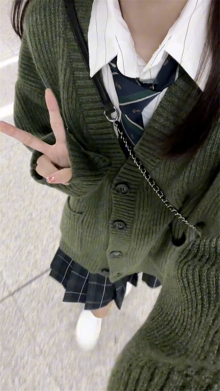 費爾島慵懶風綠色毛衣女秋冬2025新款高級感針織開衫外套韓系早秋