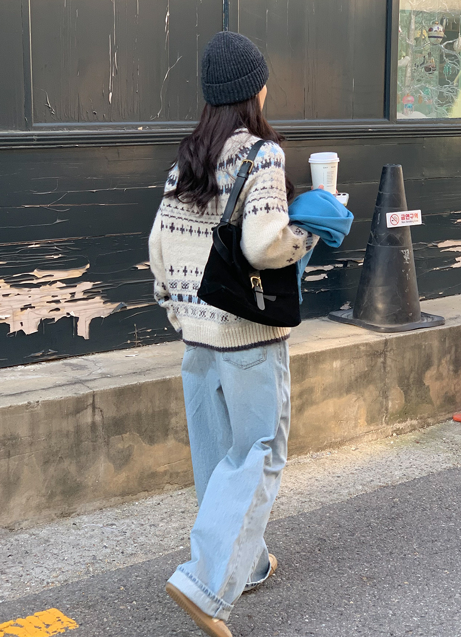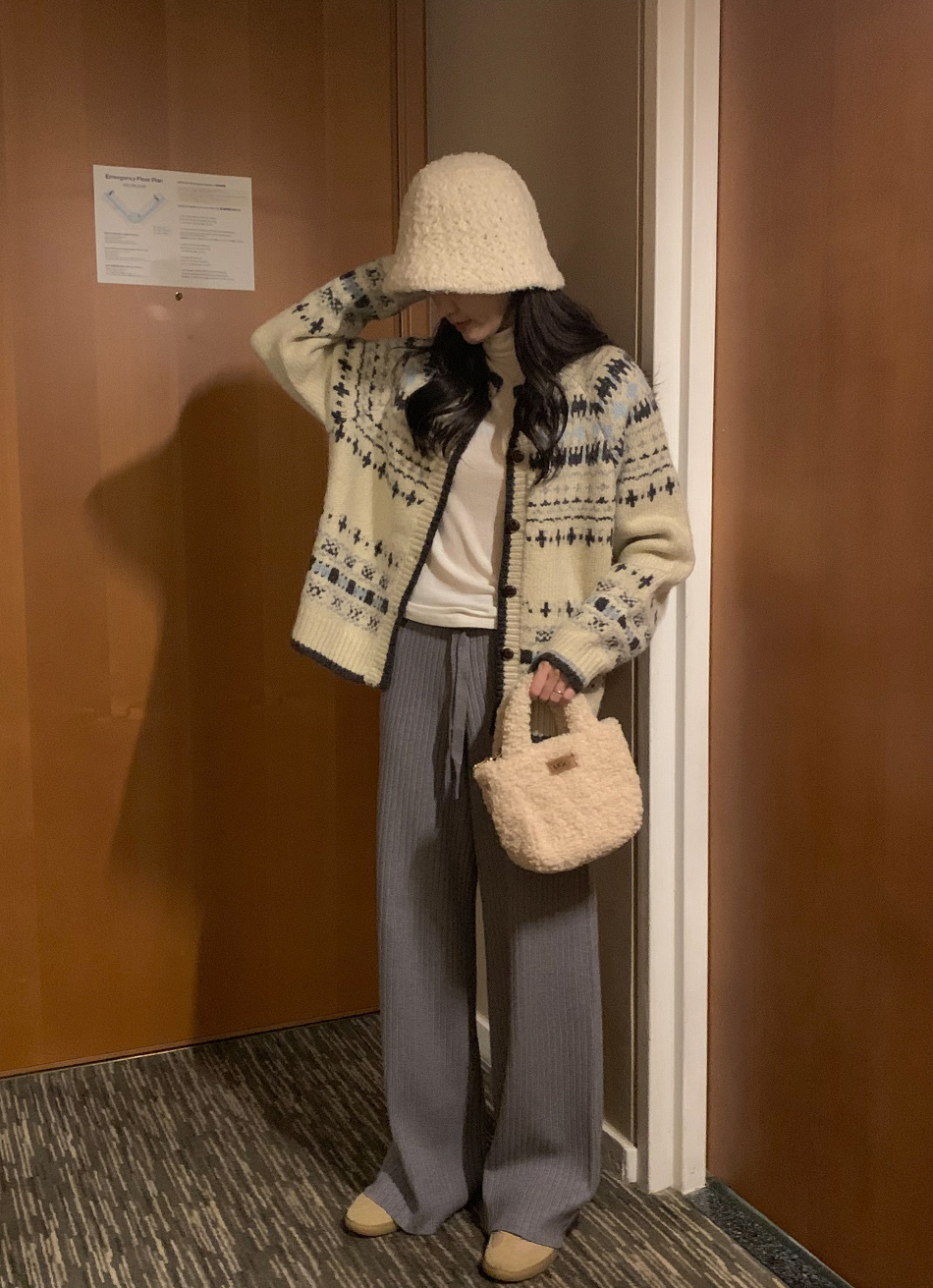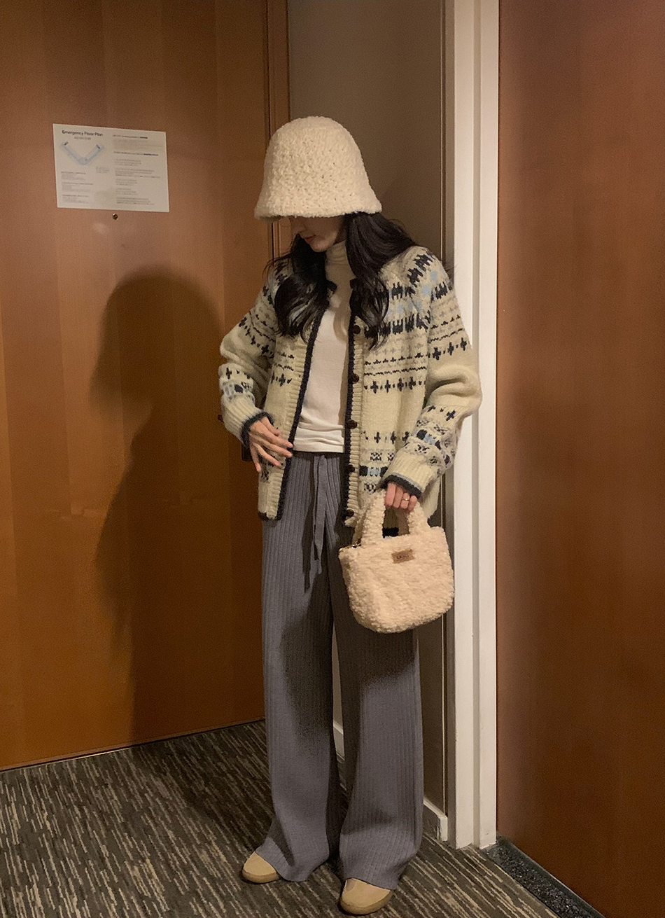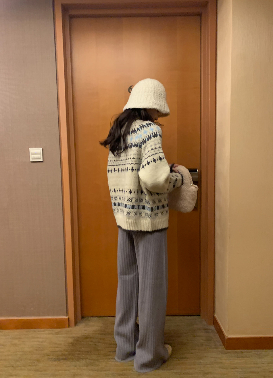 高級感復古提花圓領針織開衫女秋冬加厚單排釦寬松費爾島毛衣外套
