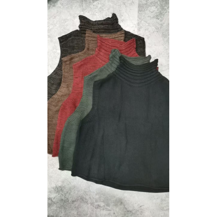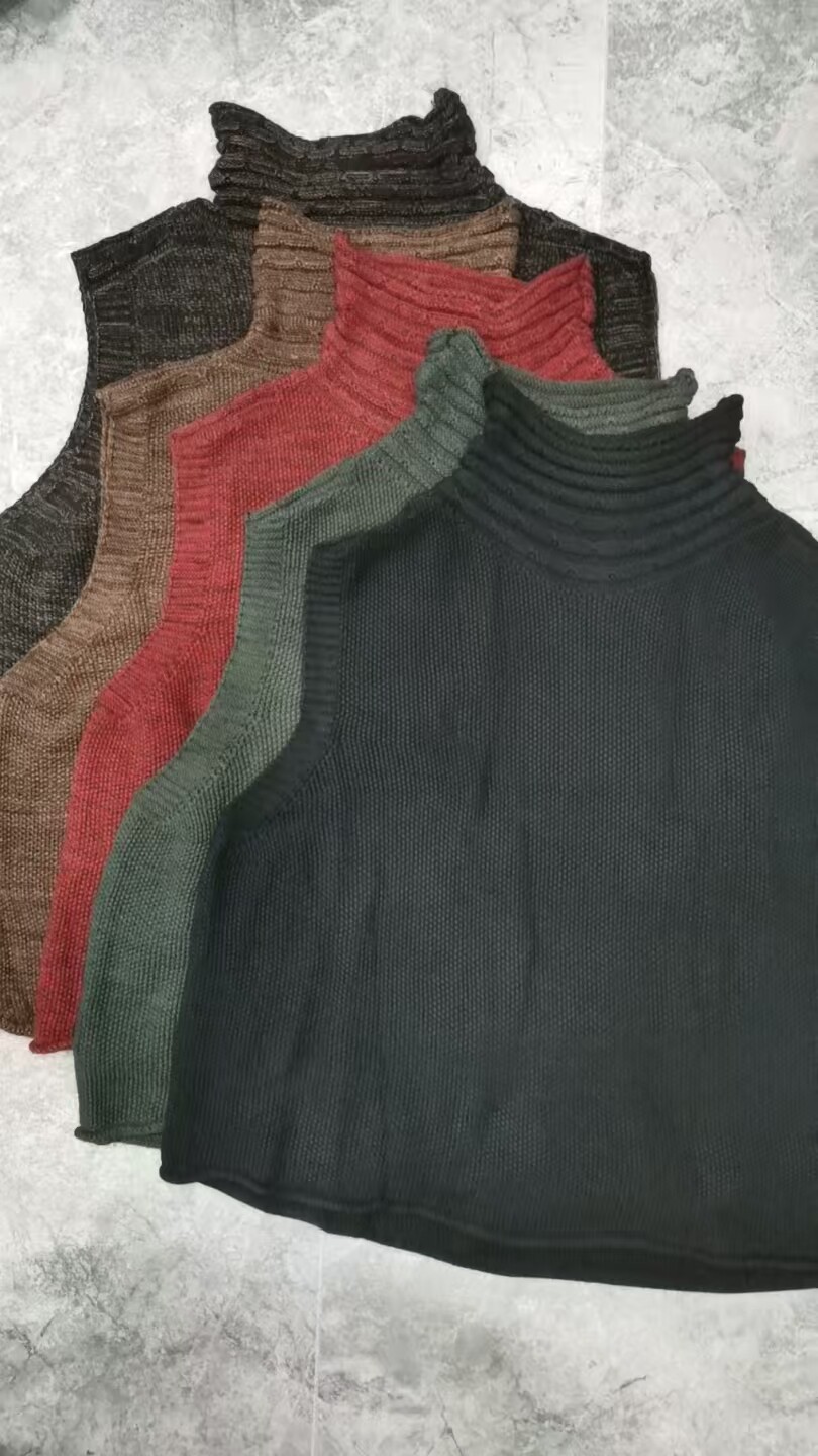 710秋季新款堆堆領口無袖純色百搭毛衣;衣長56 胸圍120