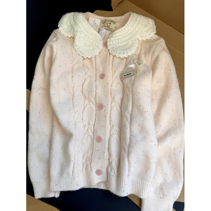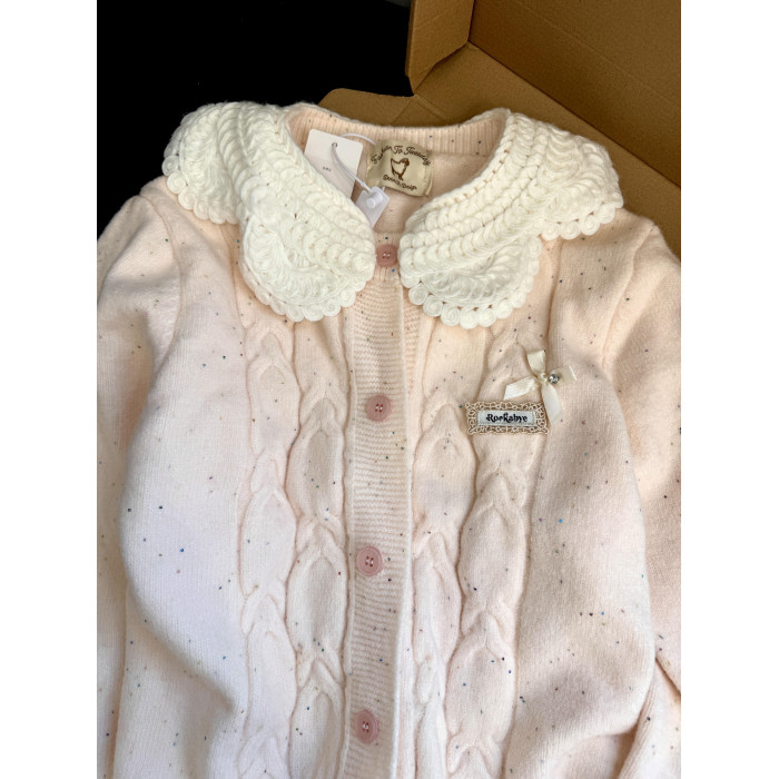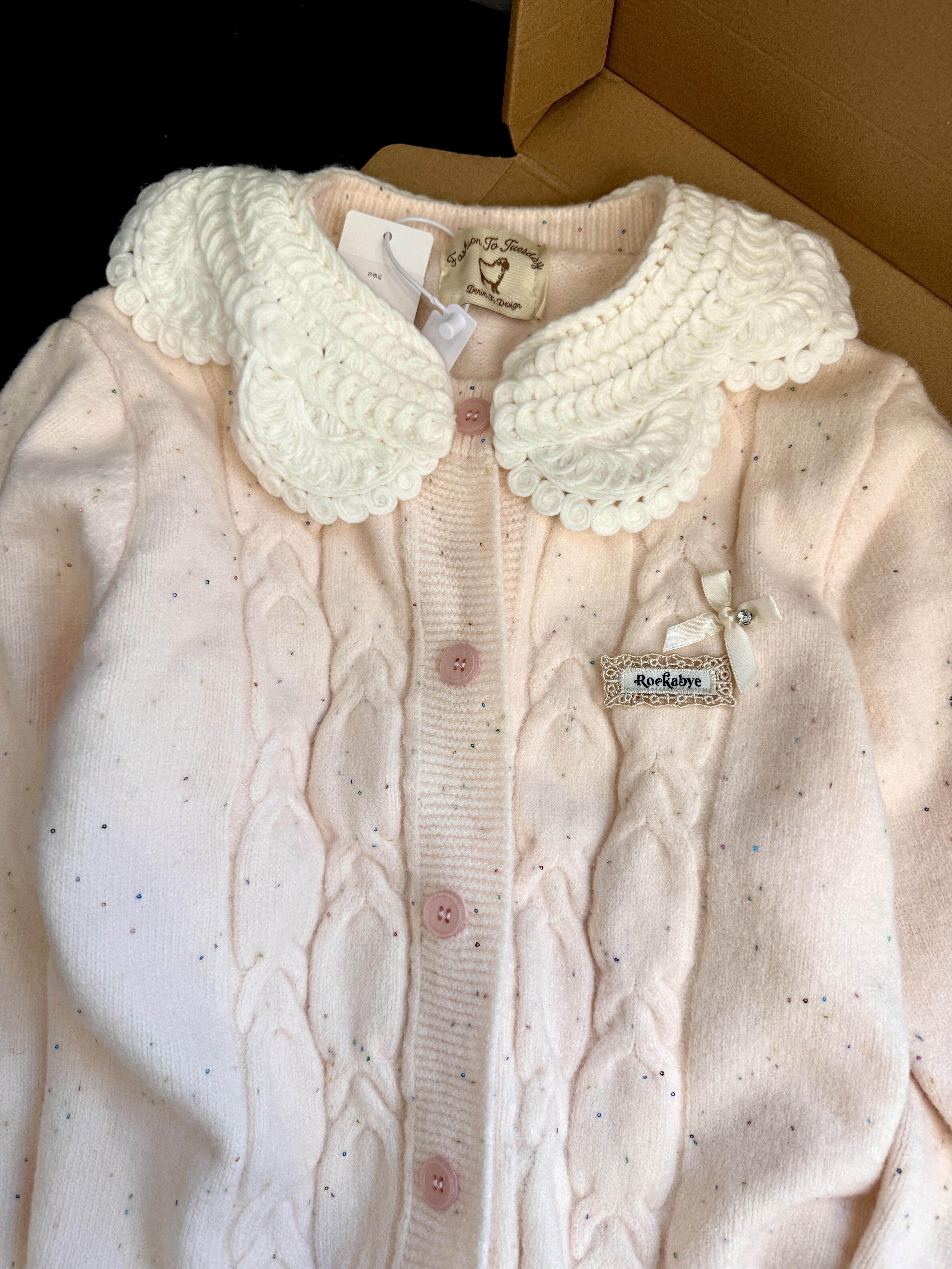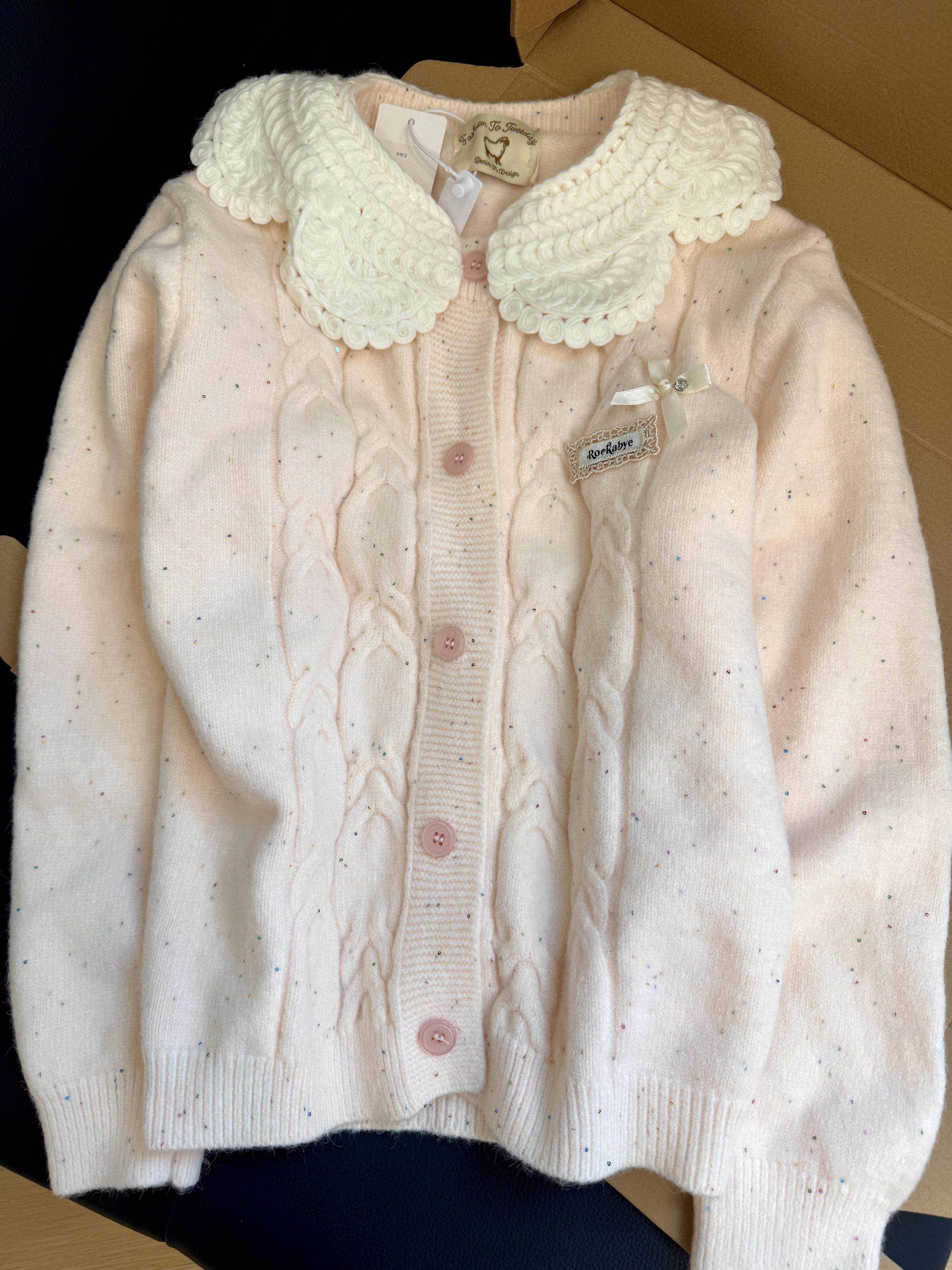 蕾絲溫柔針織衫甜美拼接娃娃毛衣秋冬新款花邊針織開衫外套上衣