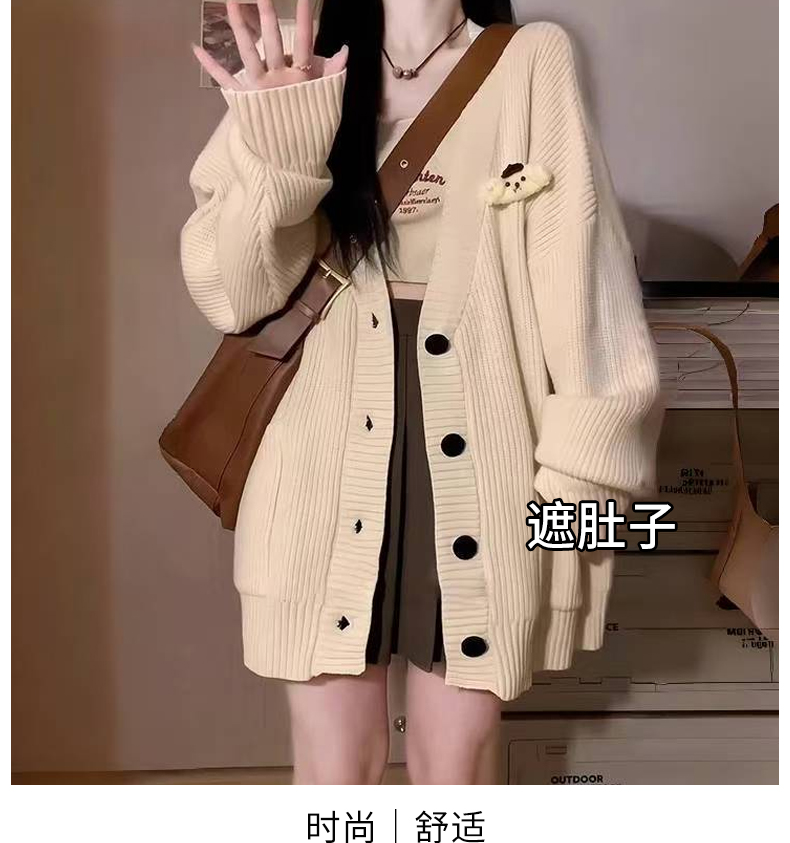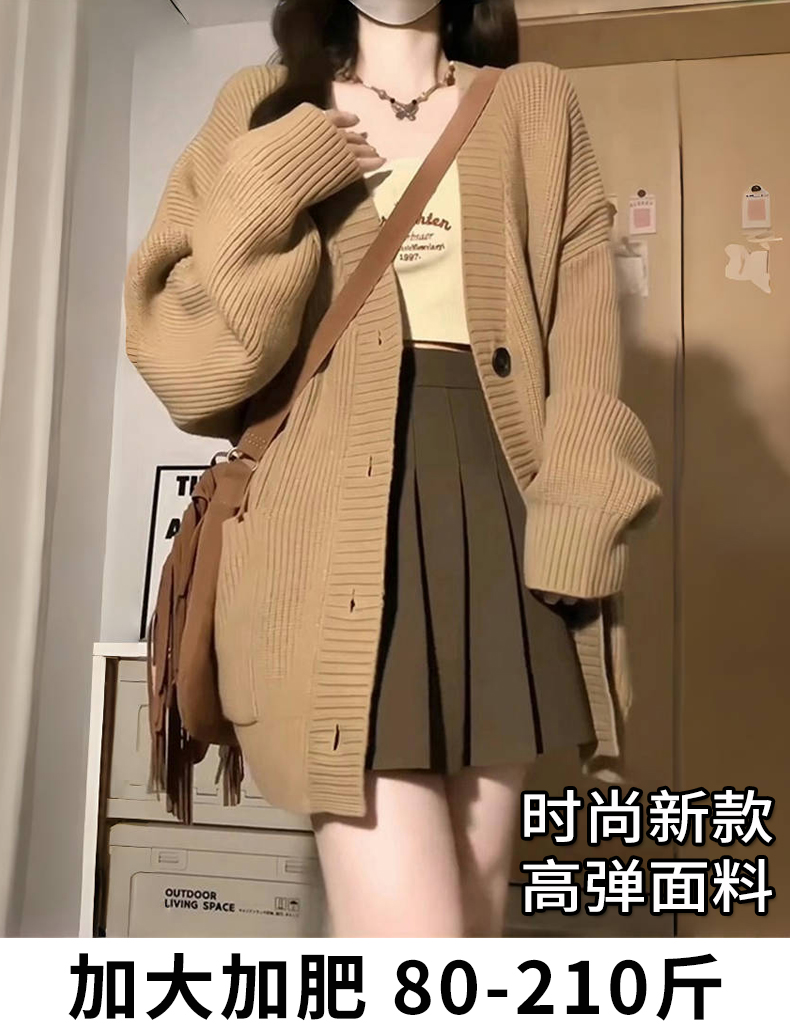 大碼慵懶風軟糯毛衣外套女針織開衫小個子學院風穿搭上衣胖mm秋冬