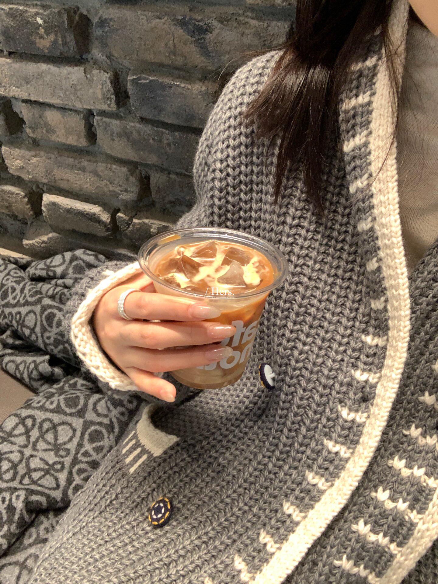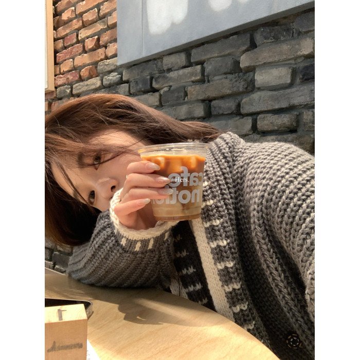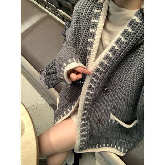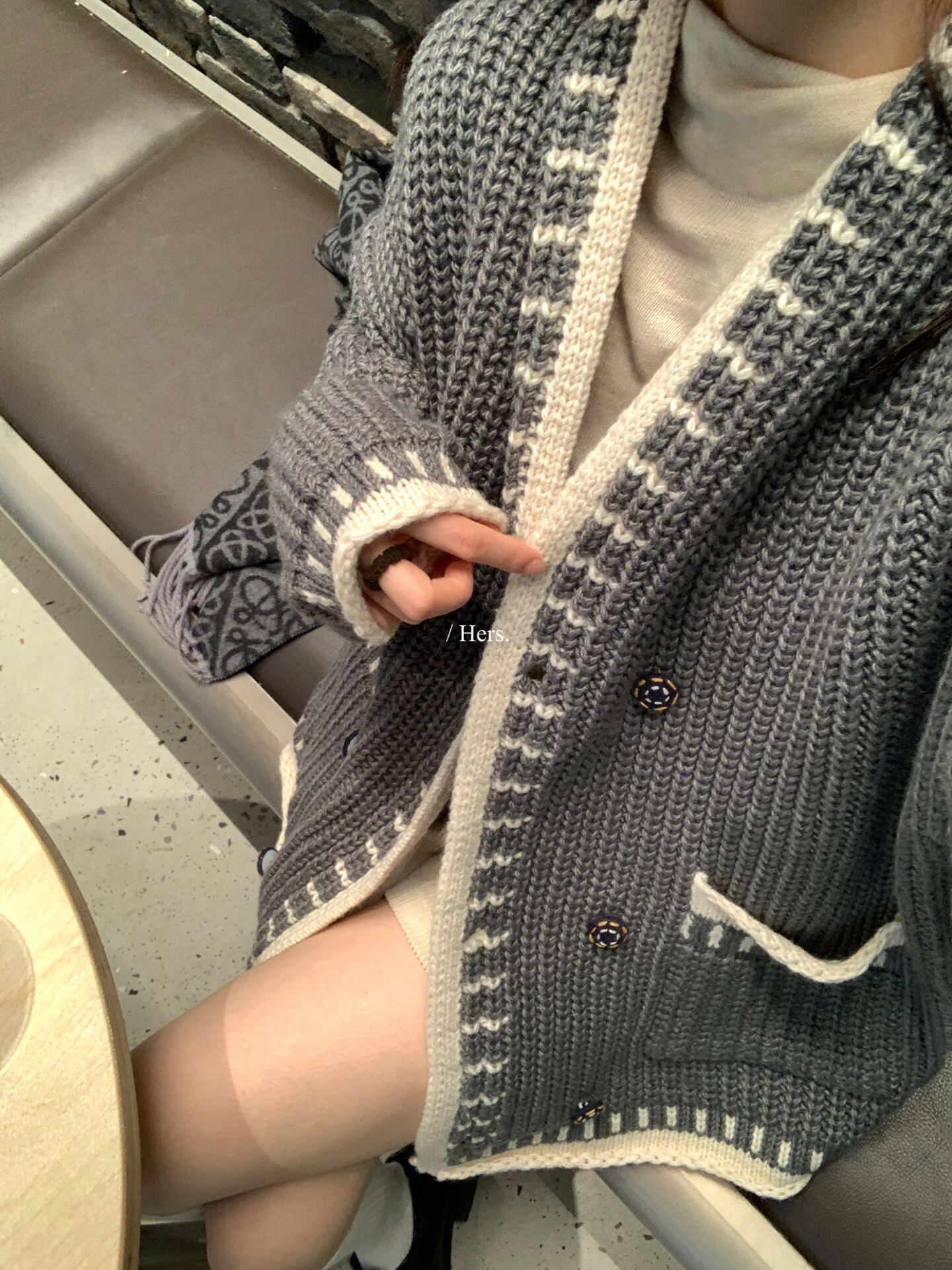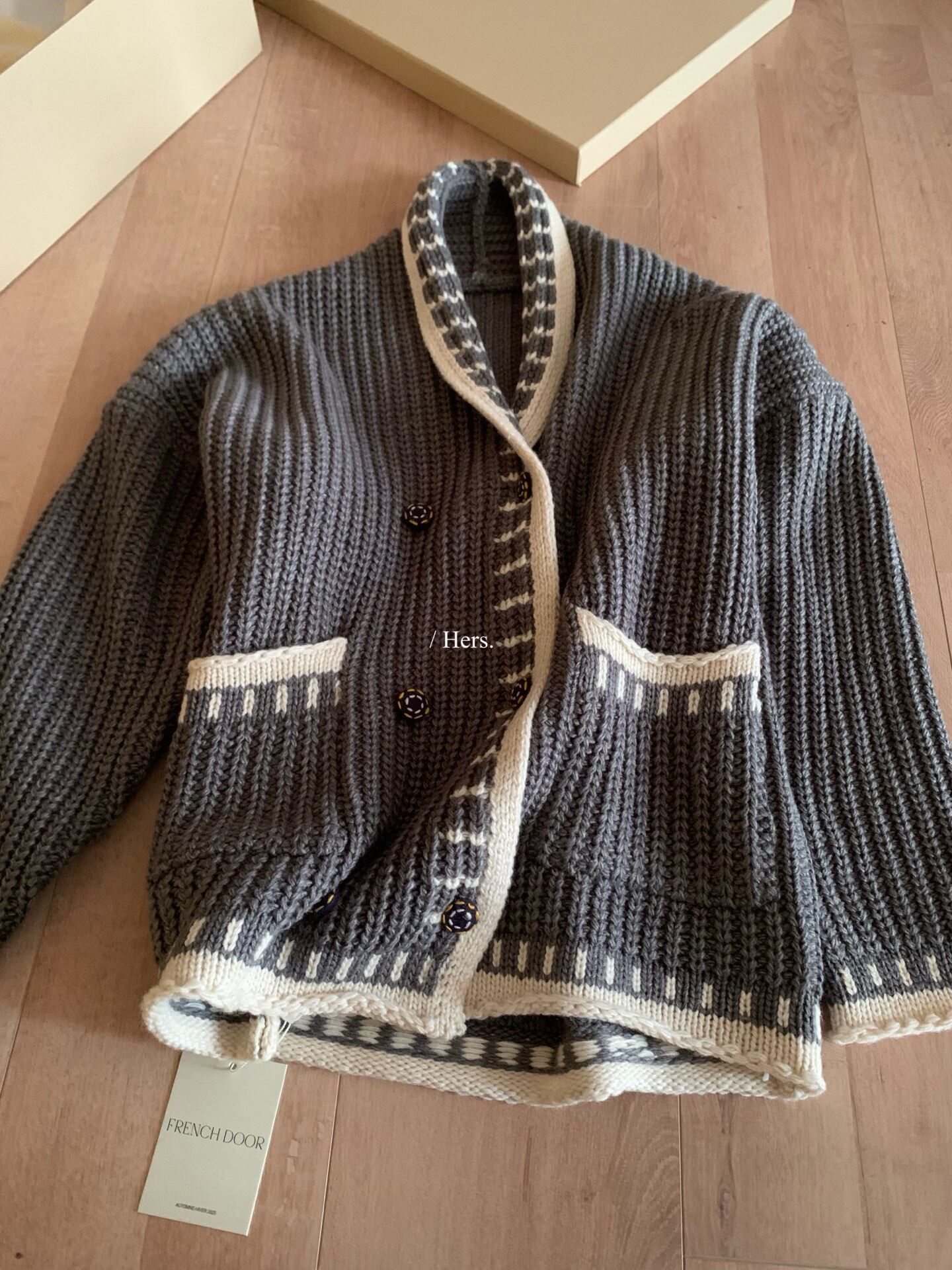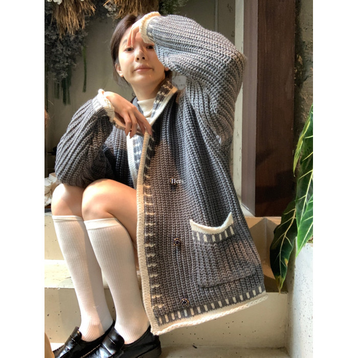 Hers整件很厚實!韓系休閒慵懶風V領大毛衣開衫外套2025秋冬保暖