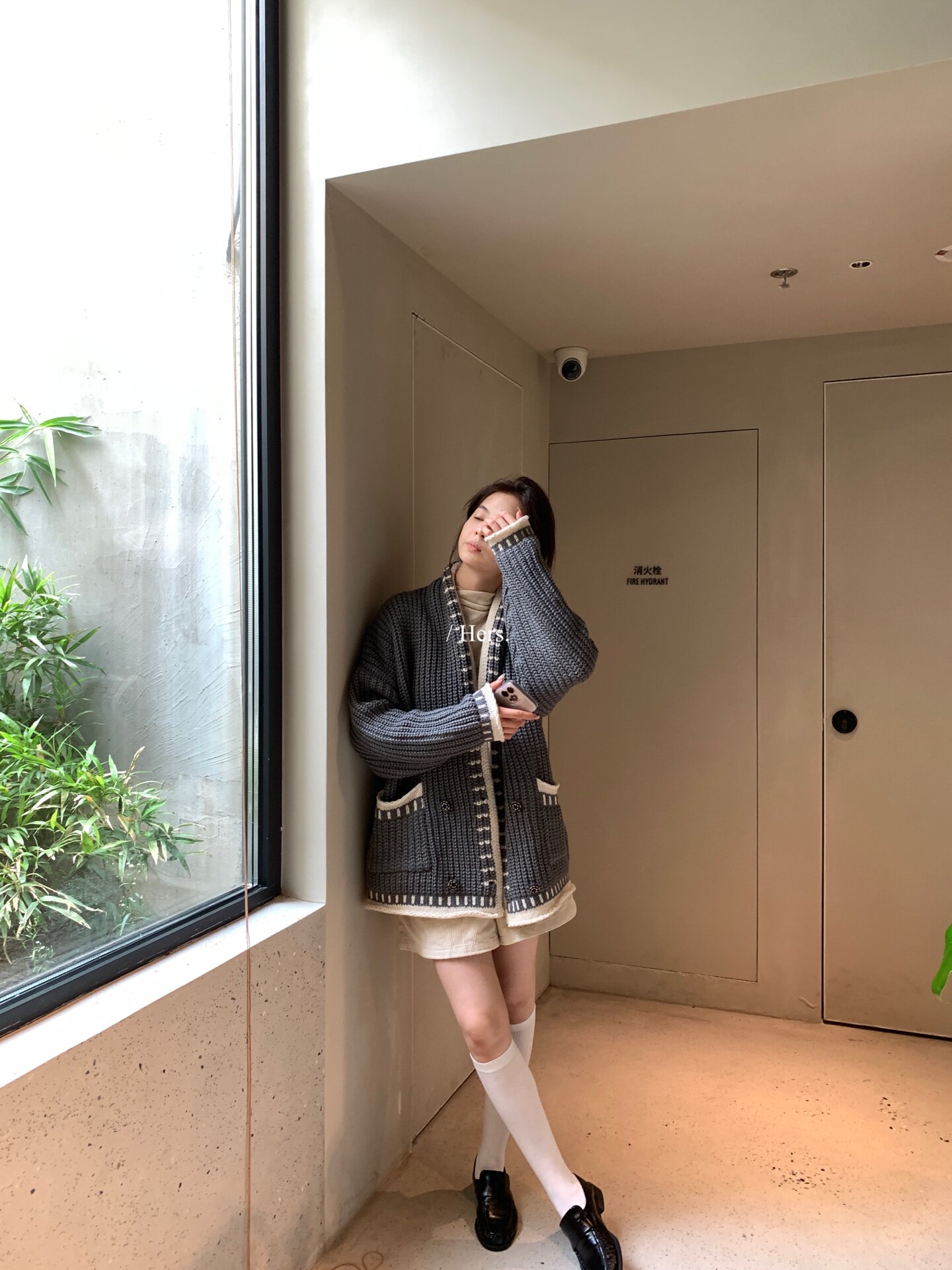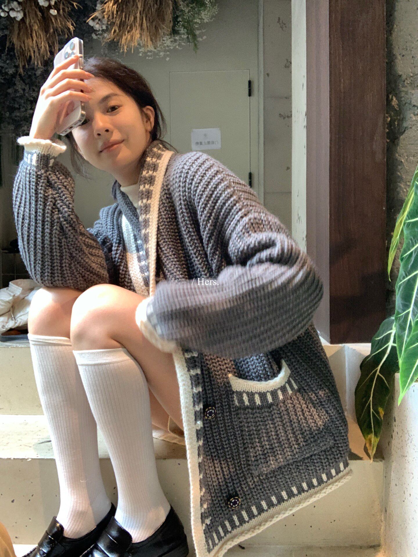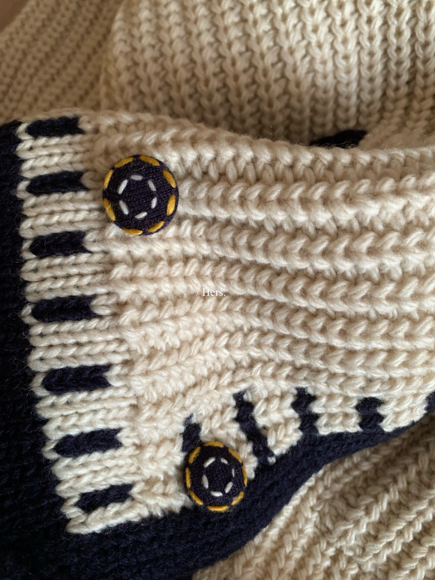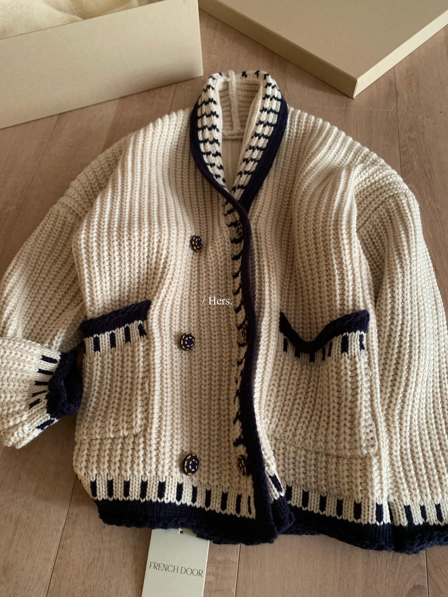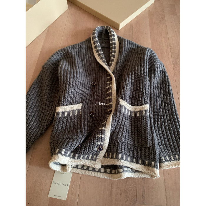 Hers整件很厚實!韓系休閒慵懶風V領大毛衣開衫外套2025秋冬保暖