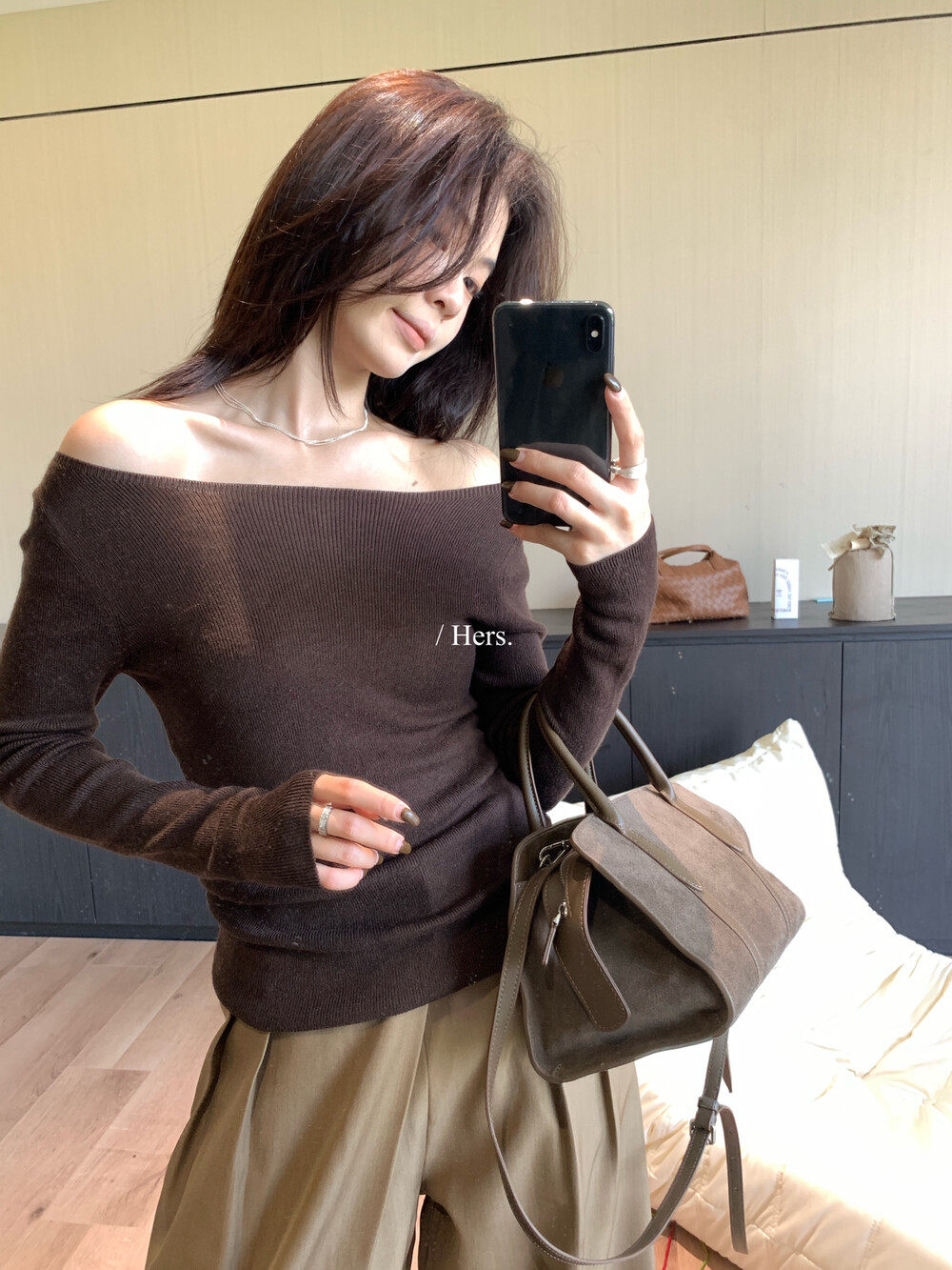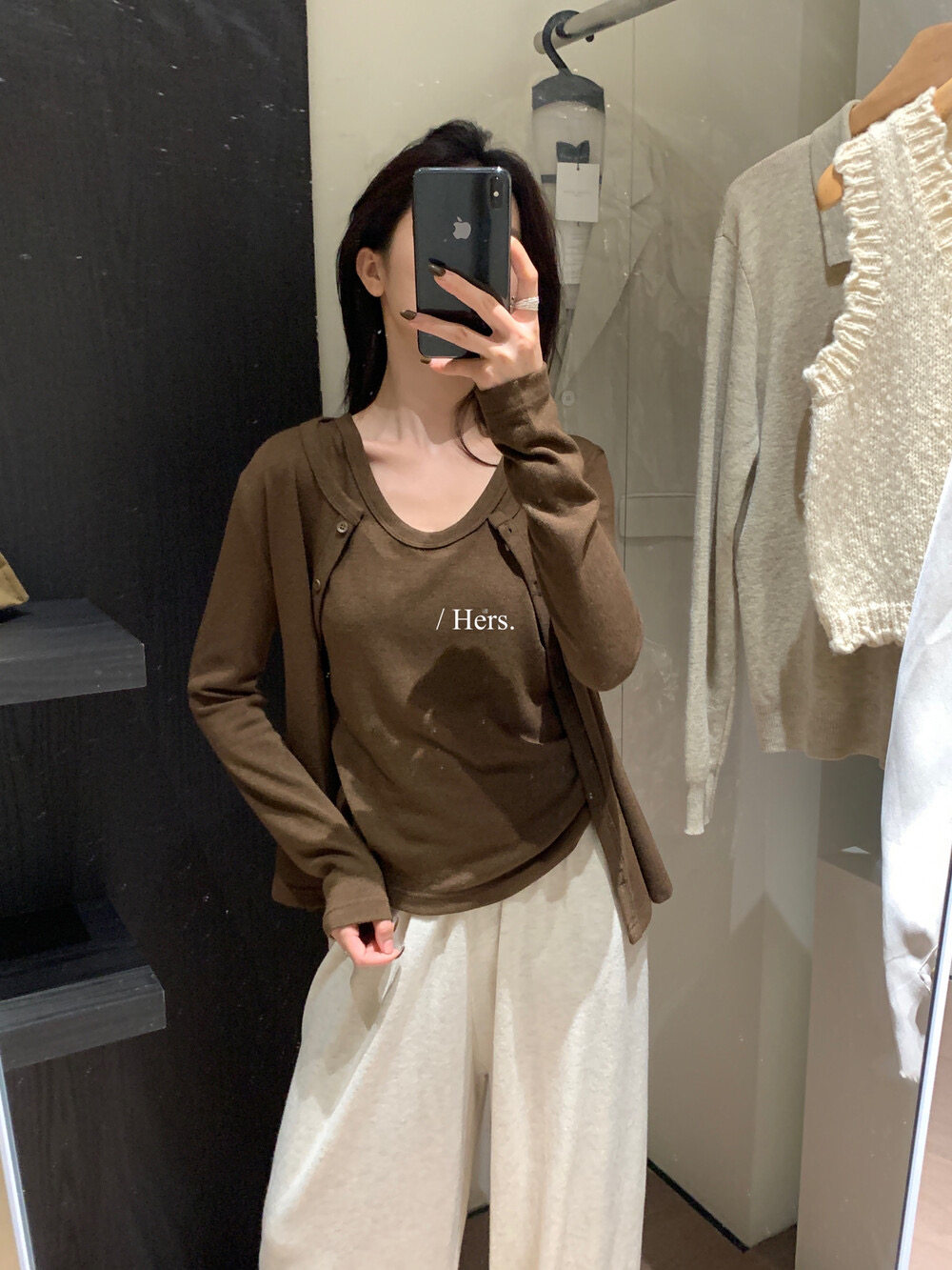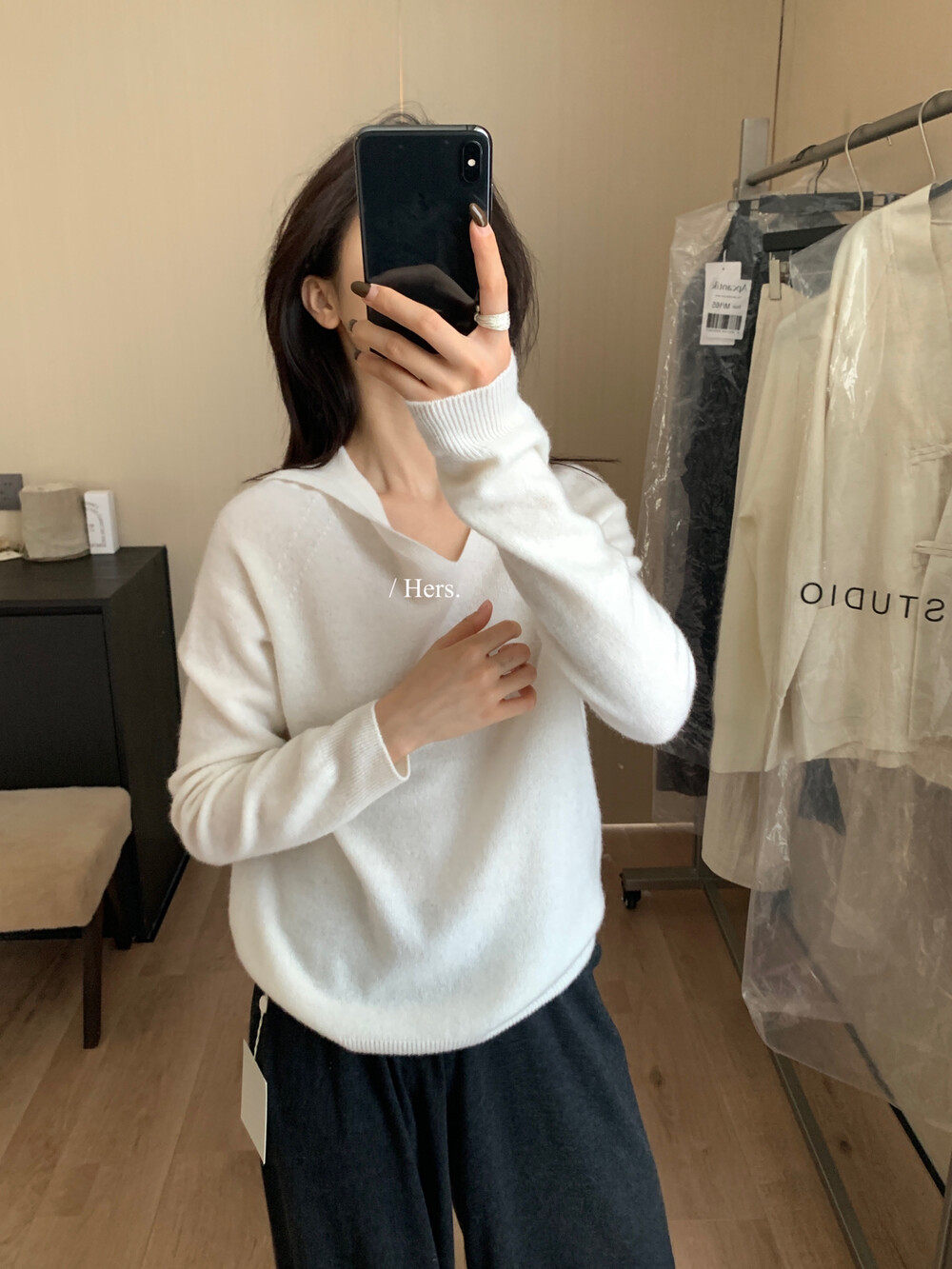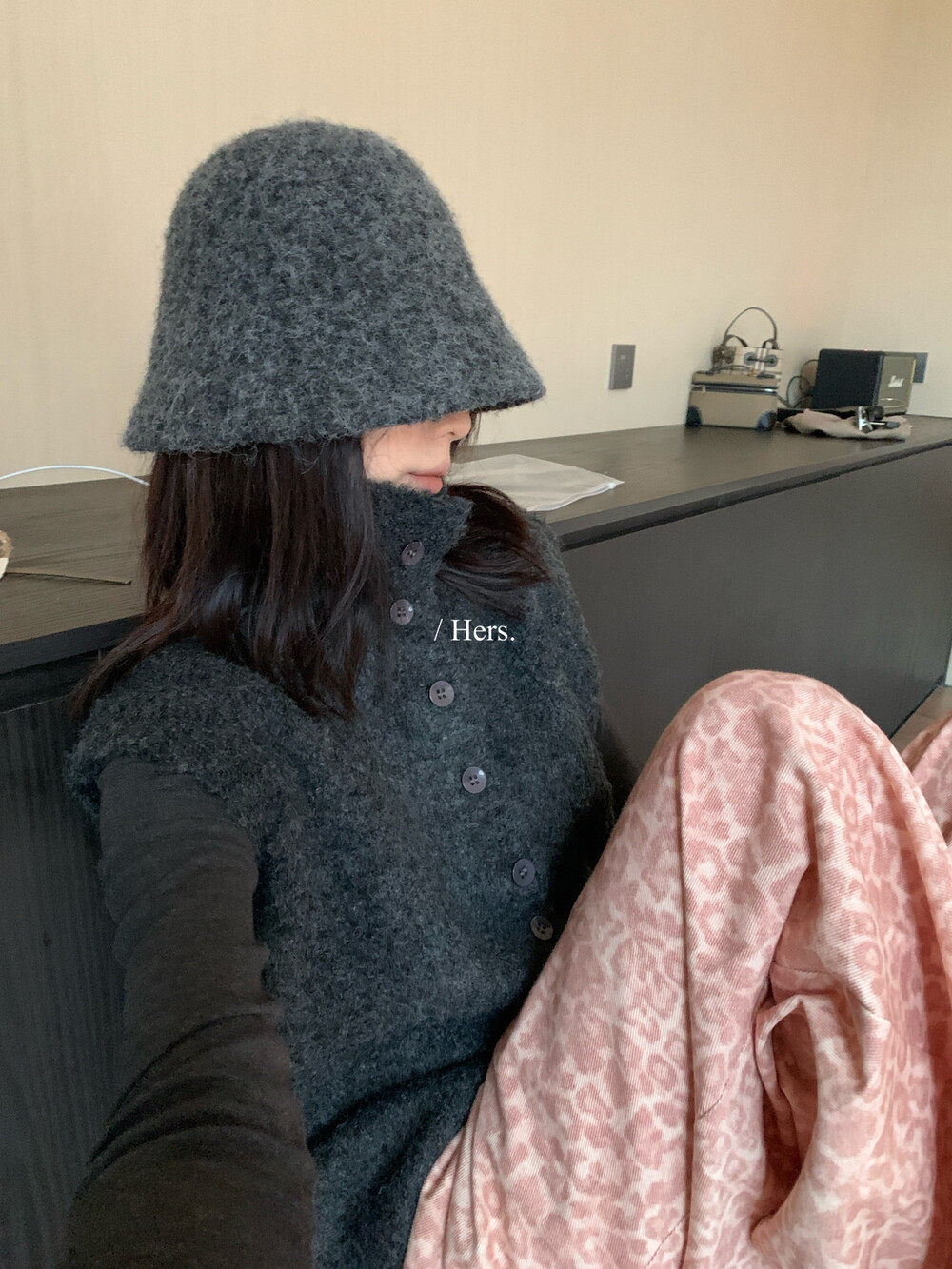 Hers整件很厚實!韓系休閒慵懶風V領大毛衣開衫外套2025秋冬保暖