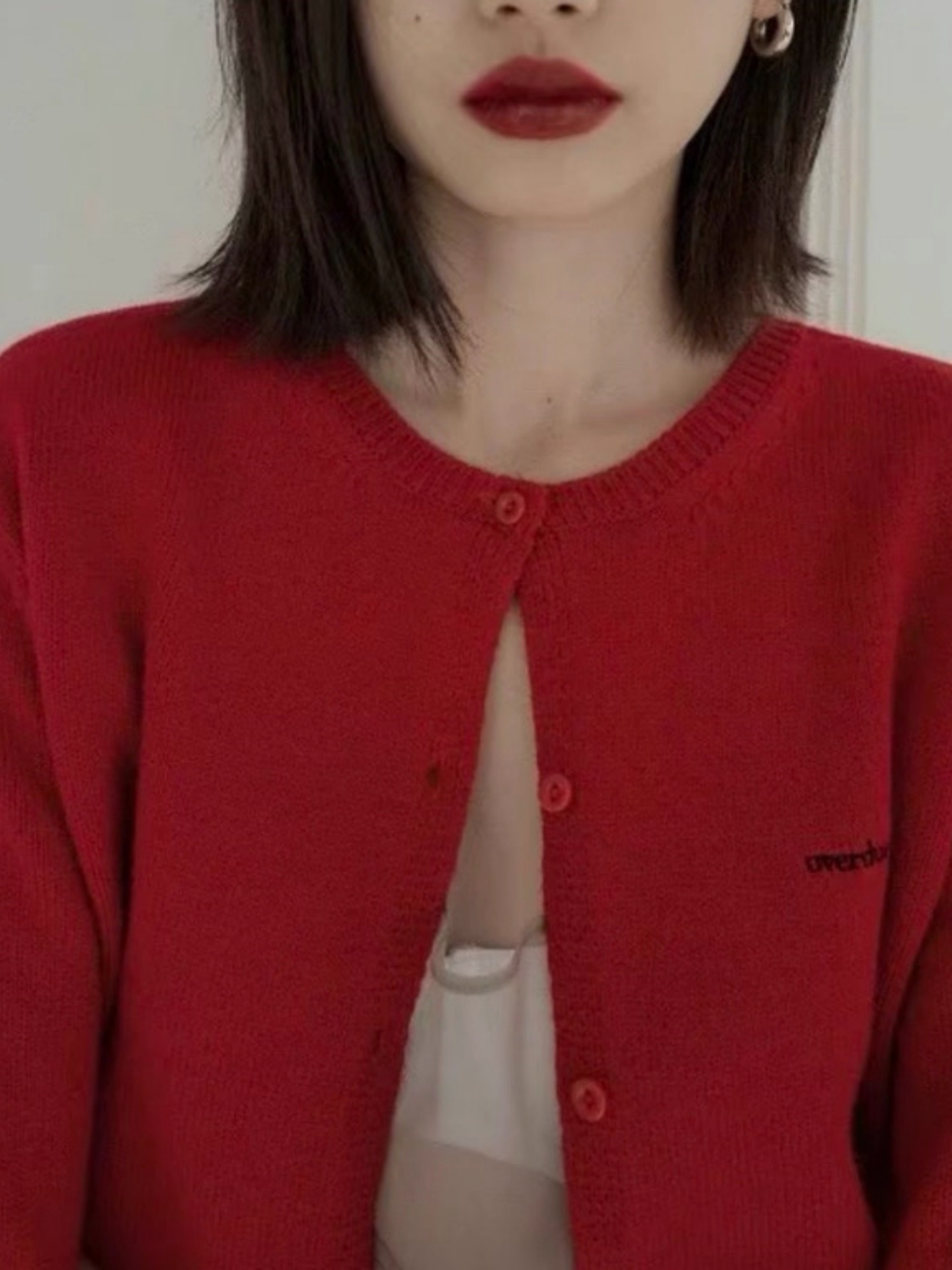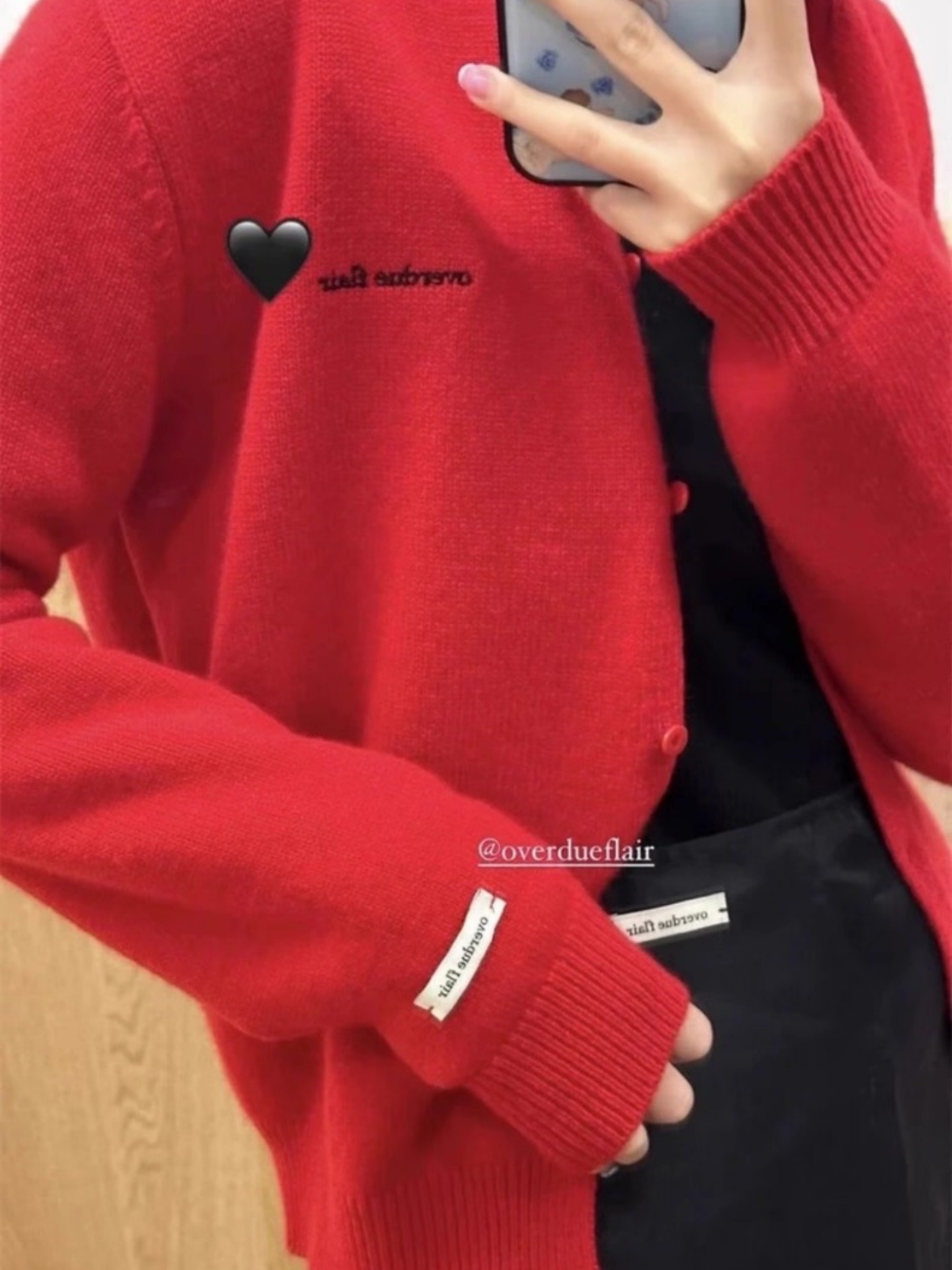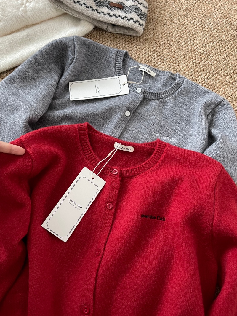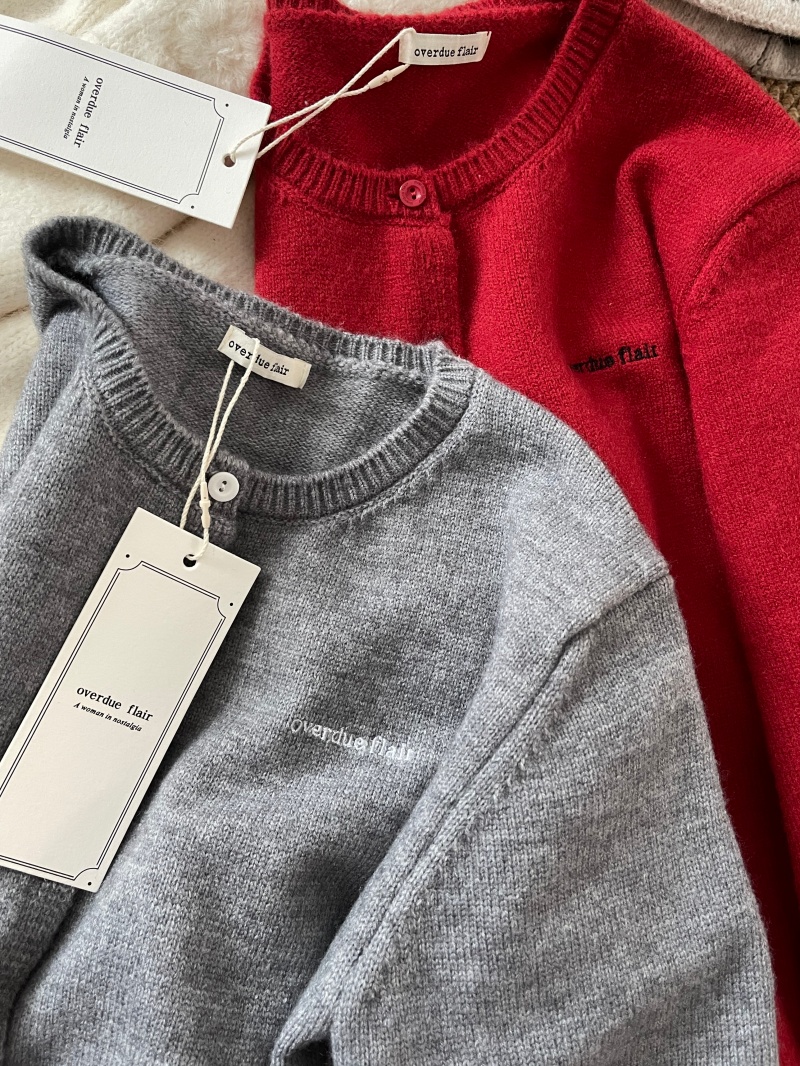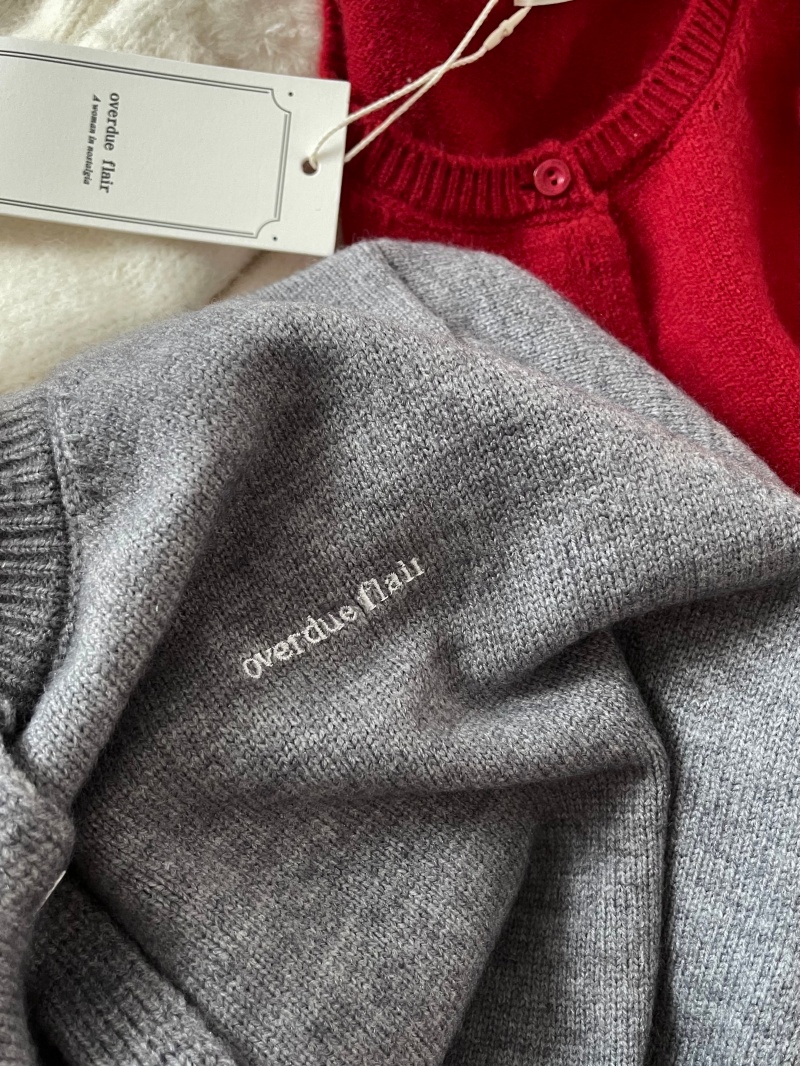 韓代@over* 顔色版型超正!軟糯有厚度刺綉布標復古針織毛衣開衫