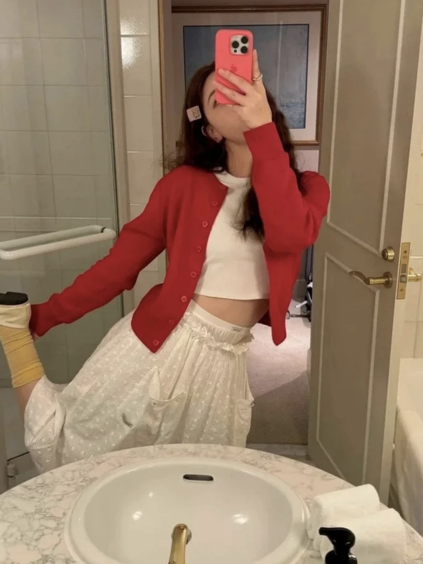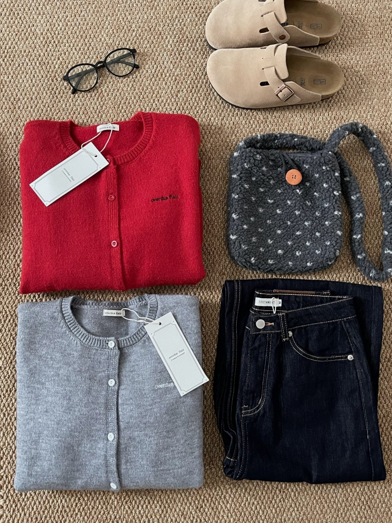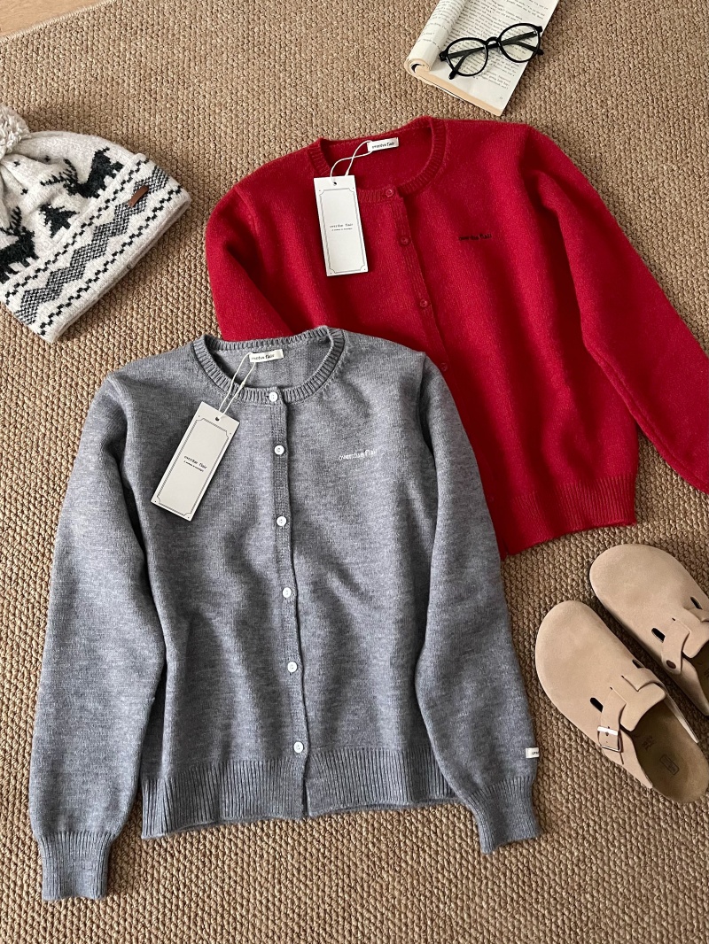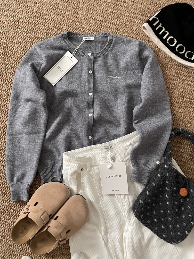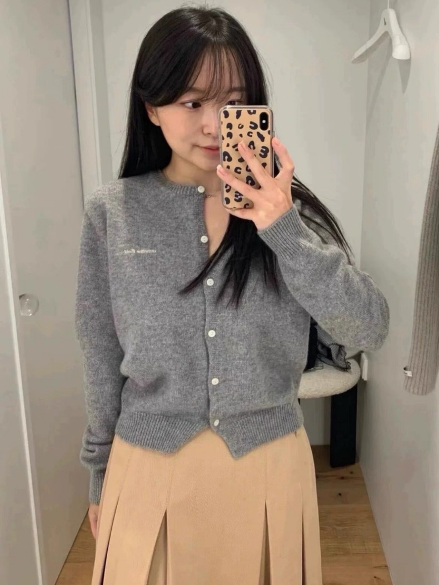 韓代@over* 顔色版型超正!軟糯有厚度刺綉布標復古針織毛衣開衫