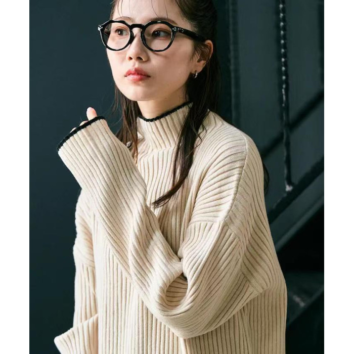 日單女裝秋冬新款圓領套頭毛衣女寬松慵懶風針織衫上衣