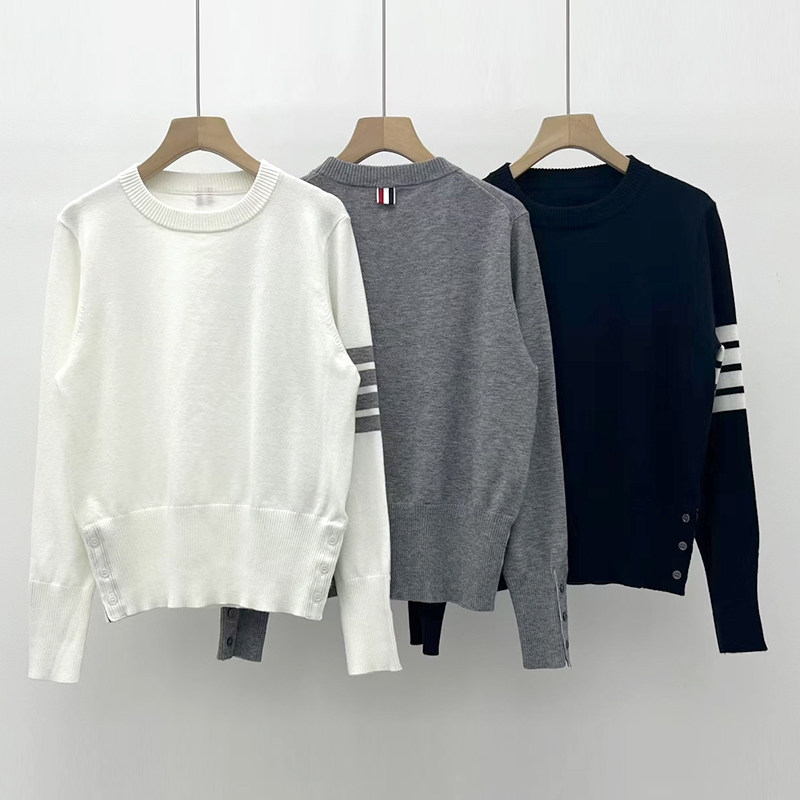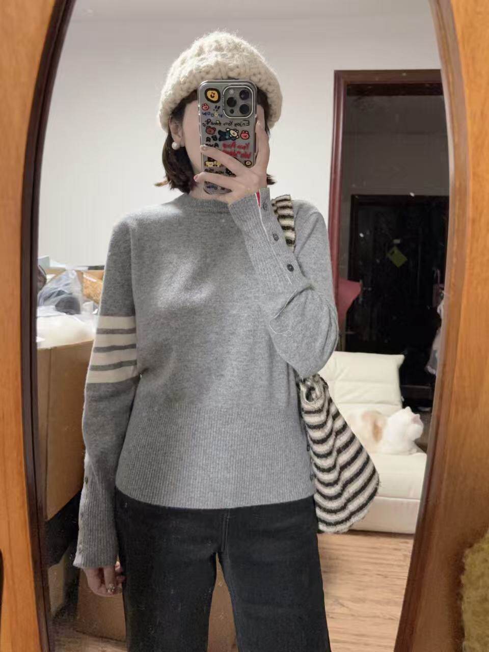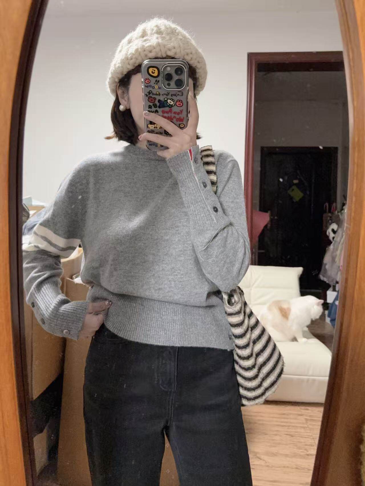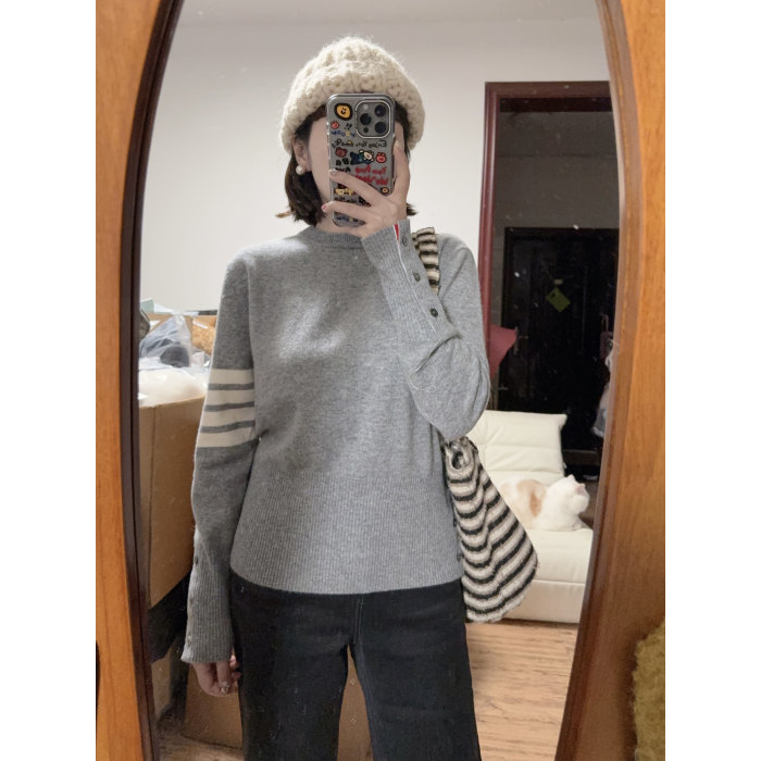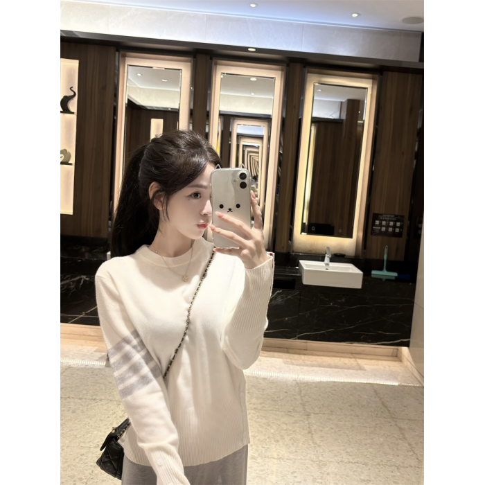正確版】2025秋冬經典四條桿TB圓領長袖針織衫毛衣套頭打底衫T恤