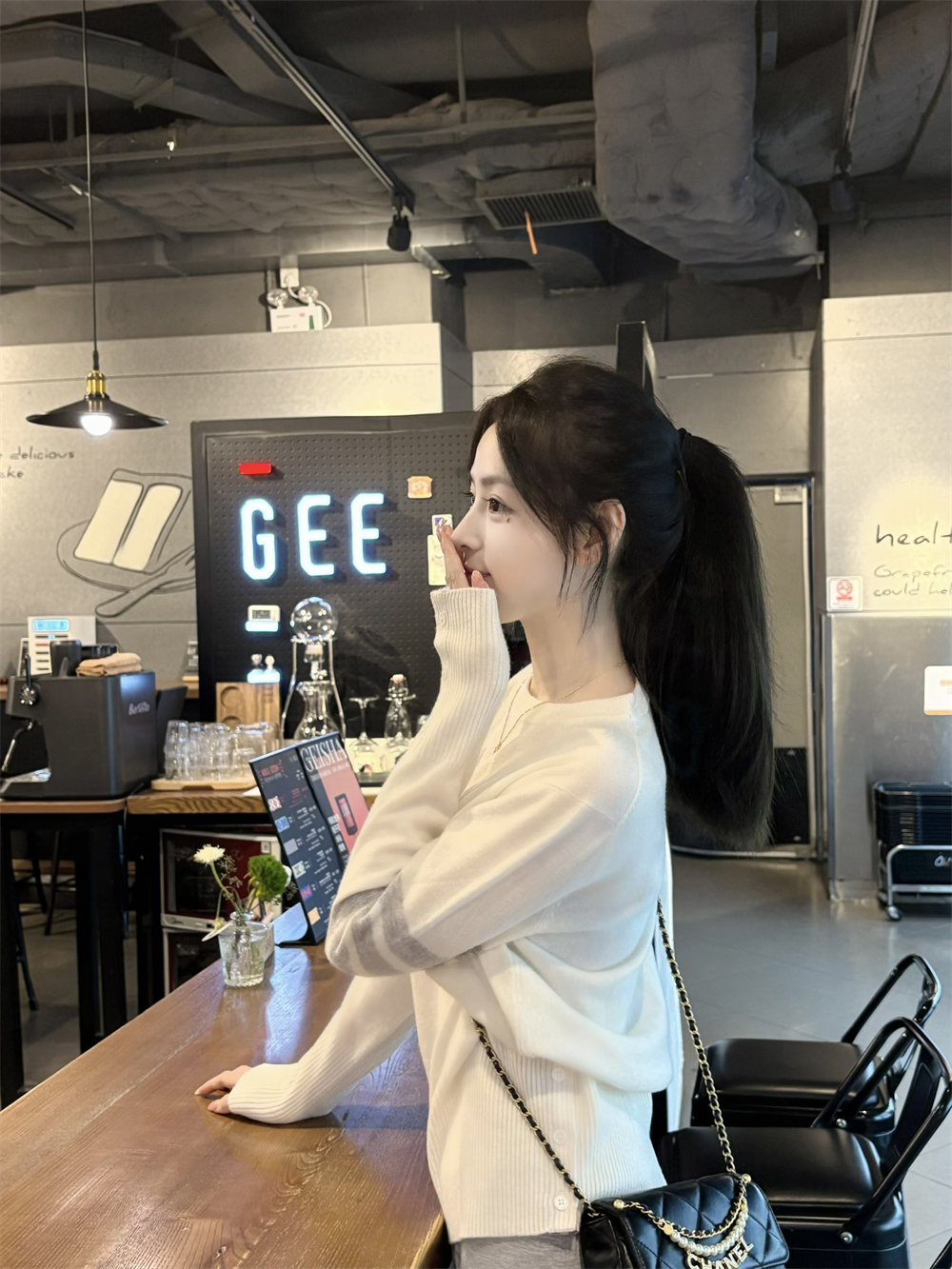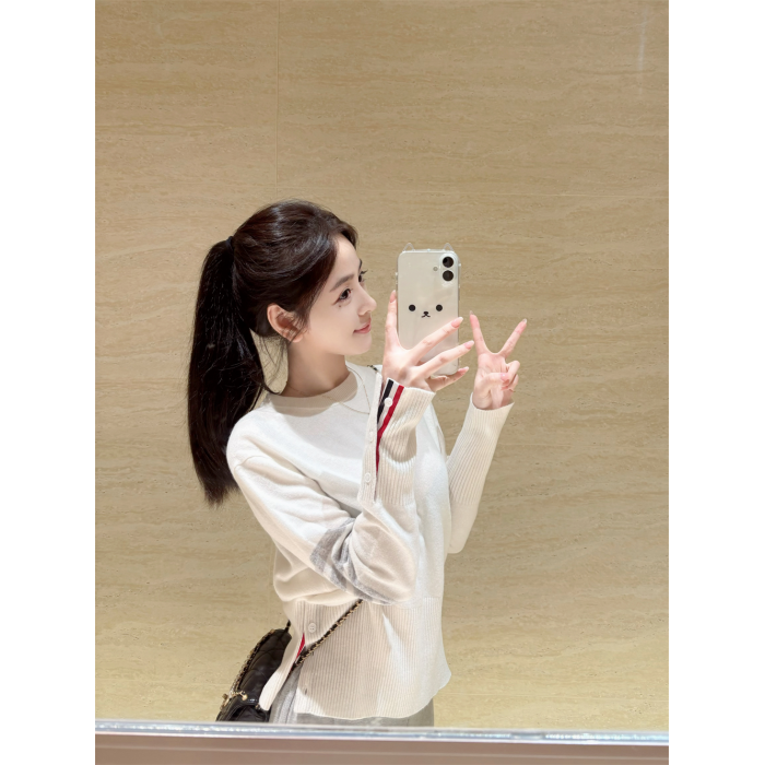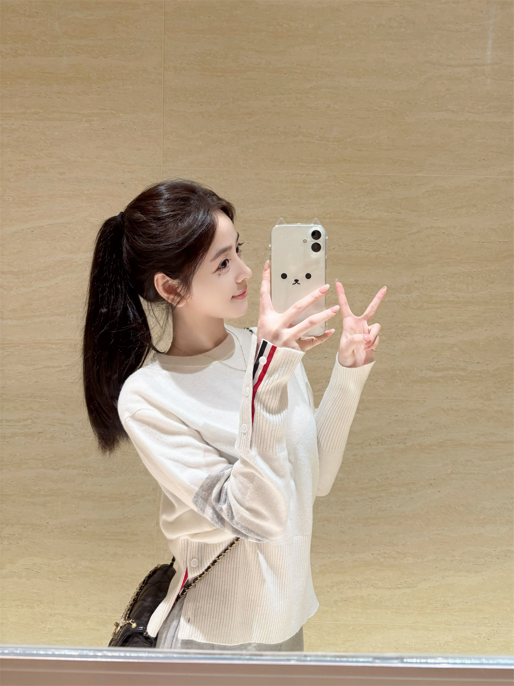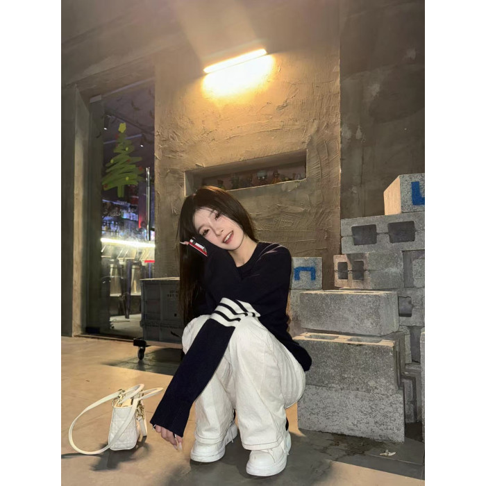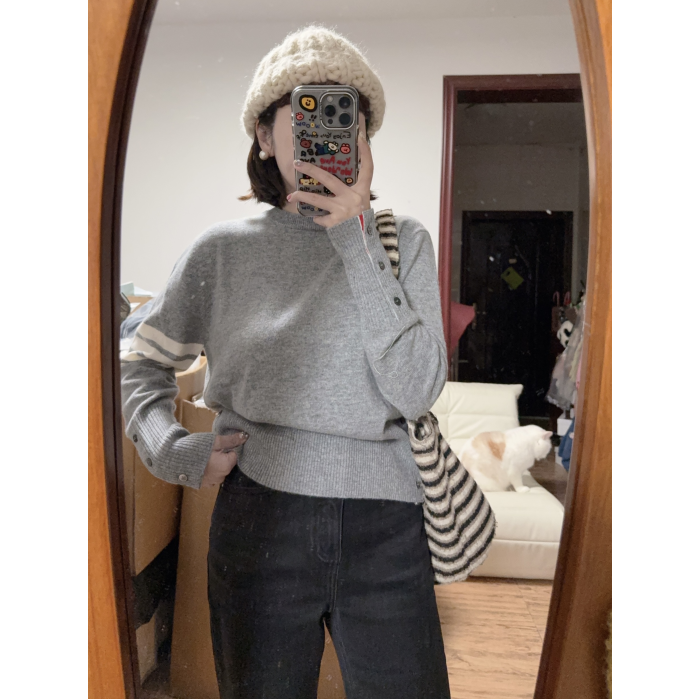 正確版】2025秋冬經典四條桿TB圓領長袖針織衫毛衣套頭打底衫T恤