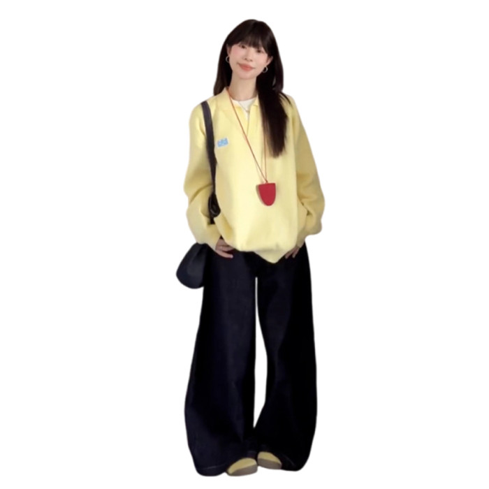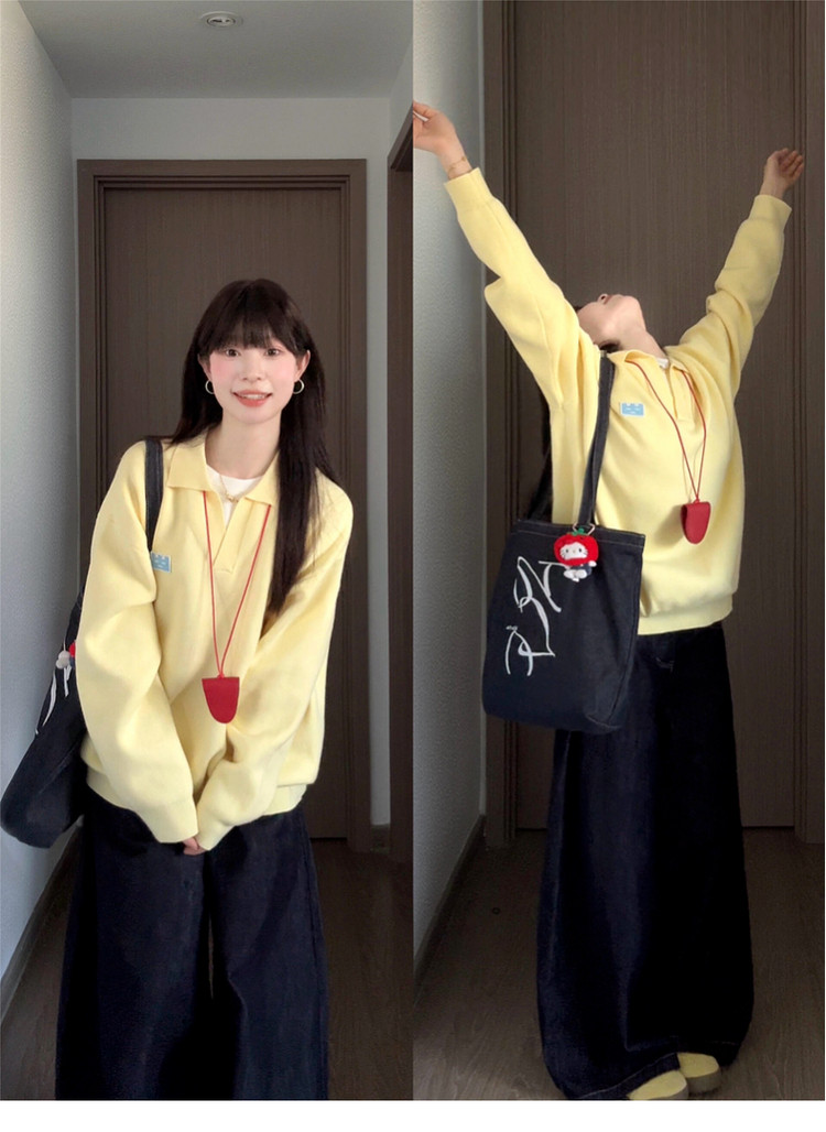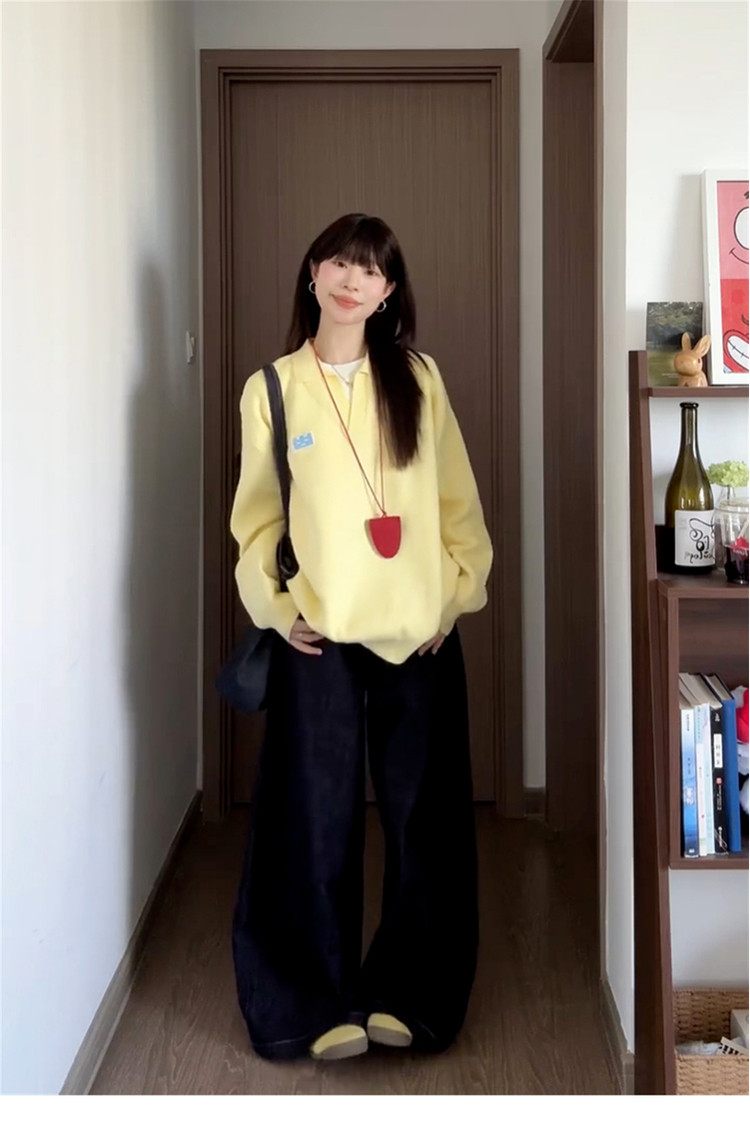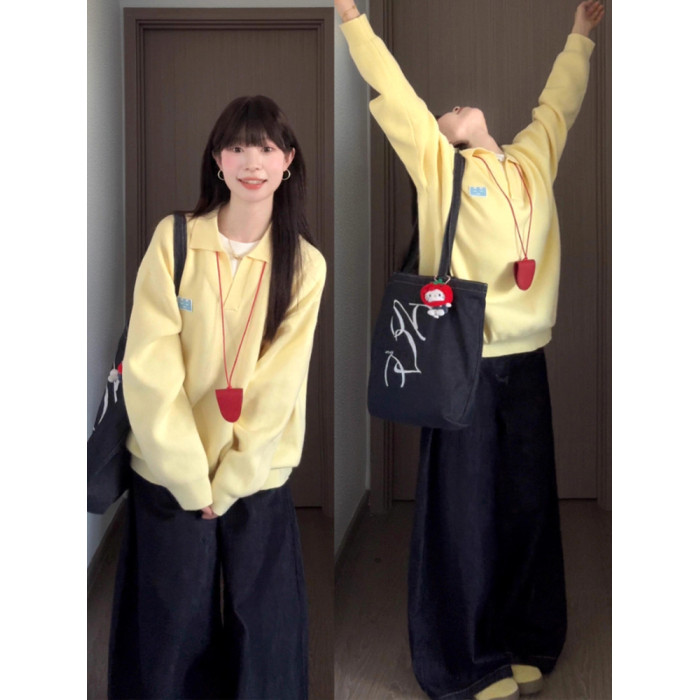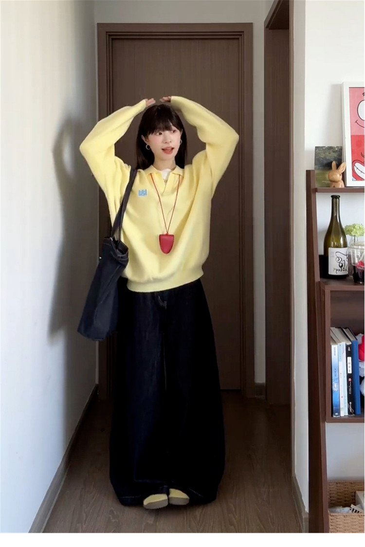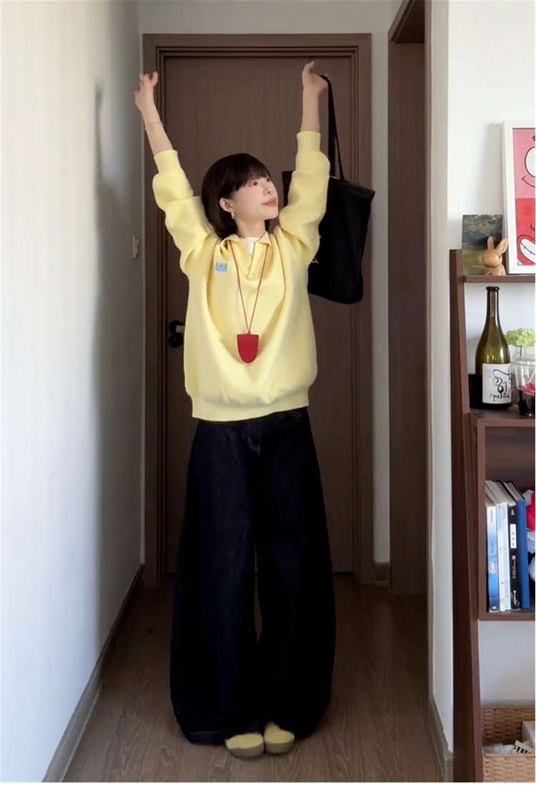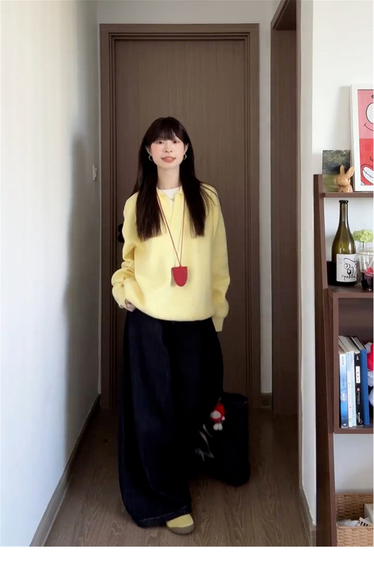 寬松套頭外穿軟糯毛衣女秋冬季慵懶高級感2025新款黃色polo領上衣