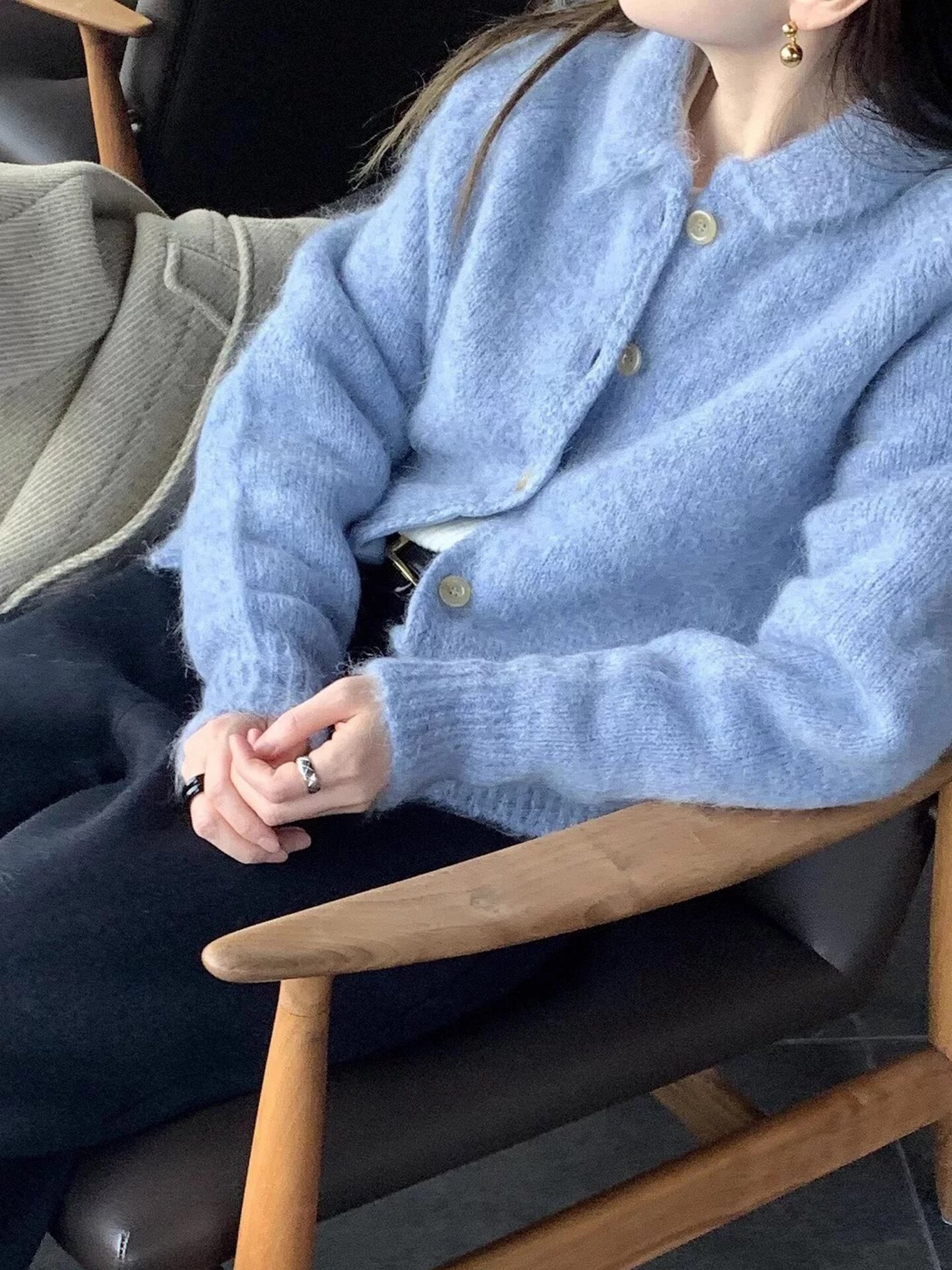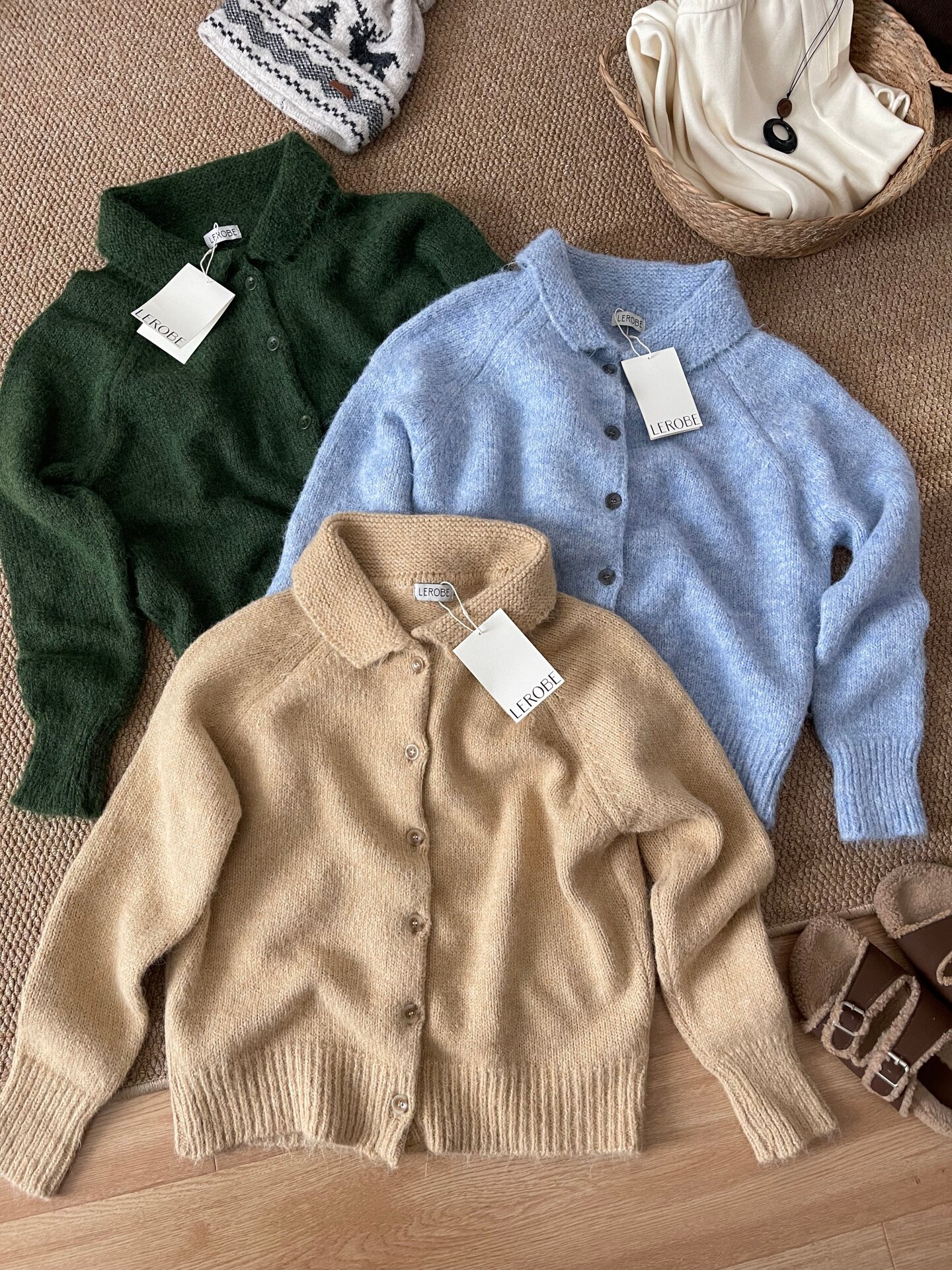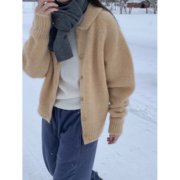 顔色超美!韓代@lero*e美娜家 冬日情書~10%羊毛復古翻領毛衣外套