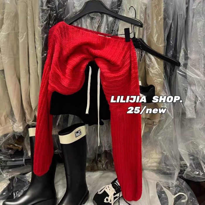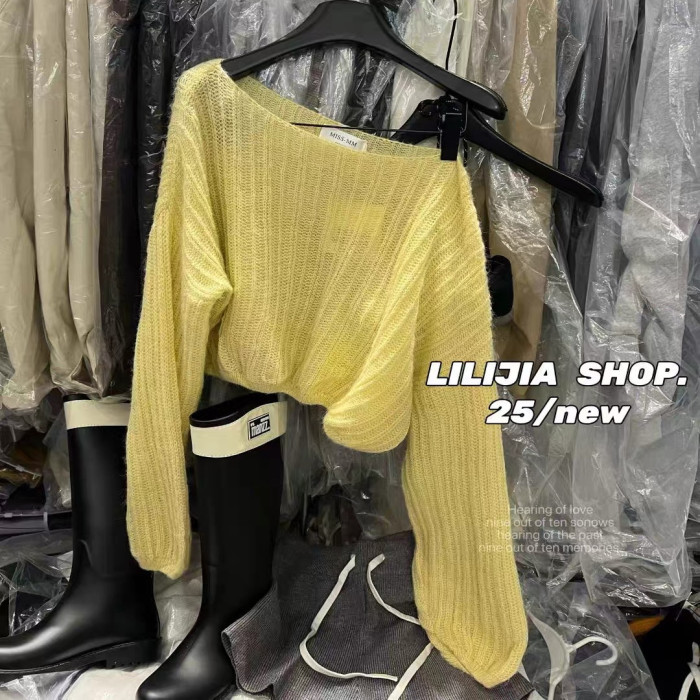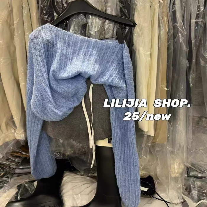 韓國東大門2025秋季韓版簡約慵懶風斜肩針織衫毛衣女百搭長袖上衣