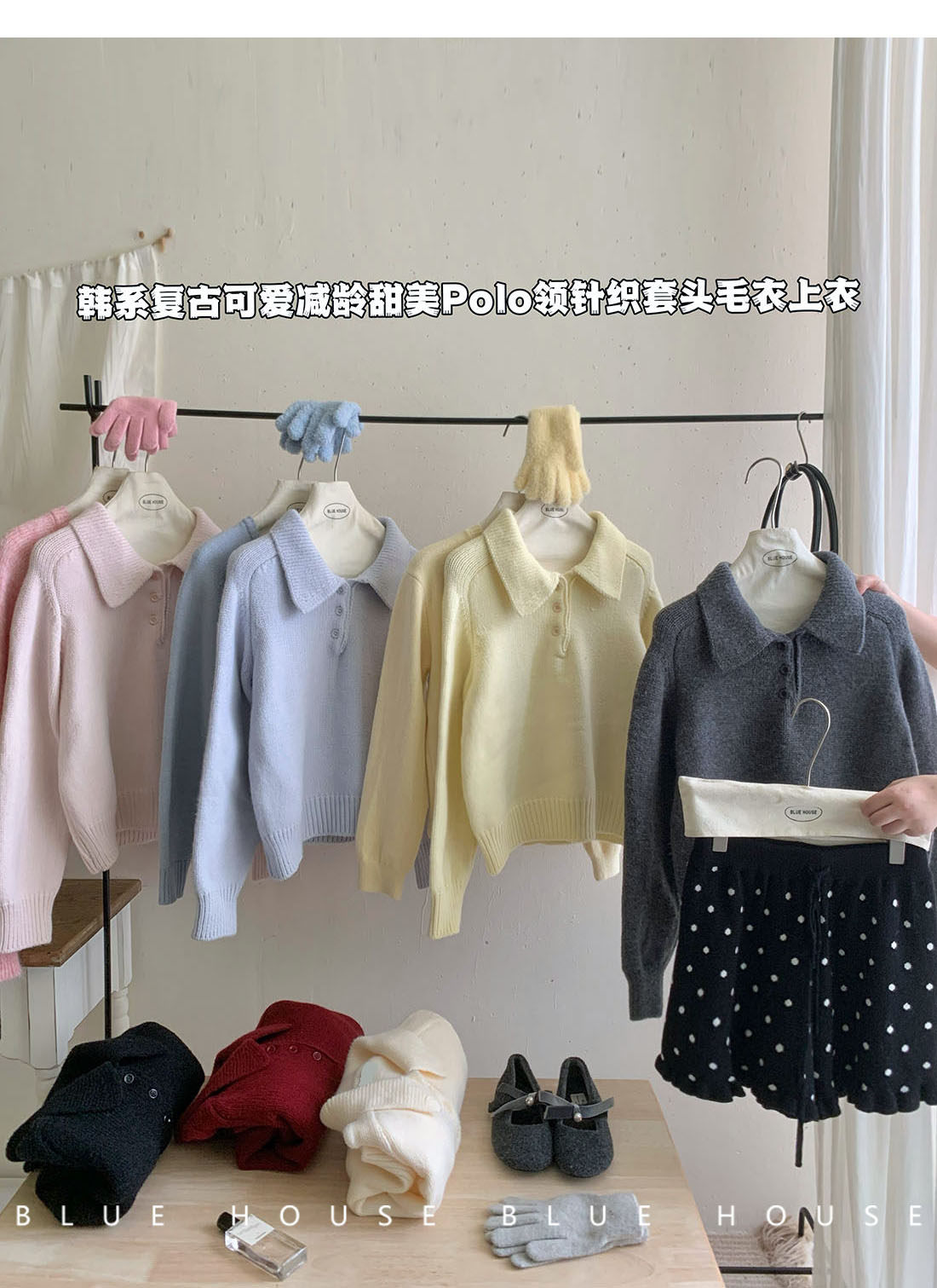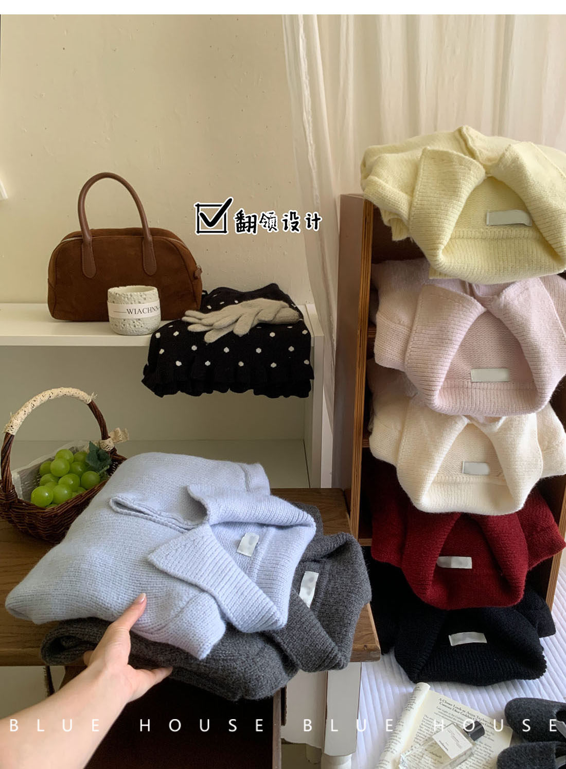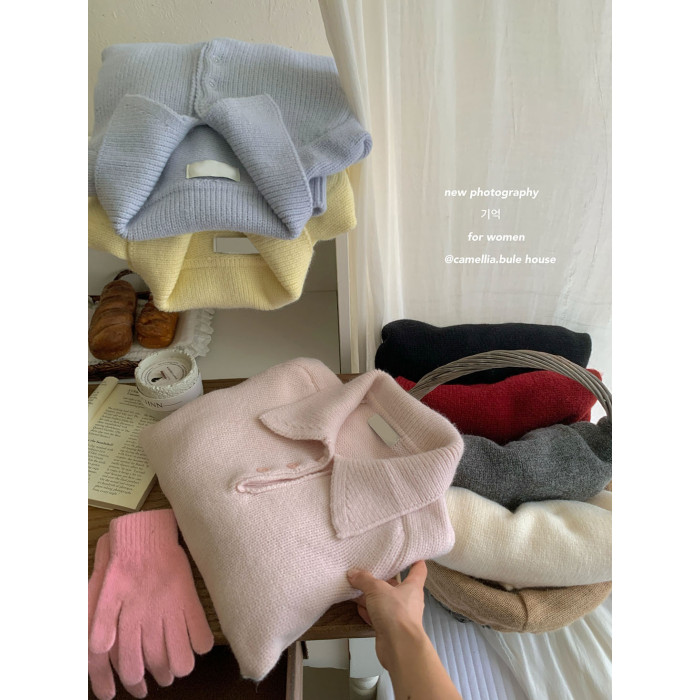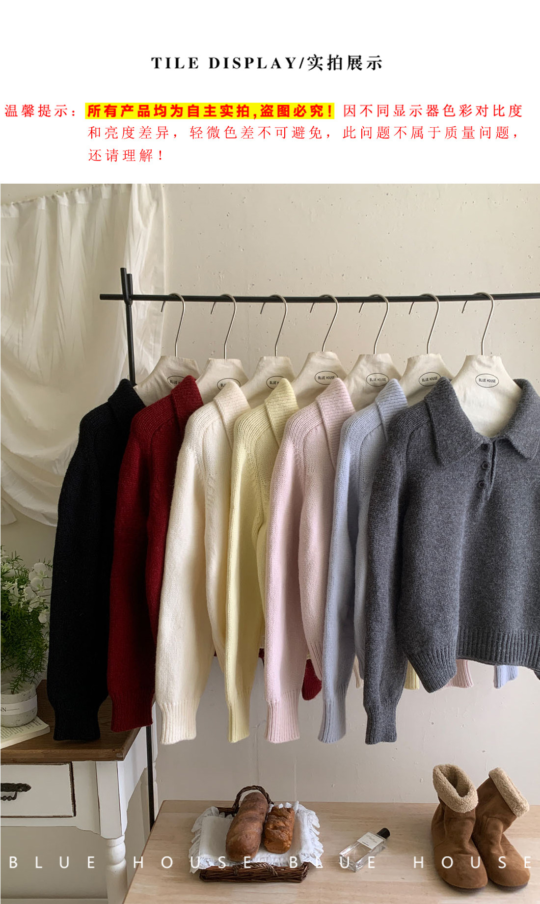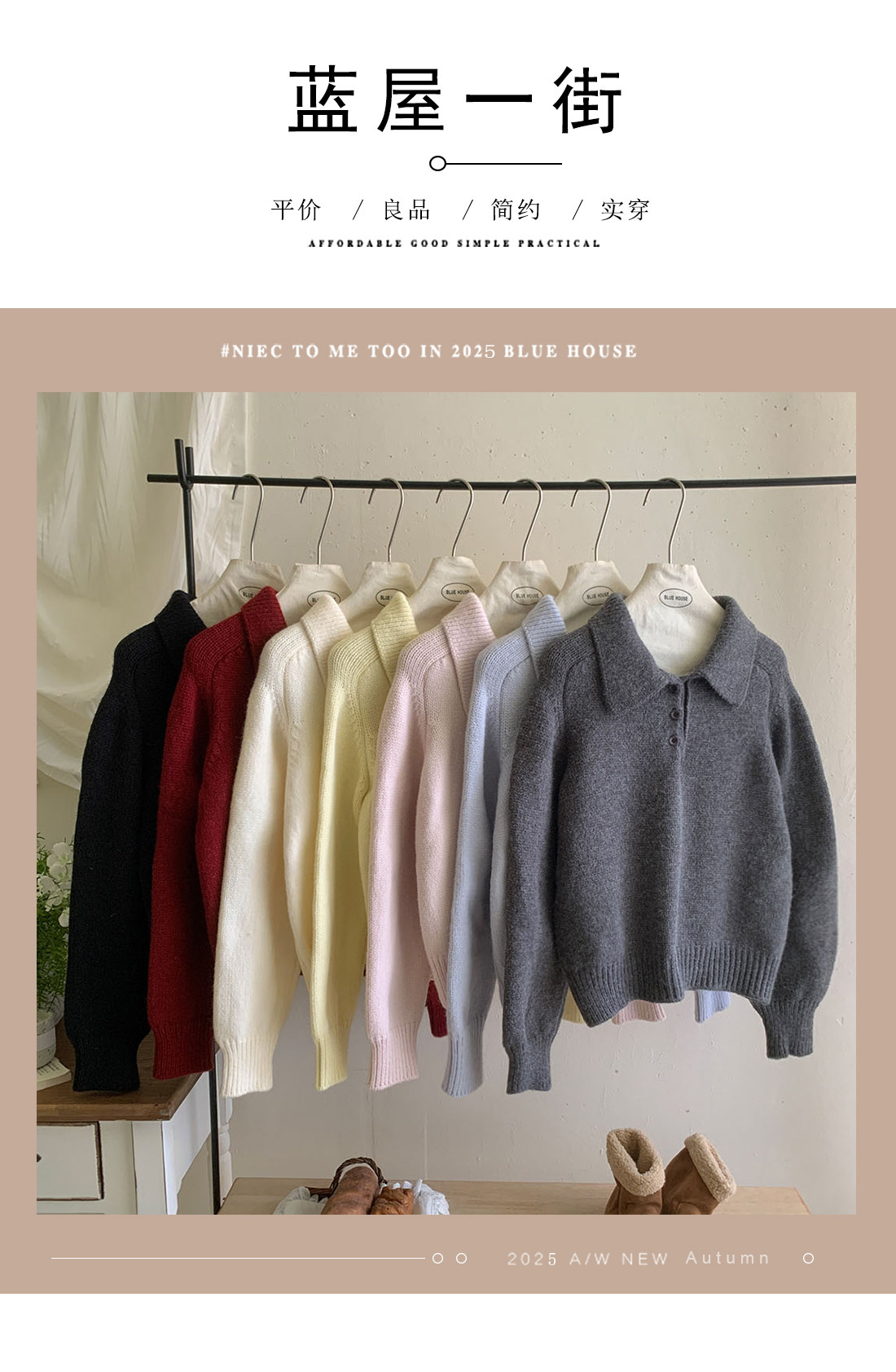 溫柔奶油系顯白polo翻領文藝復古套頭毛衣女秋冬軟糯外穿減齡上衣