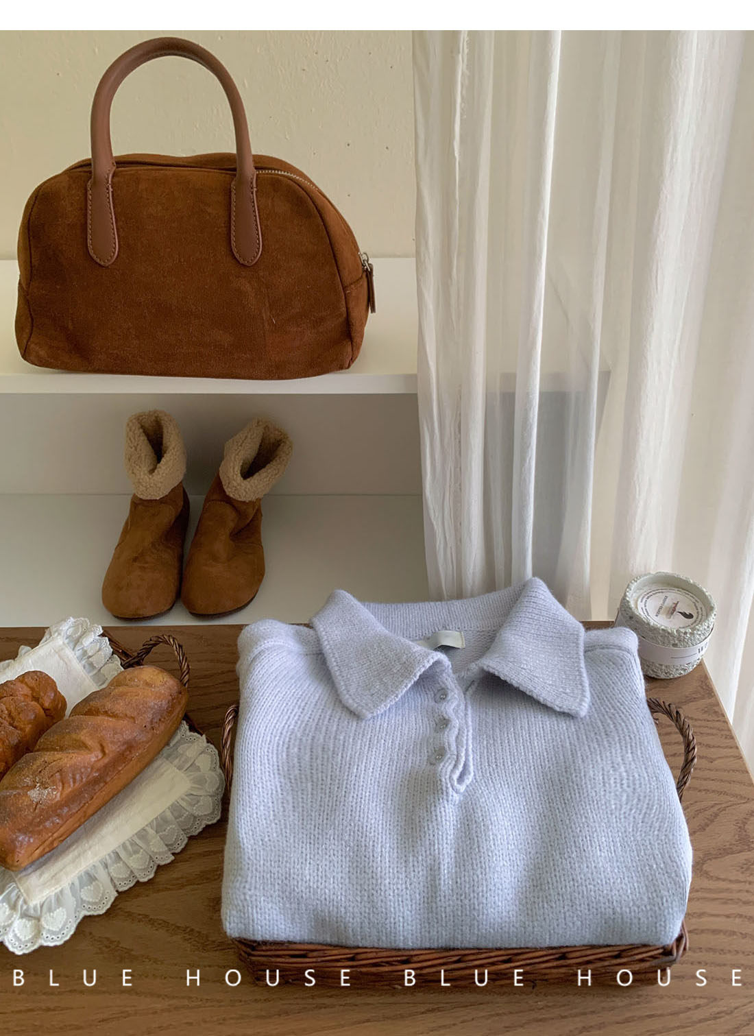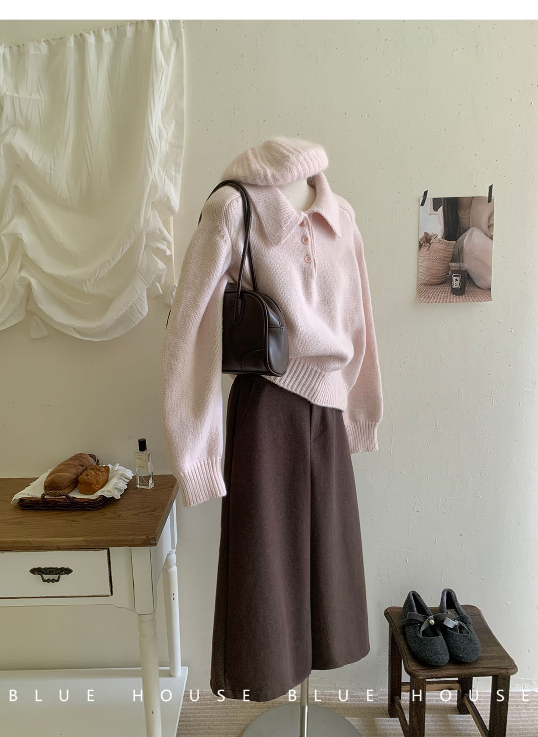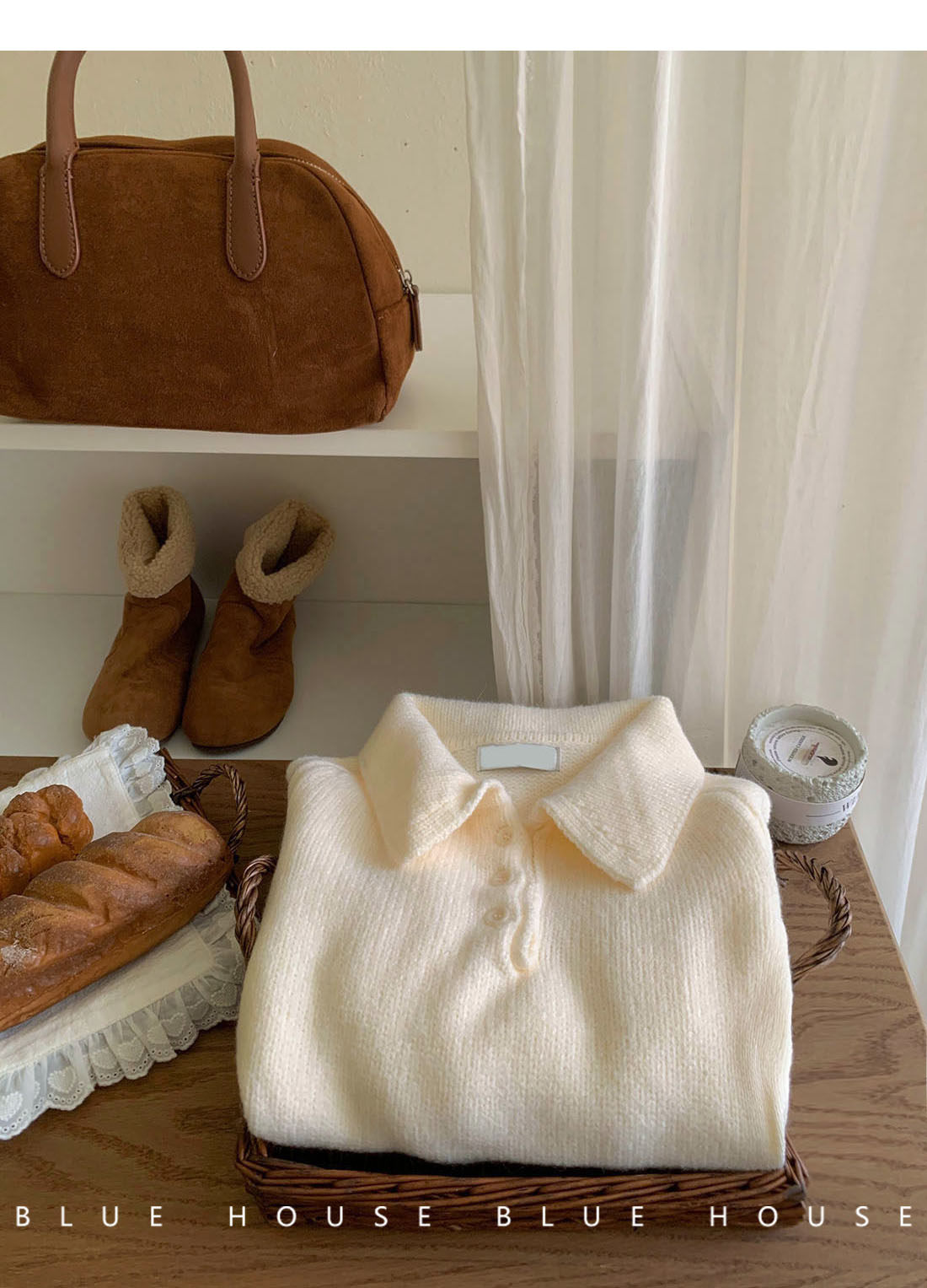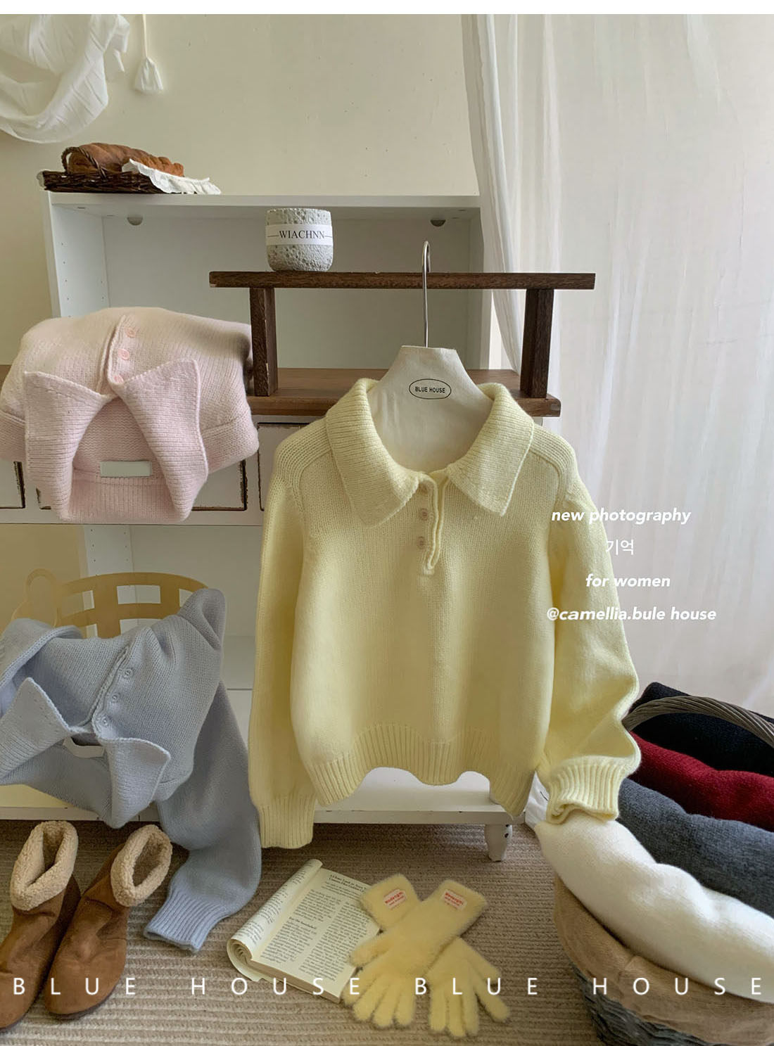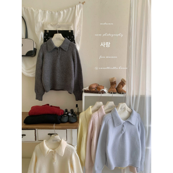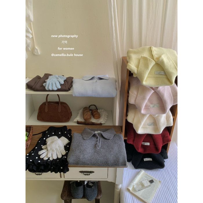 溫柔奶油系顯白polo翻領文藝復古套頭毛衣女秋冬軟糯外穿減齡上衣