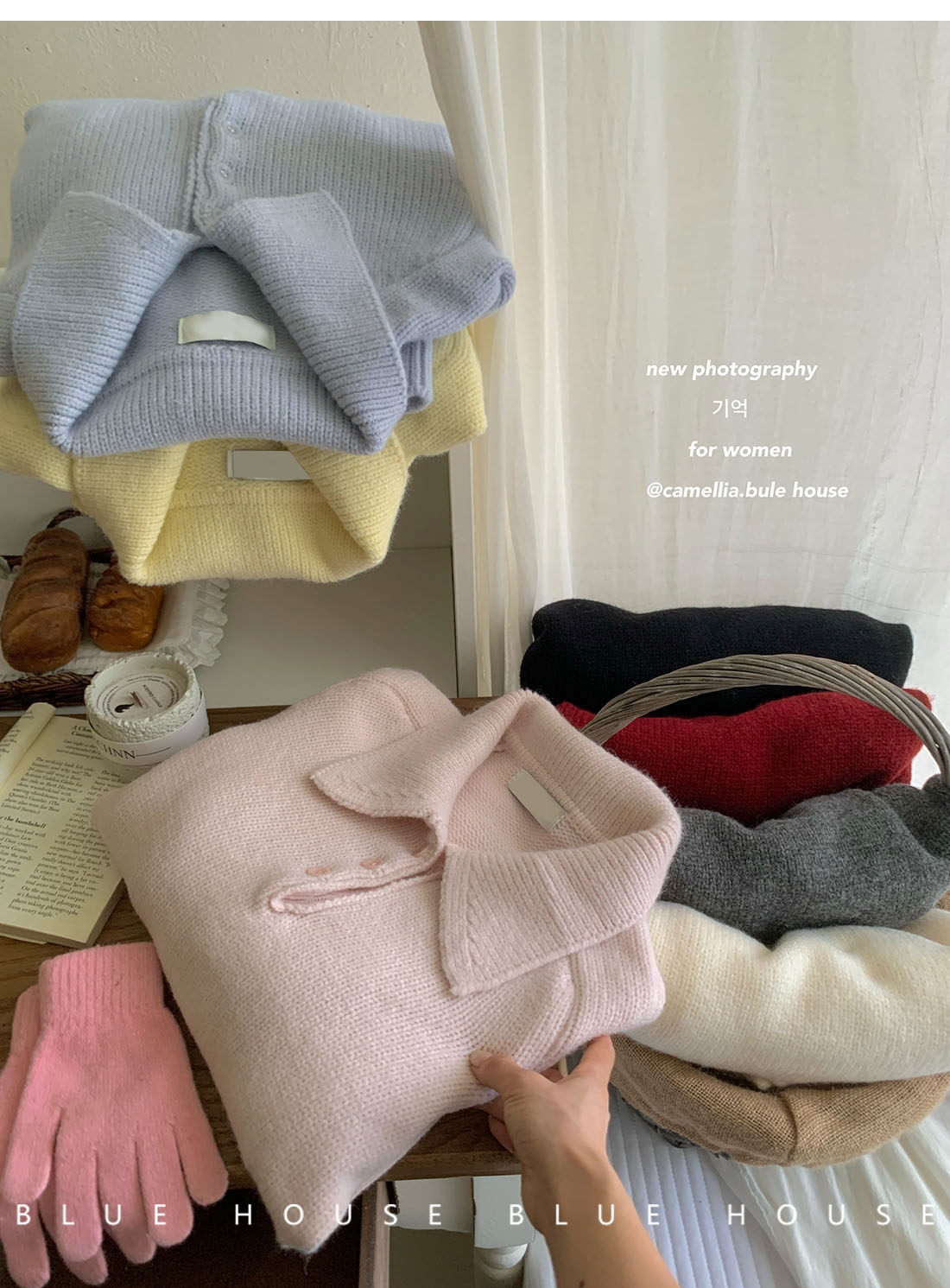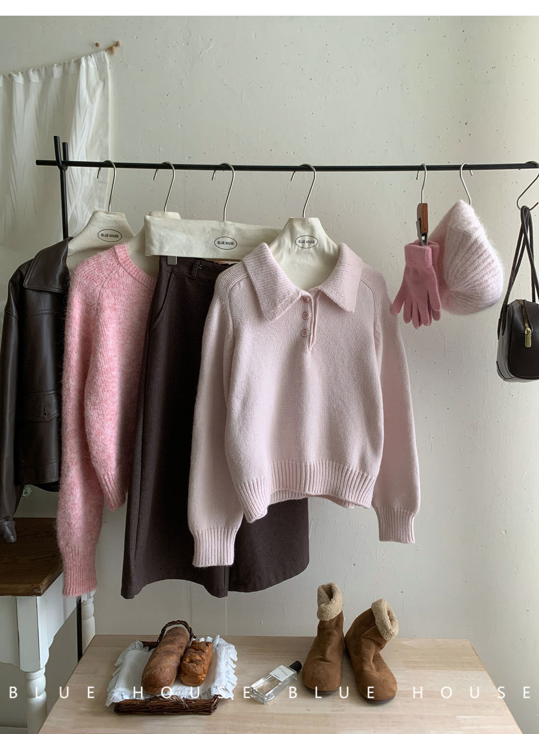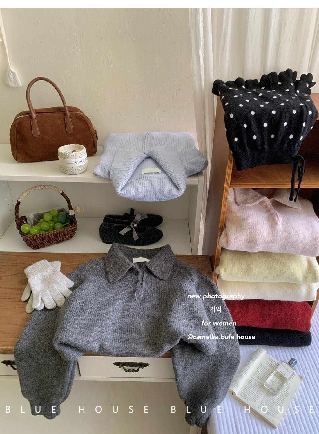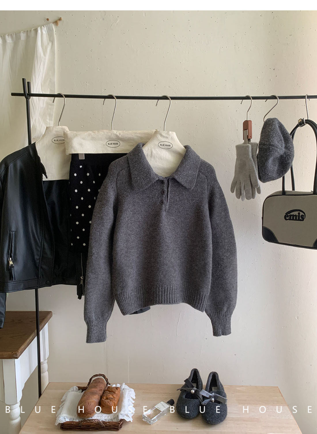 溫柔奶油系顯白polo翻領文藝復古套頭毛衣女秋冬軟糯外穿減齡上衣