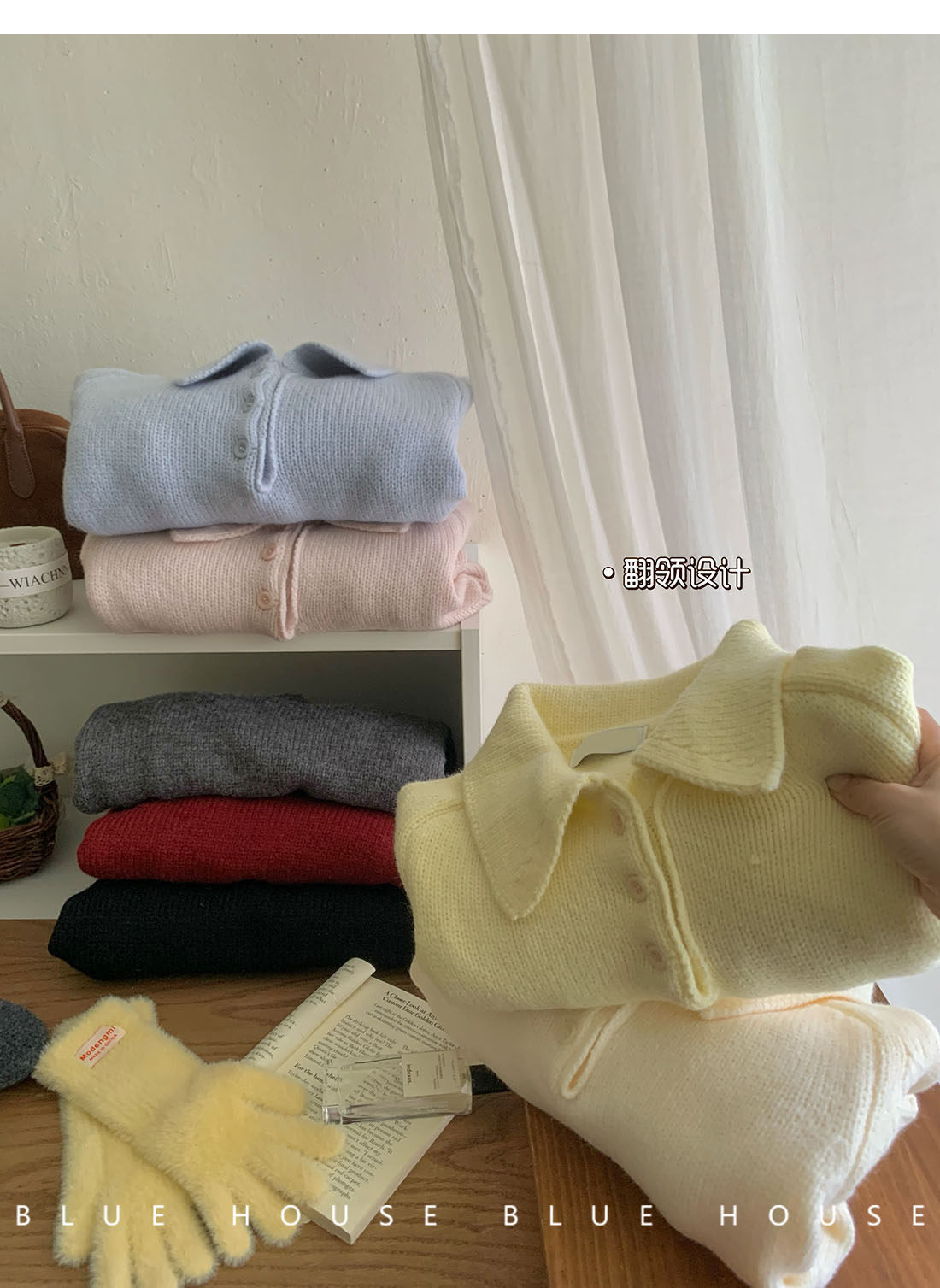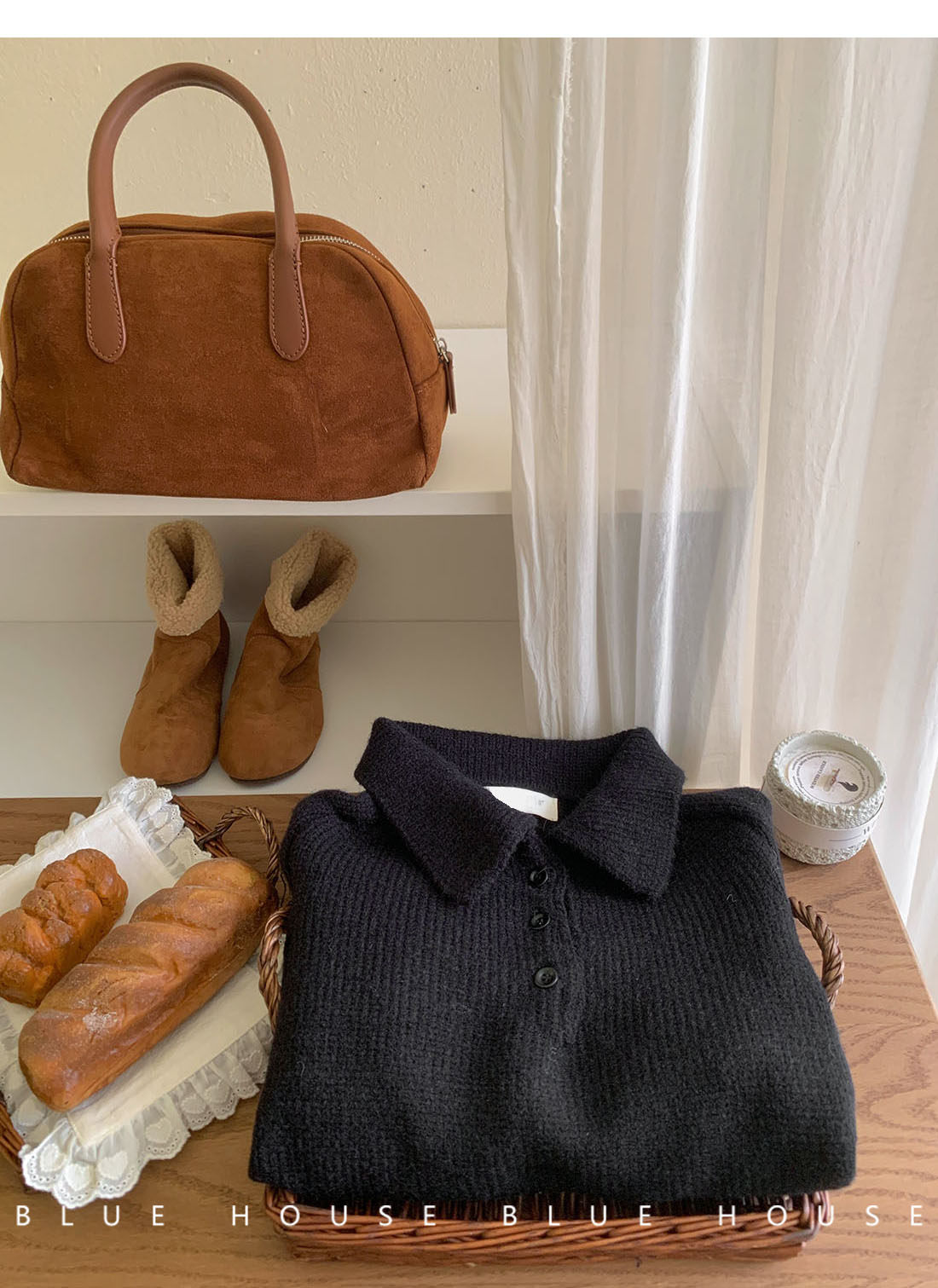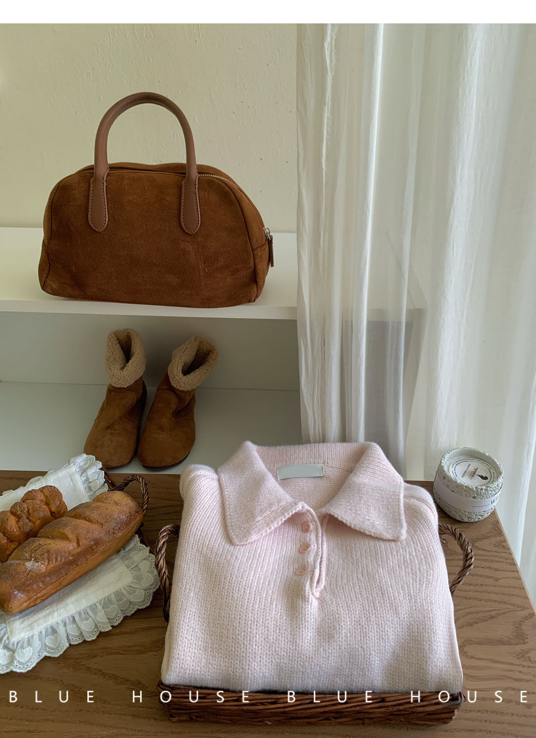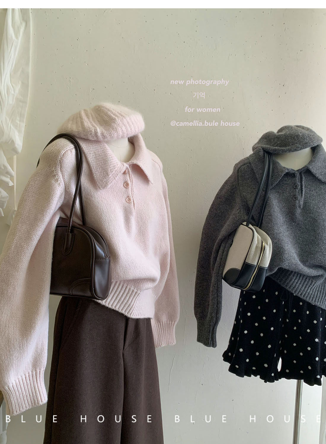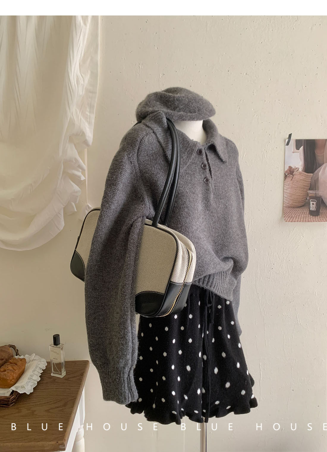 溫柔奶油系顯白polo翻領文藝復古套頭毛衣女秋冬軟糯外穿減齡上衣