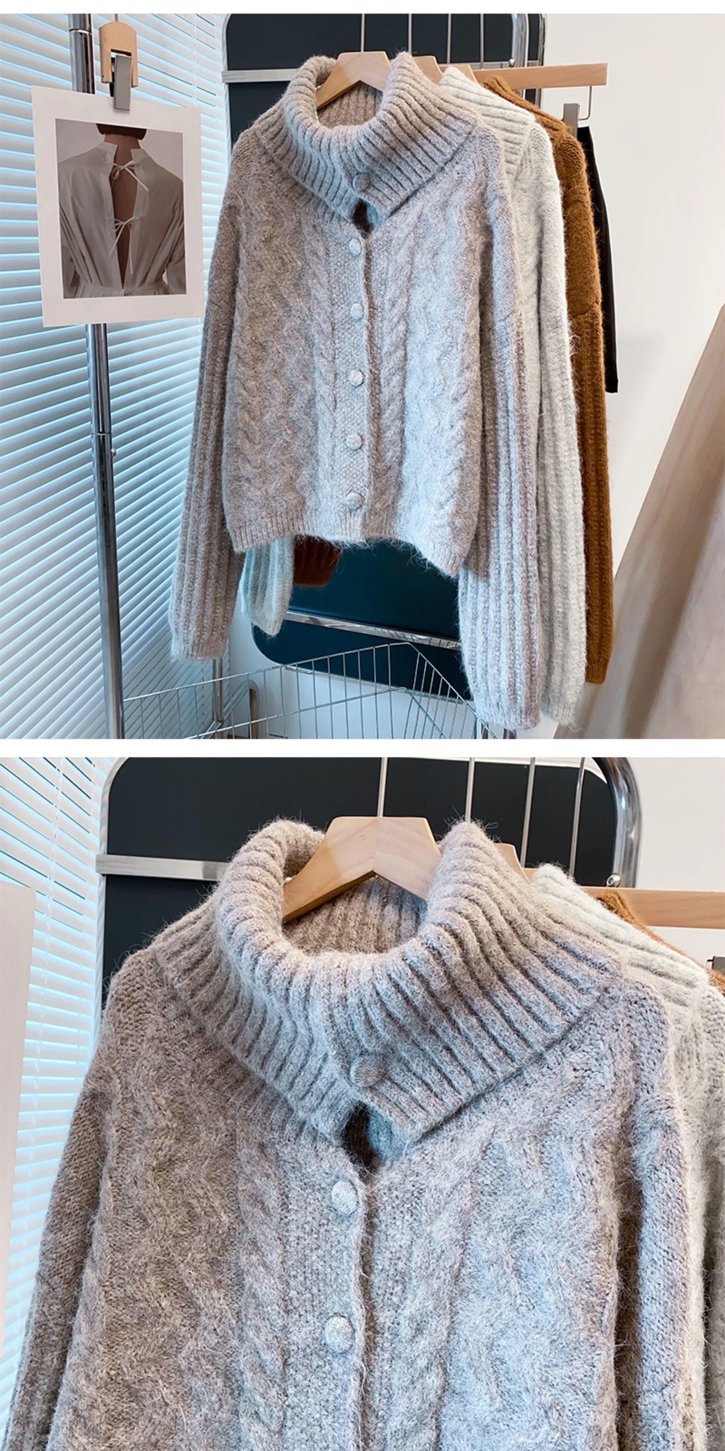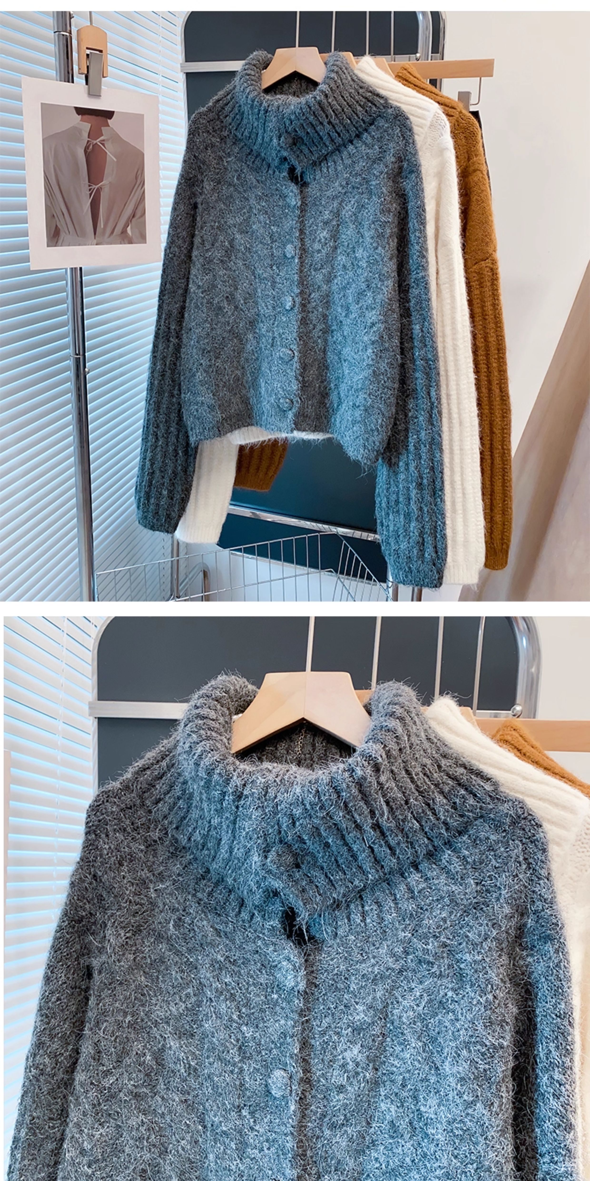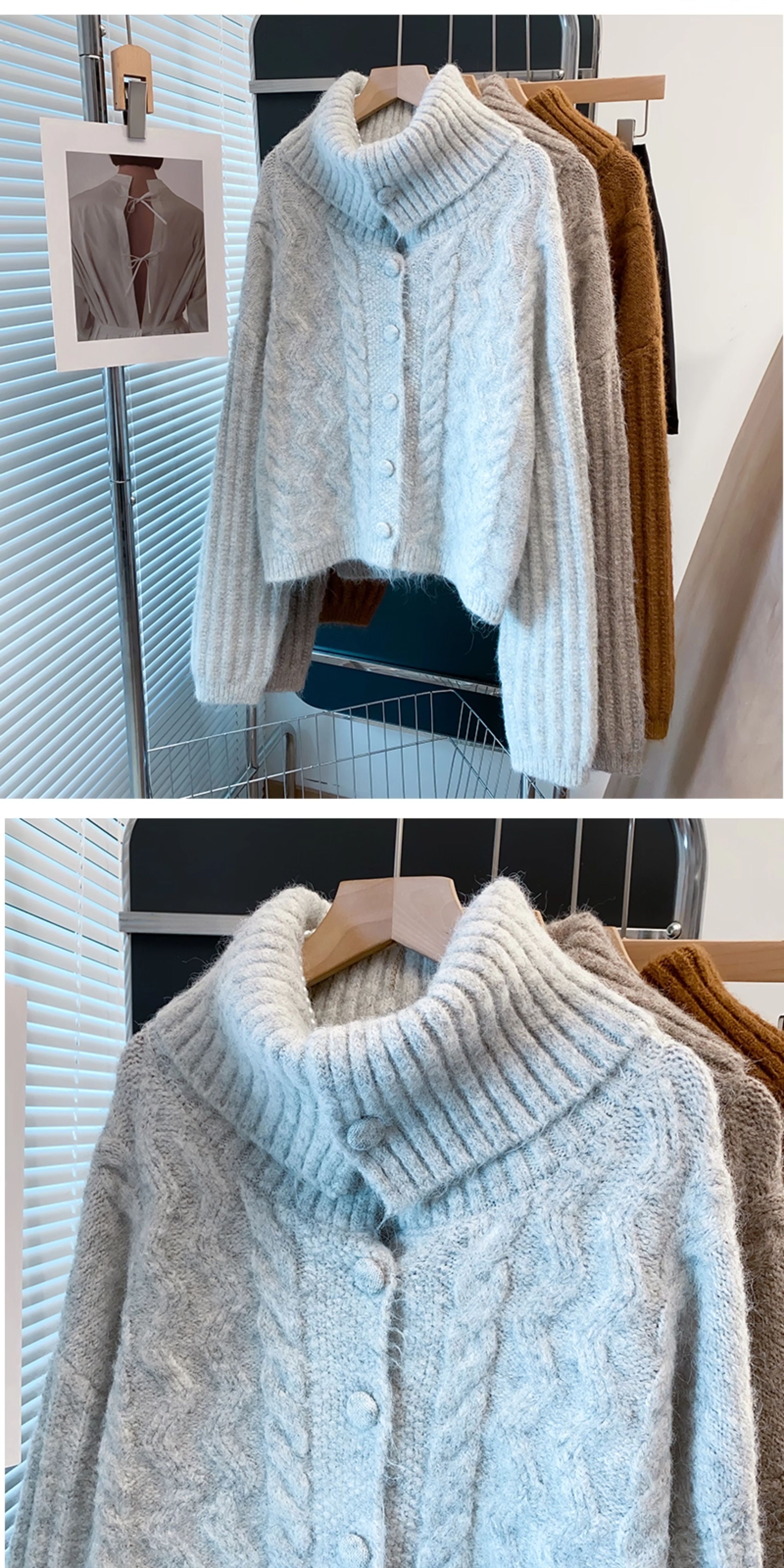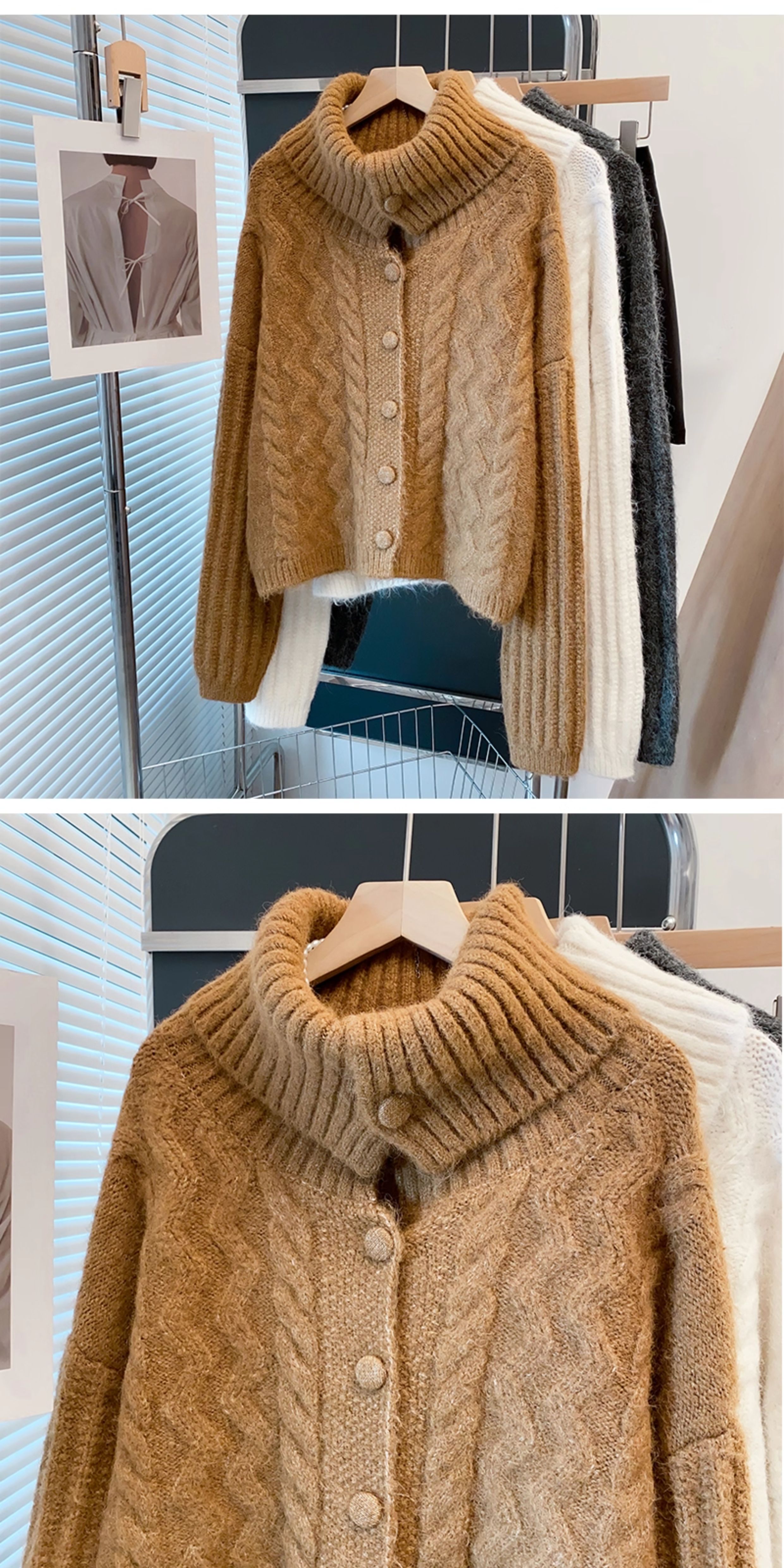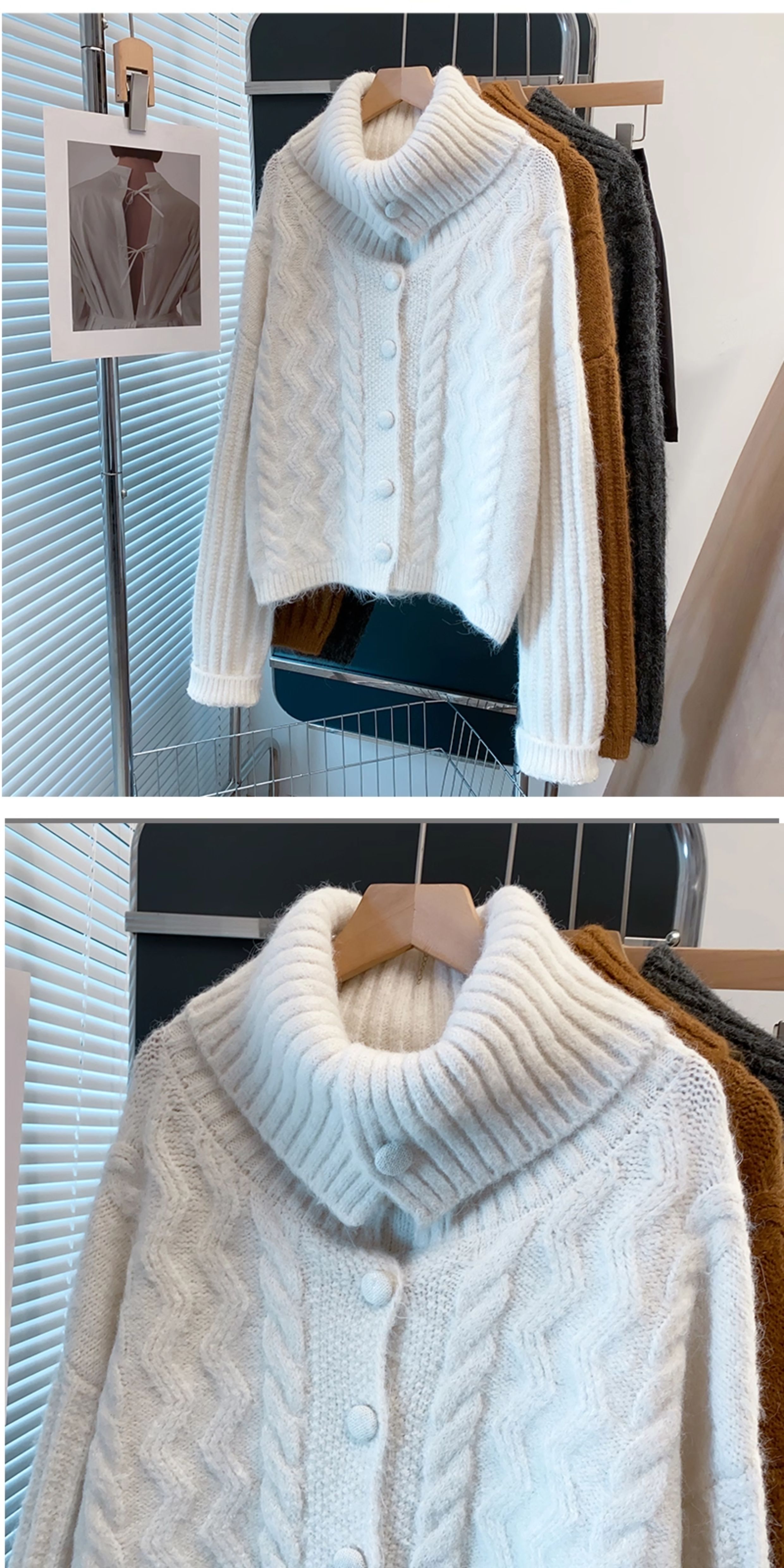 高領毛衣外套女2025秋冬新款寬松慵懶風翻領外穿上衣厚針織開衫潮