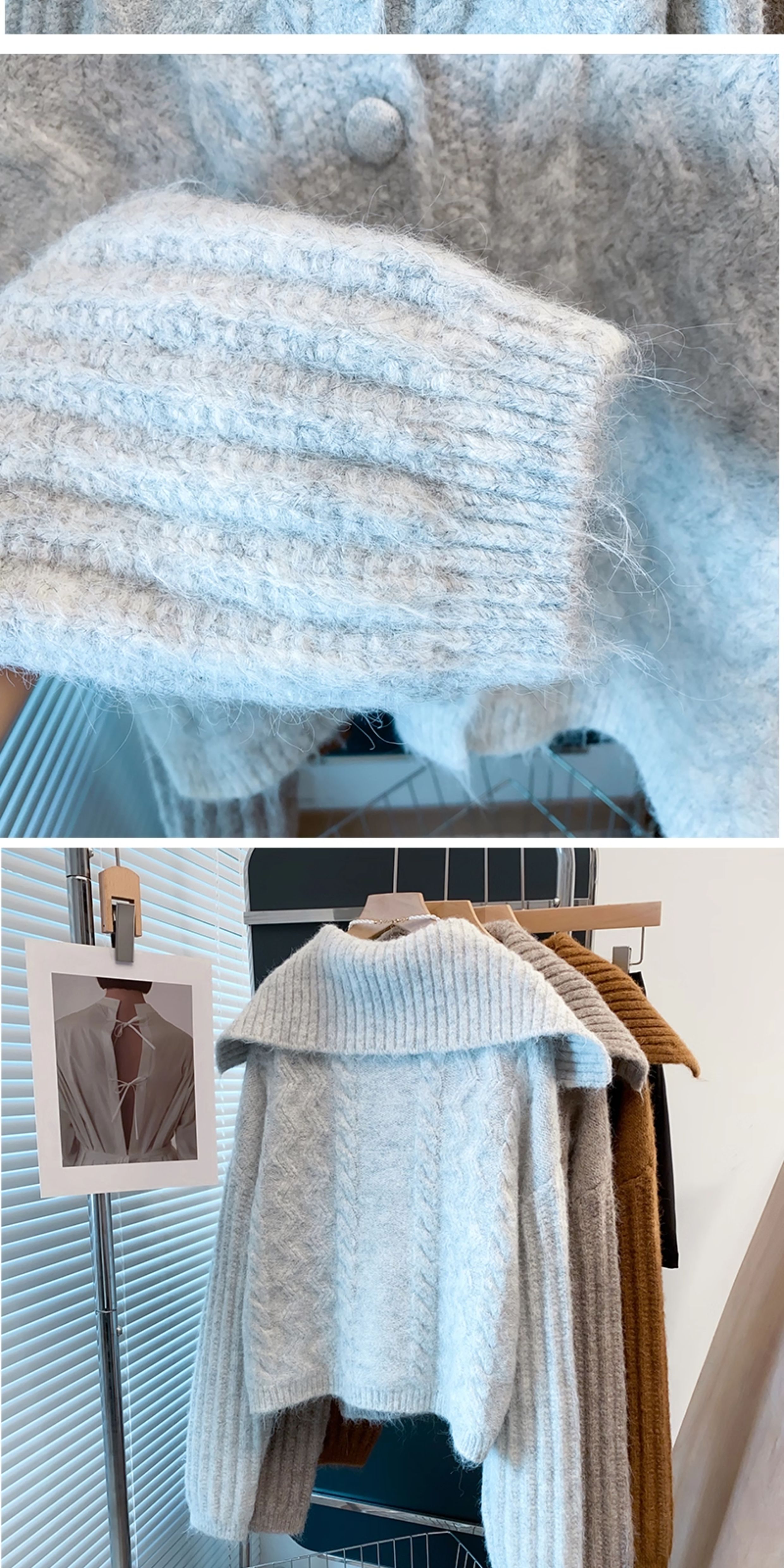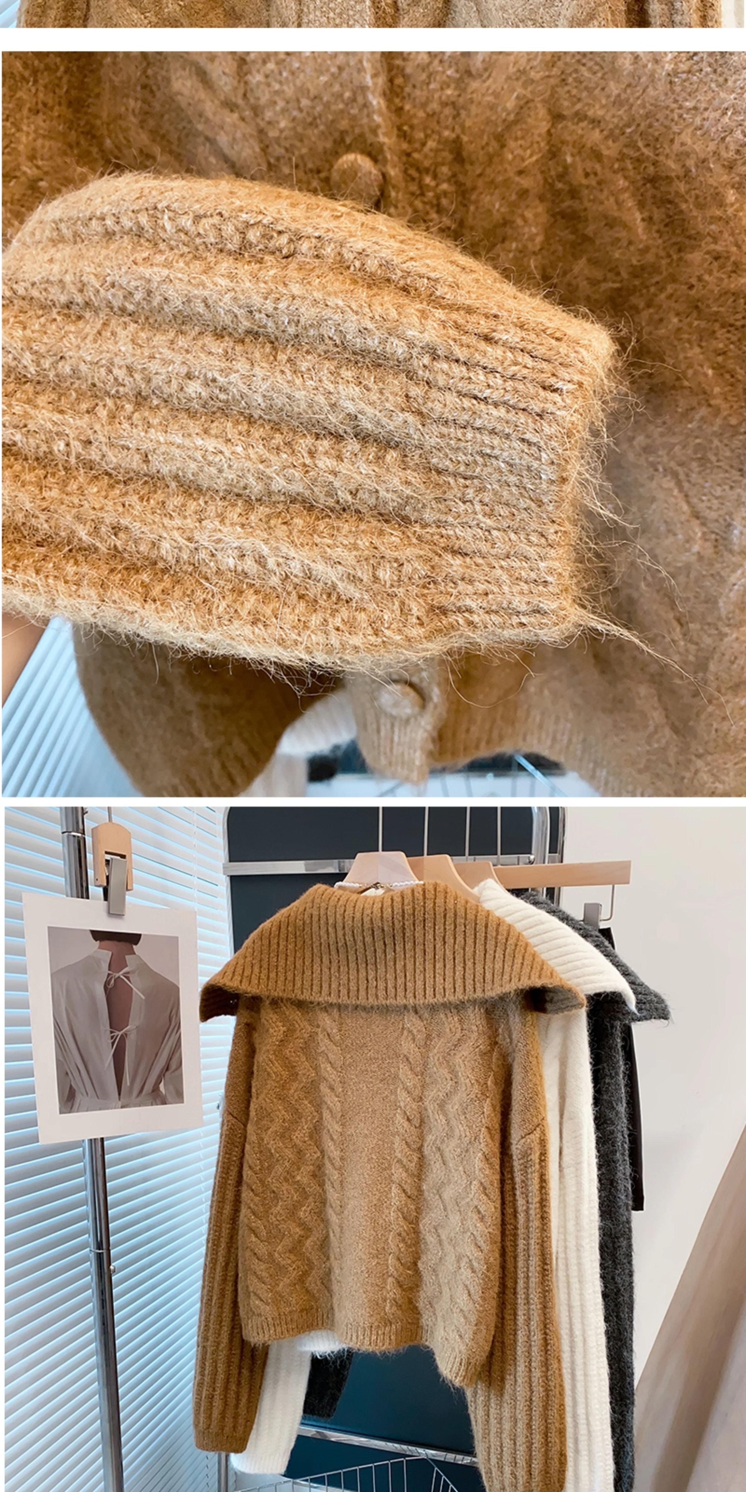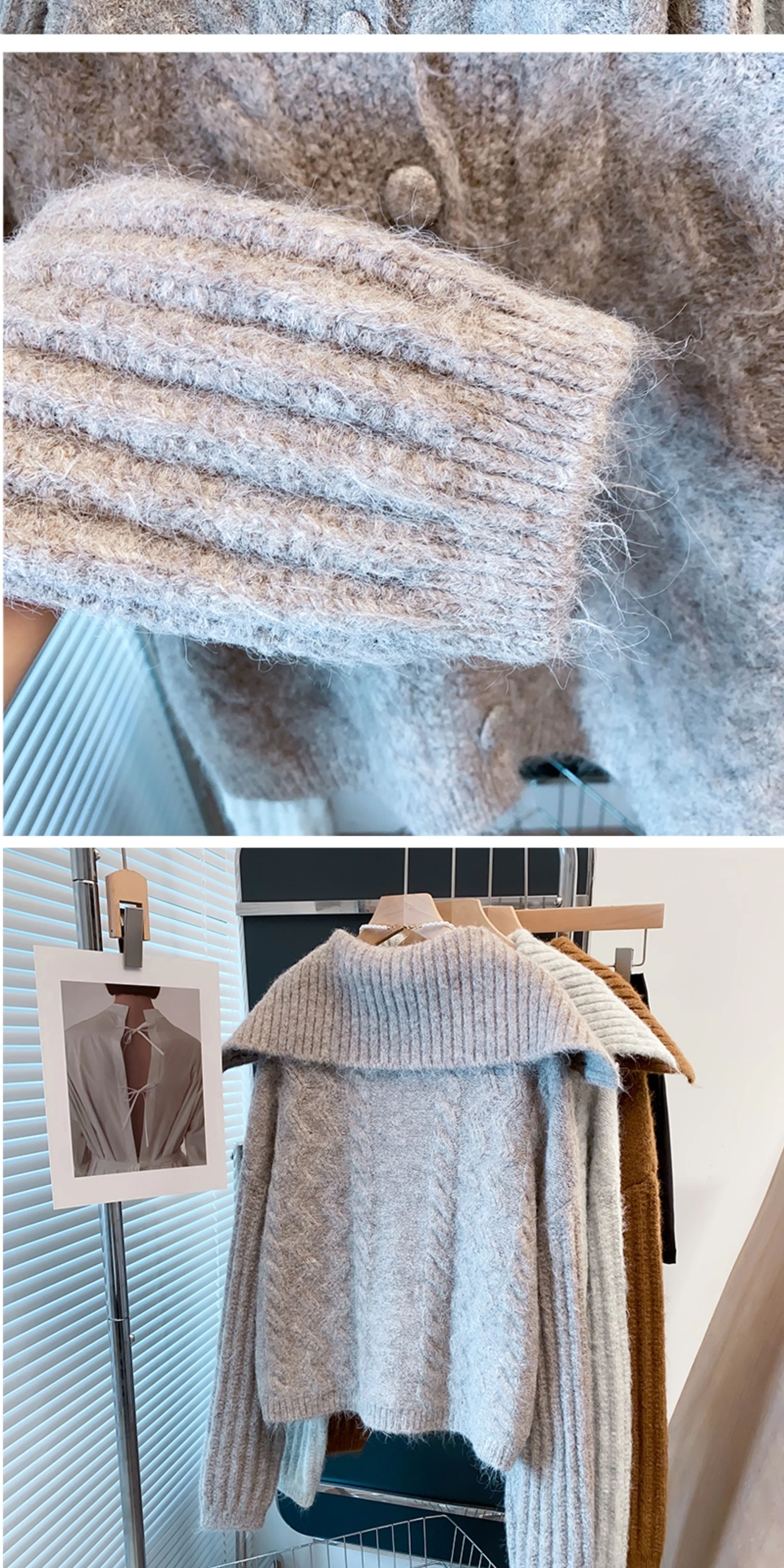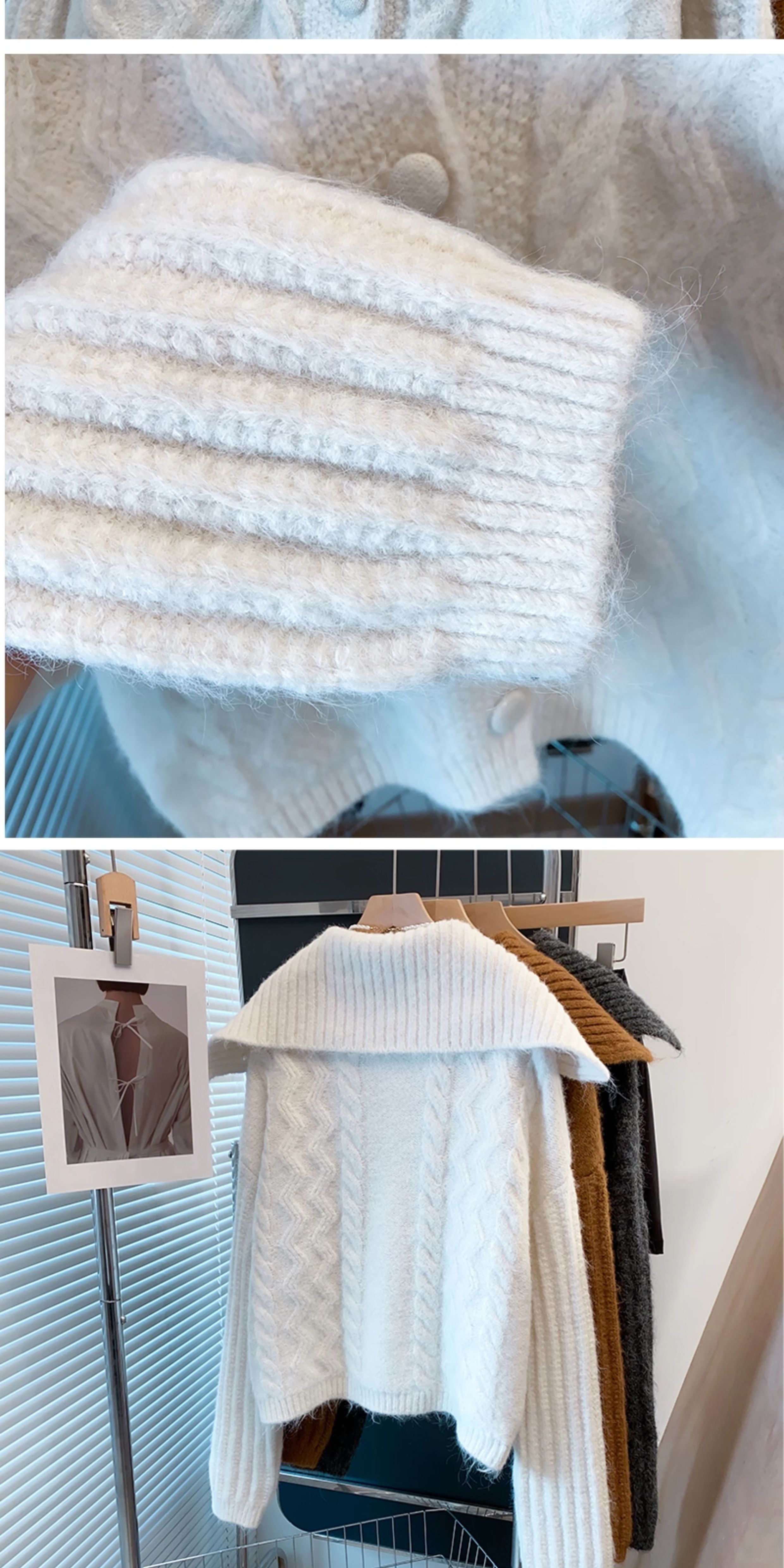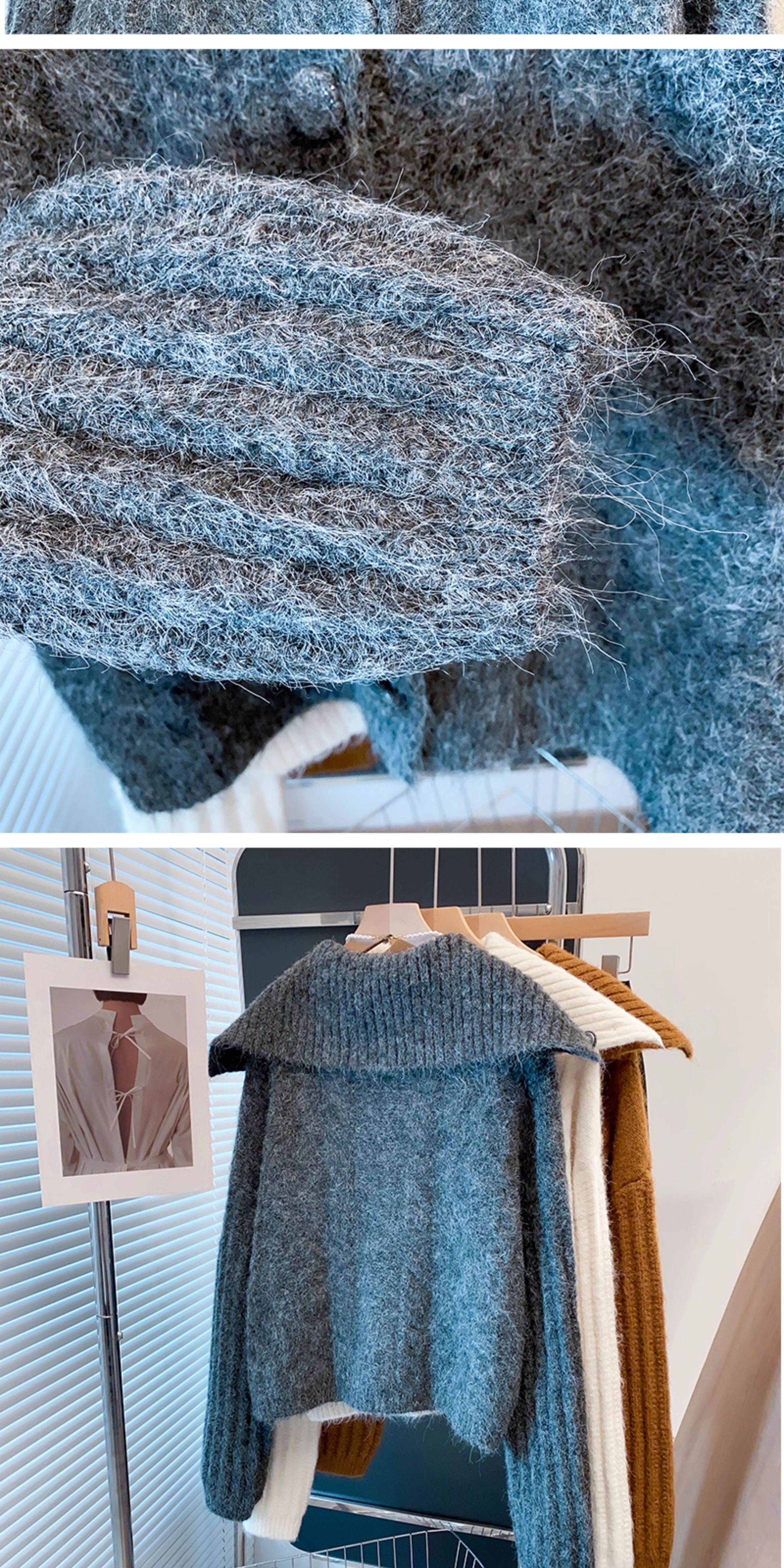 高領毛衣外套女2025秋冬新款寬松慵懶風翻領外穿上衣厚針織開衫潮