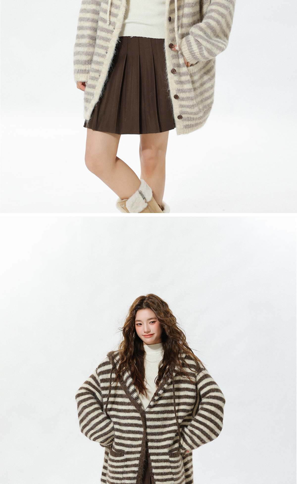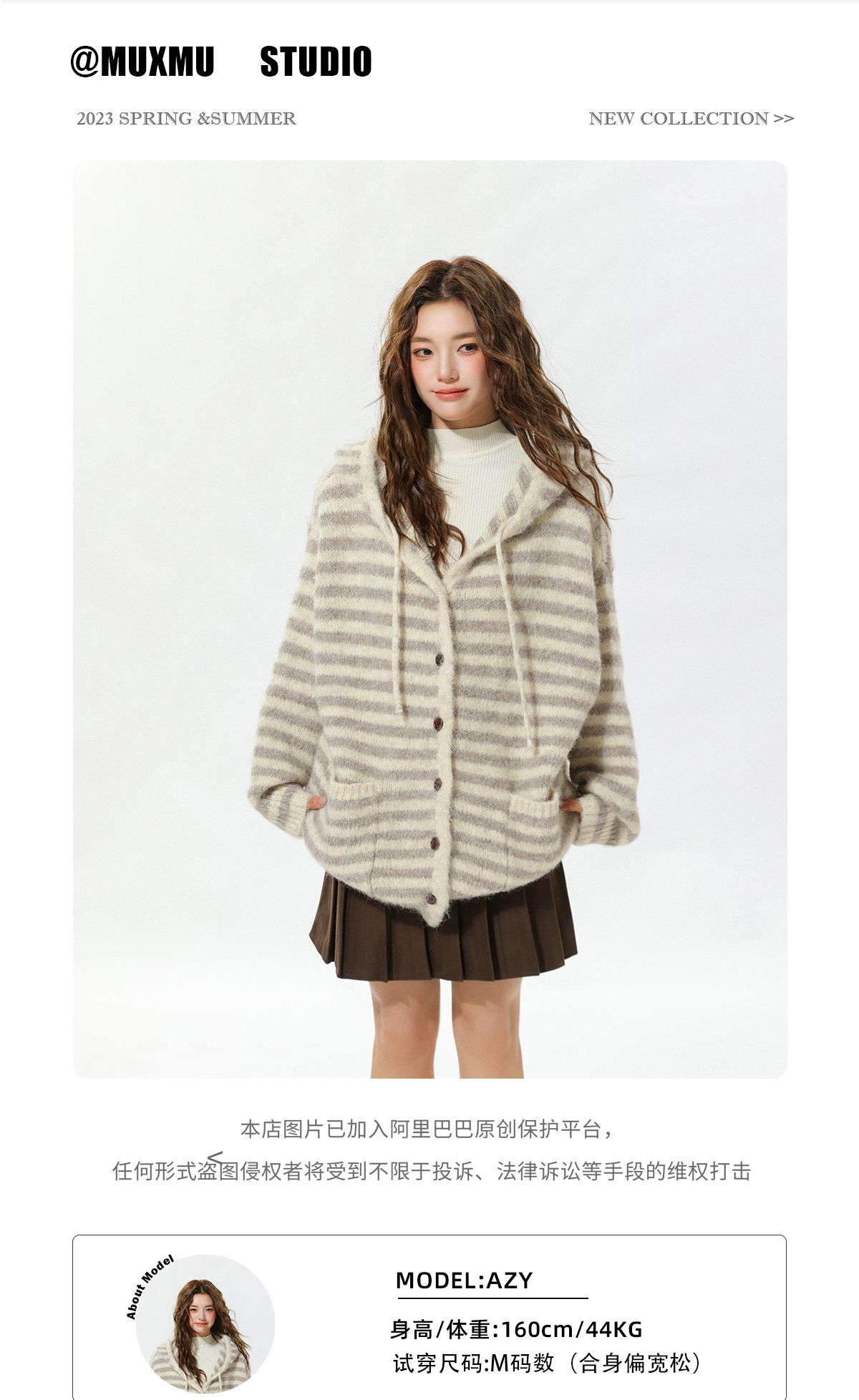 MUXMU 韓系文藝連帽條紋針織衫女秋冬慵懶風寬松顯瘦開衫毛衣外套