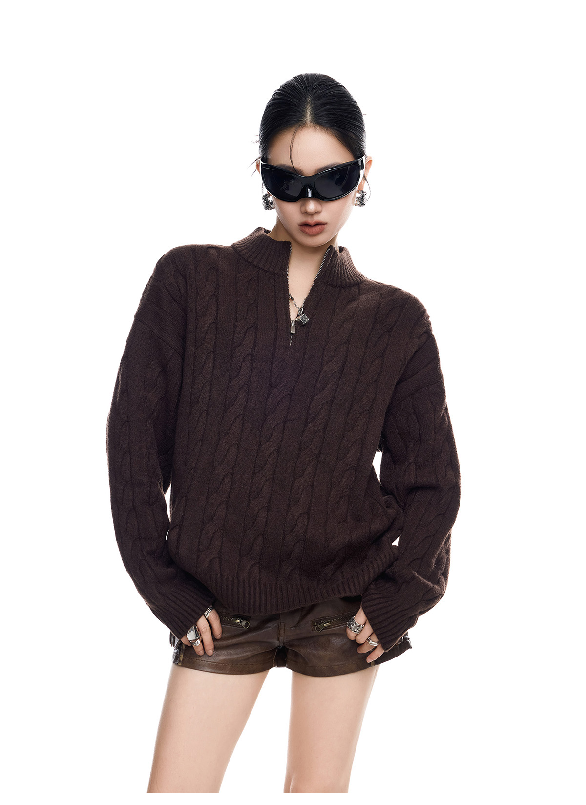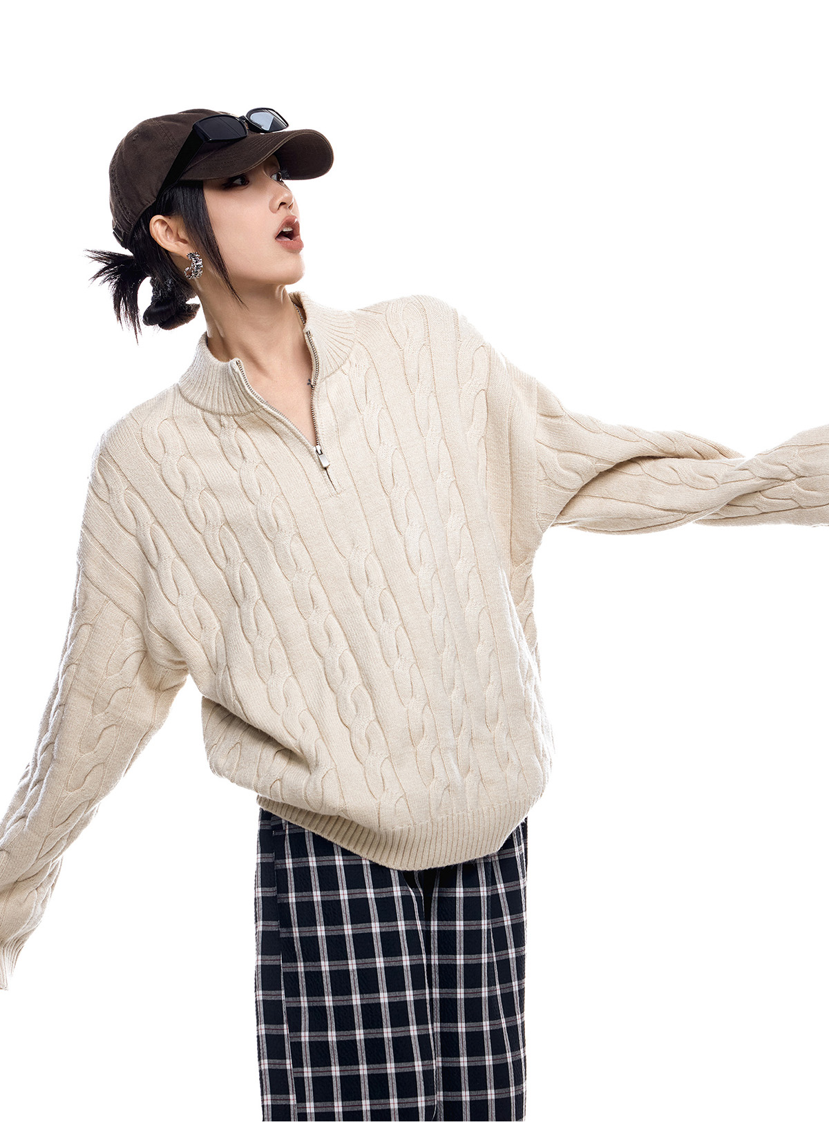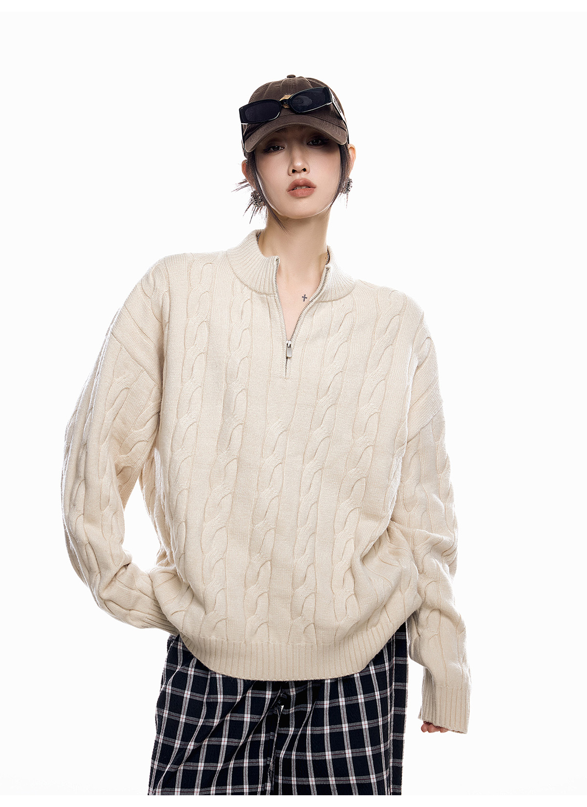 ICH MODE 美式老錢風半拉鍊套頭毛衣女春秋季polo衫毛針織衫上衣