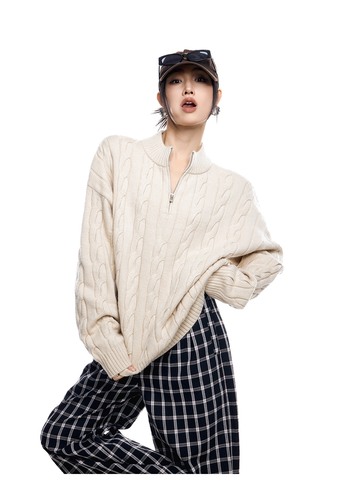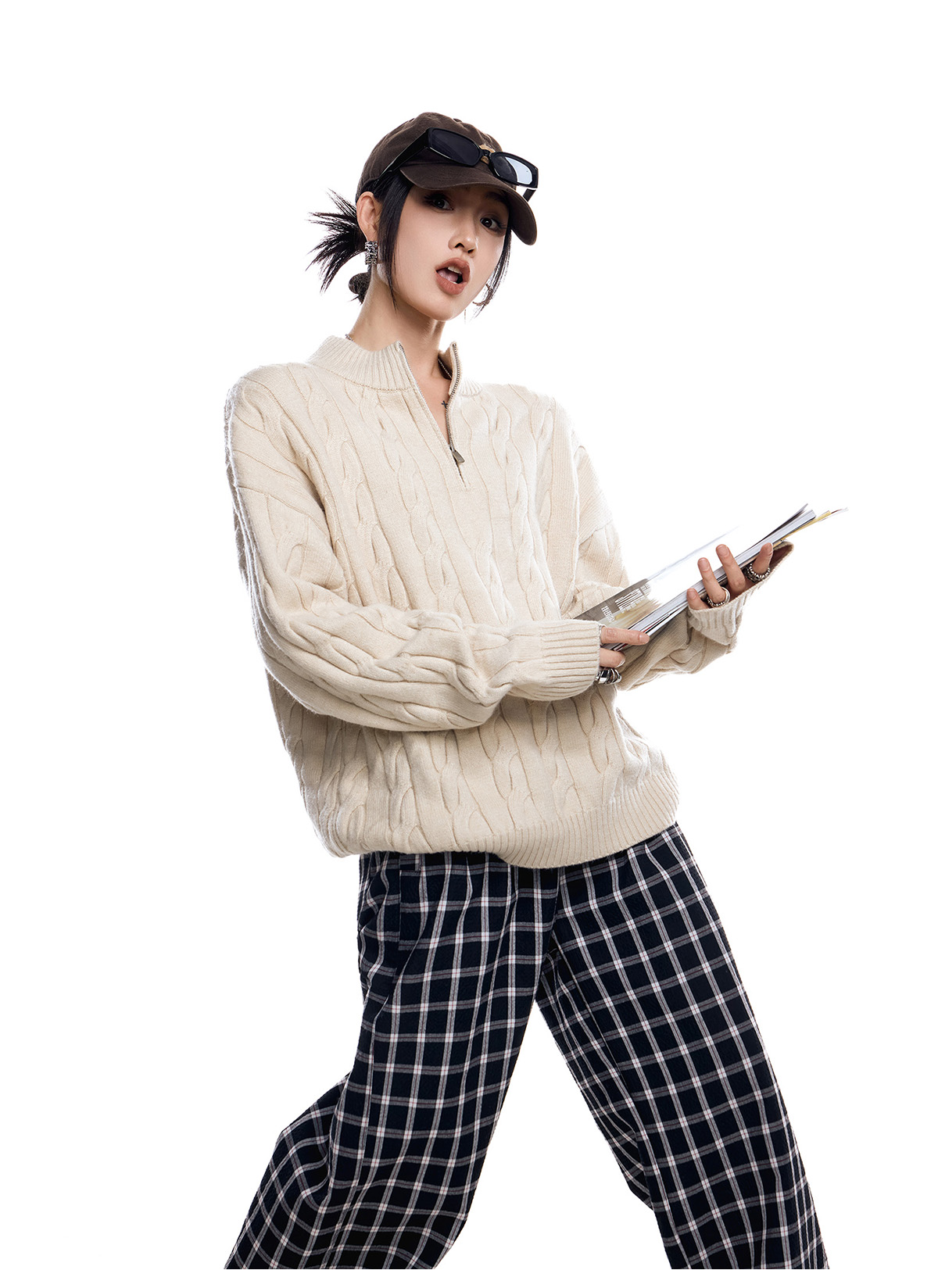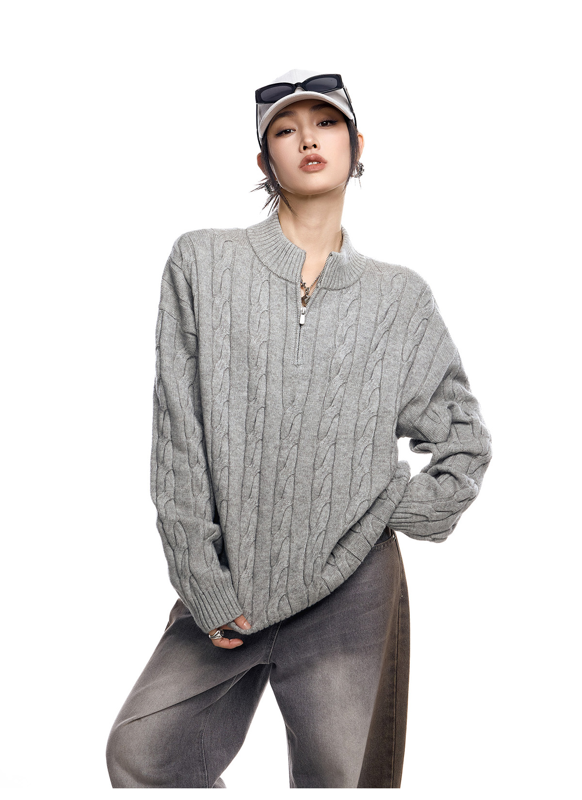 ICH MODE 美式老錢風半拉鍊套頭毛衣女春秋季polo衫毛針織衫上衣