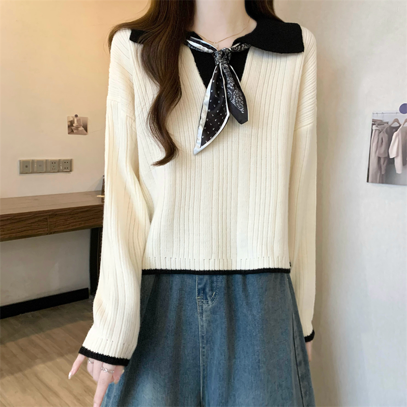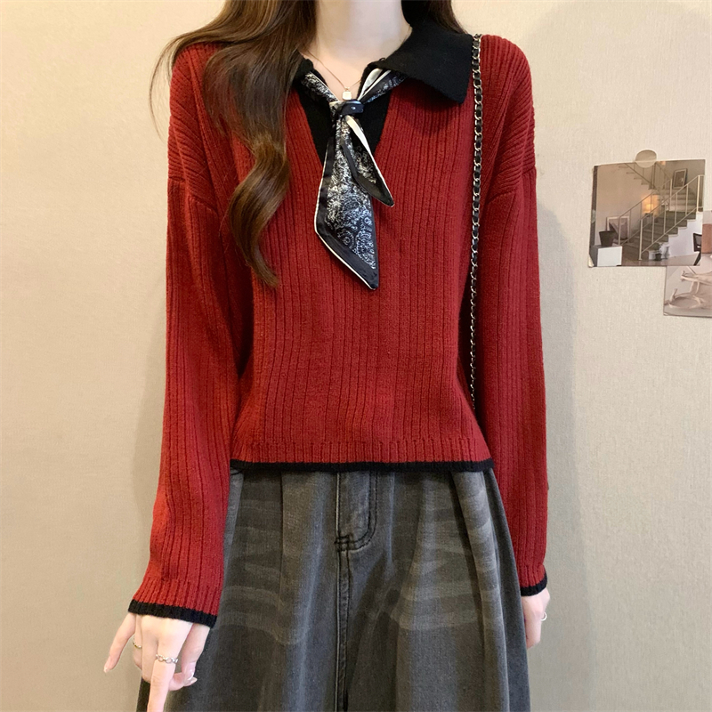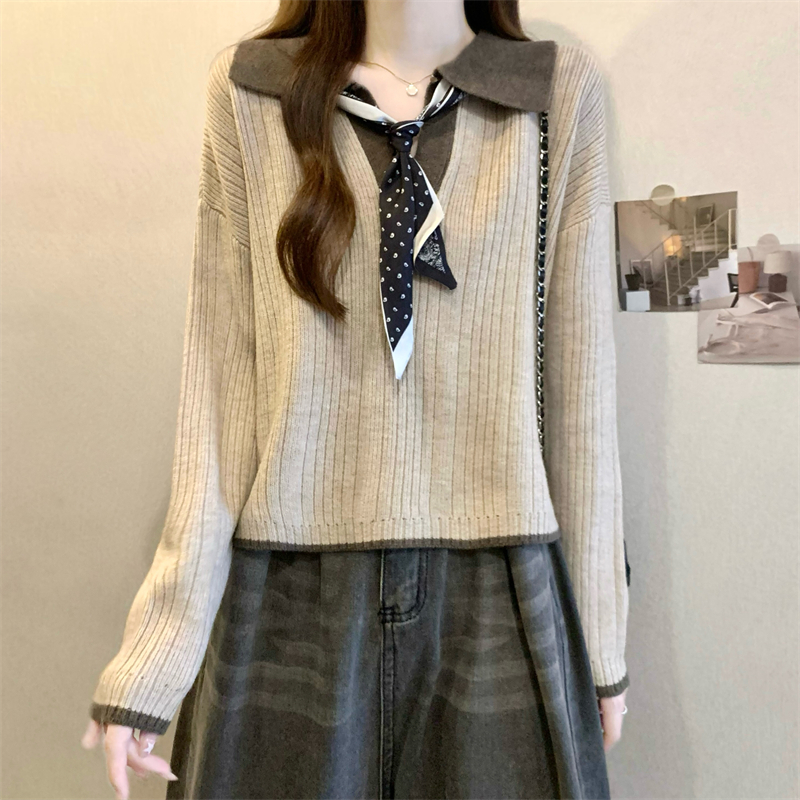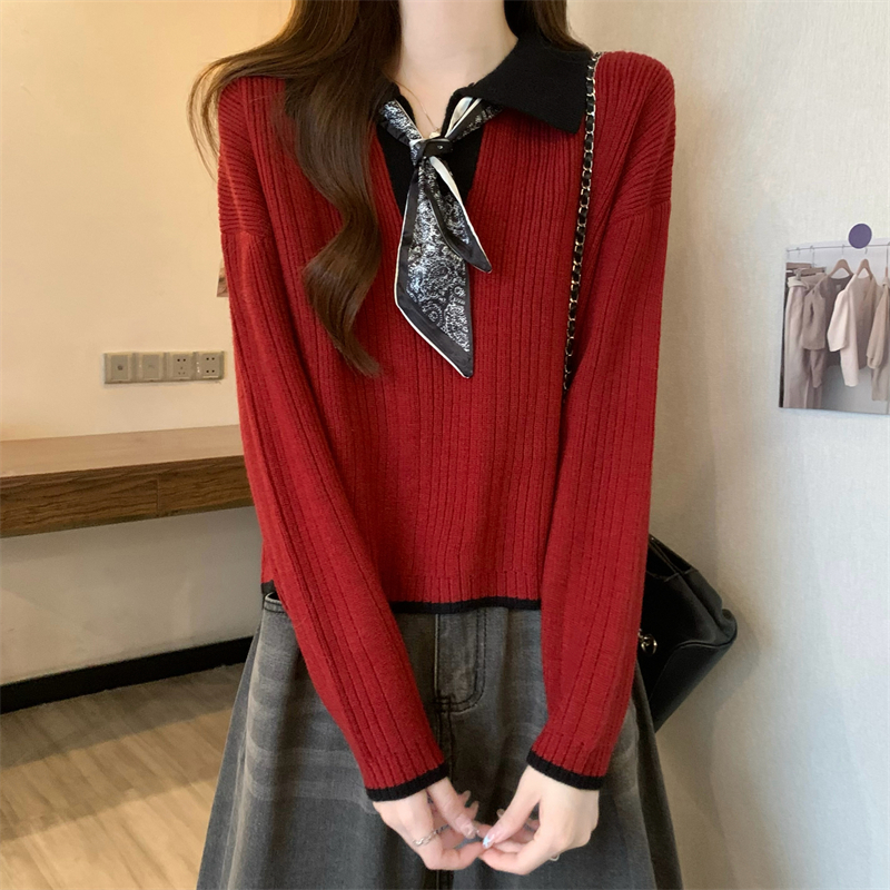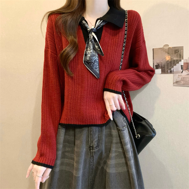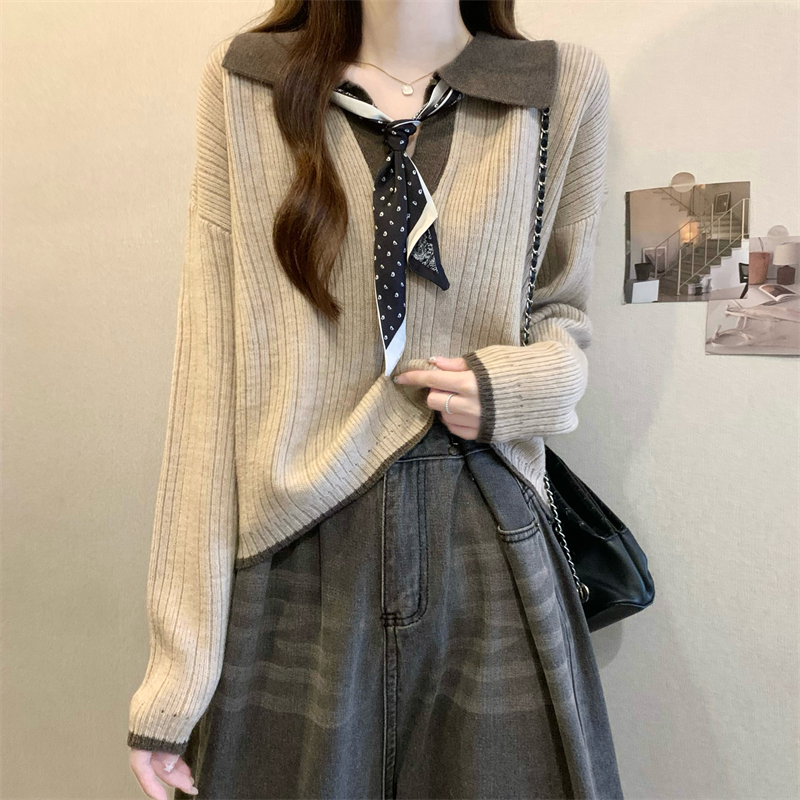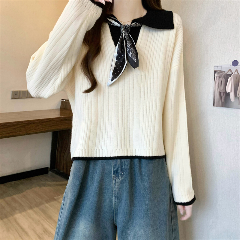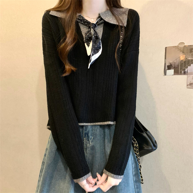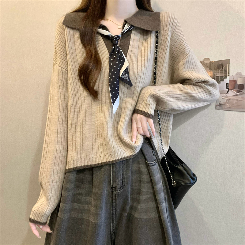 短款毛衣女2025秋冬新款爆款polo領巨好看內搭長袖慵懶上衣打底衫