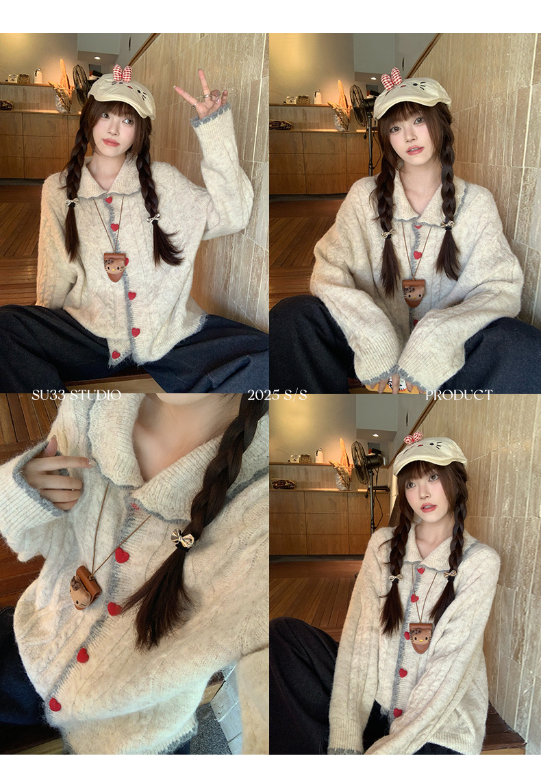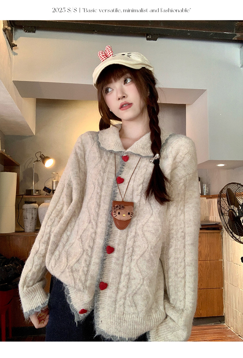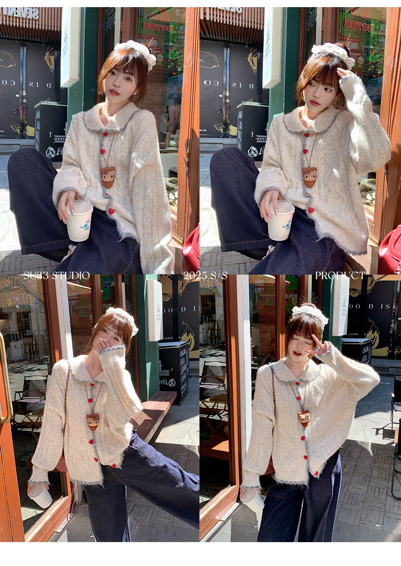 蘇三三娃娃領毛衣外套女秋冬穿搭羊毛針織開衫2025新款巨好看上衣
