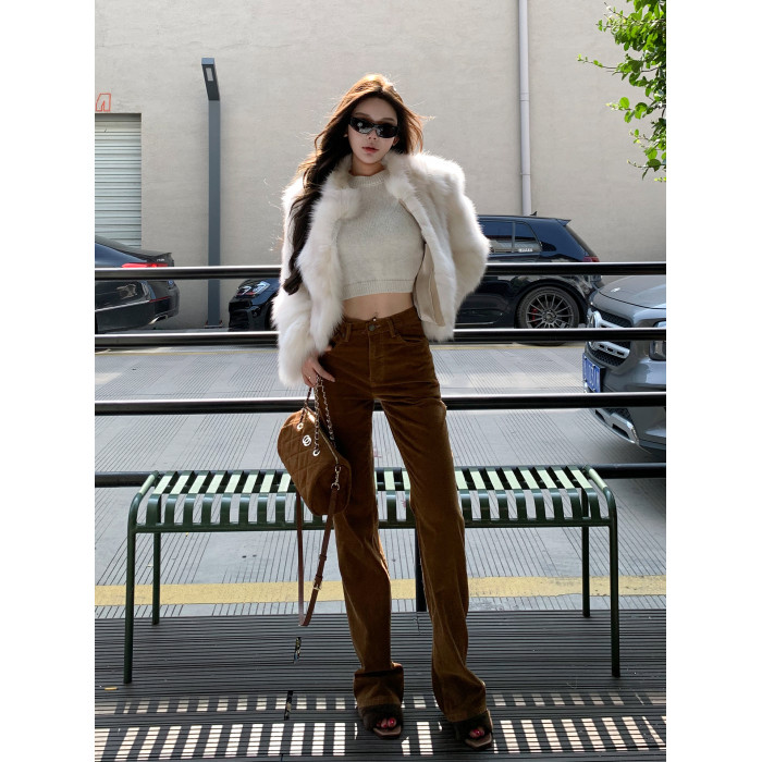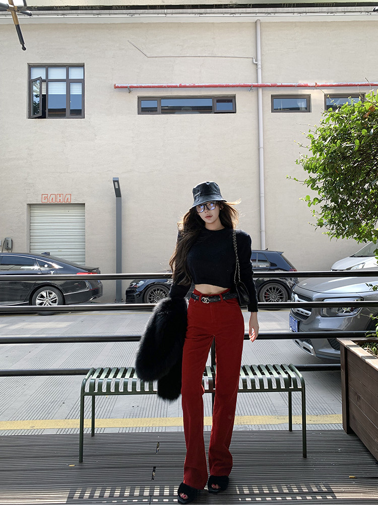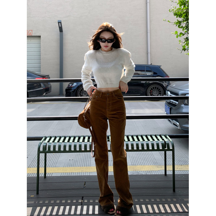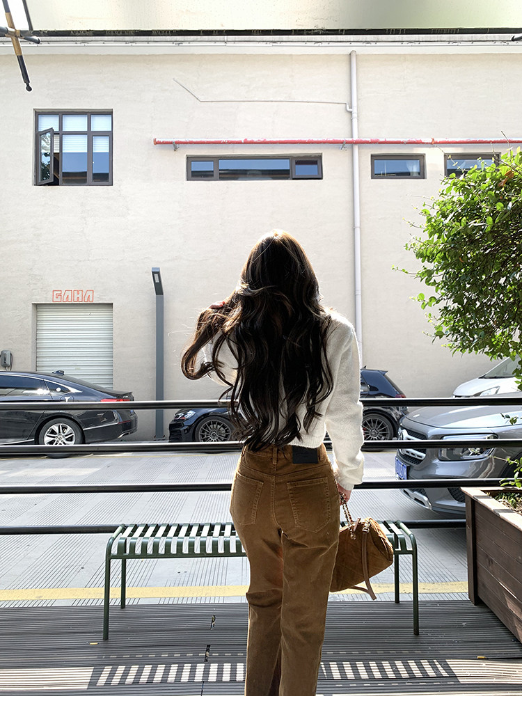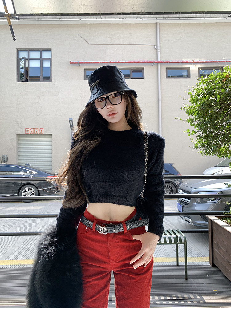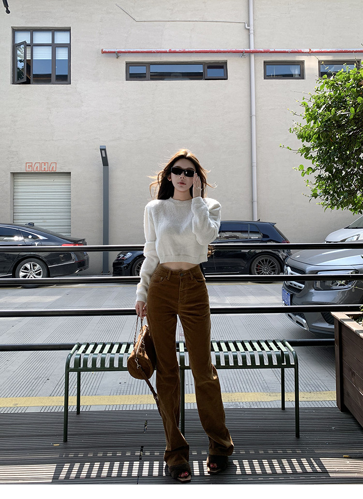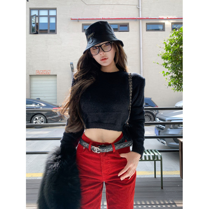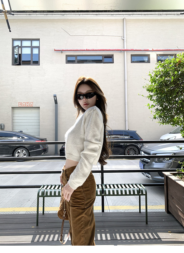媛媛 【度假and通勤】韓系氣質圓領針織毛衣女純色長袖短款上衣女