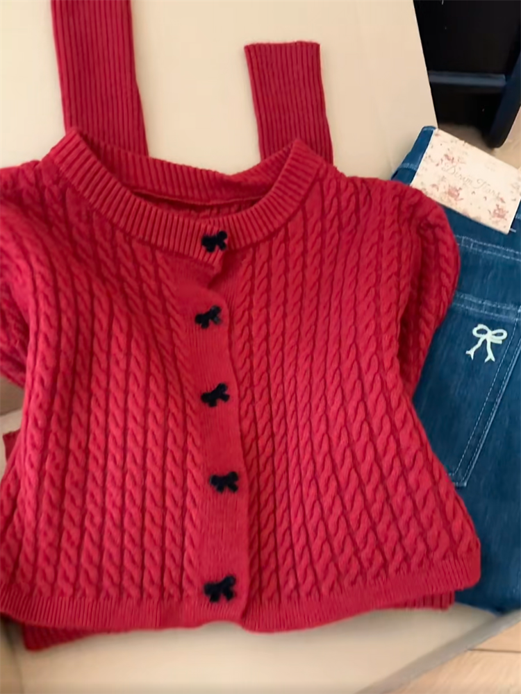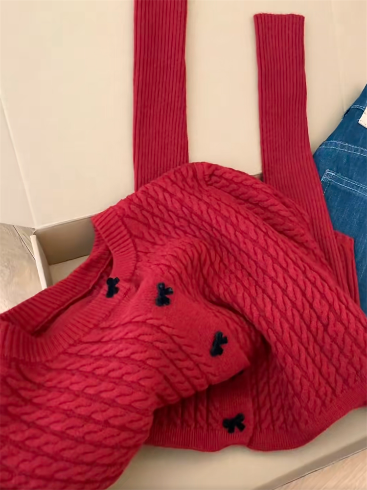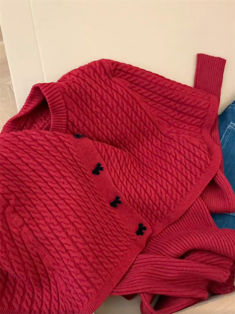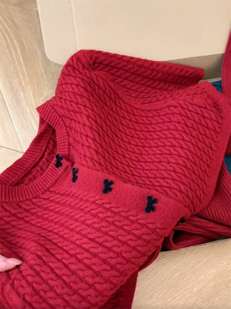 自畱款推薦~韓系聖誕紅披肩鬭篷針織上衣女秋冬季巨好看修身套裝