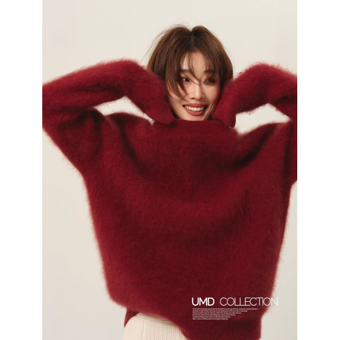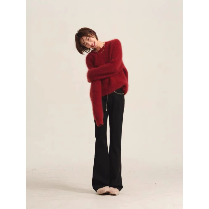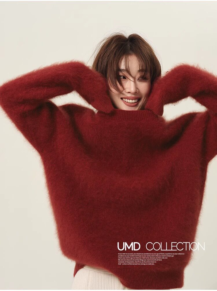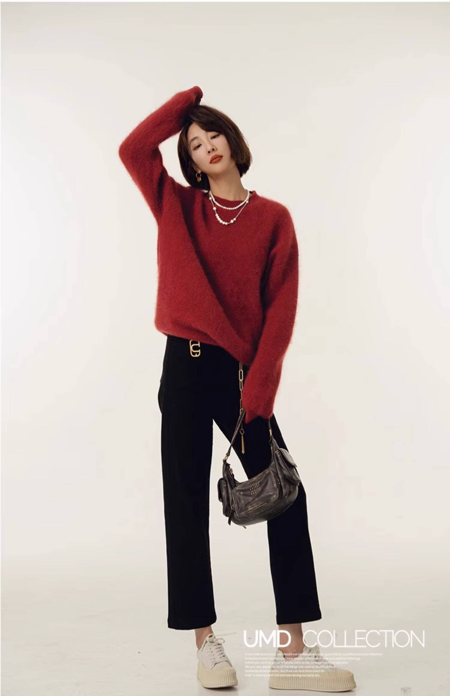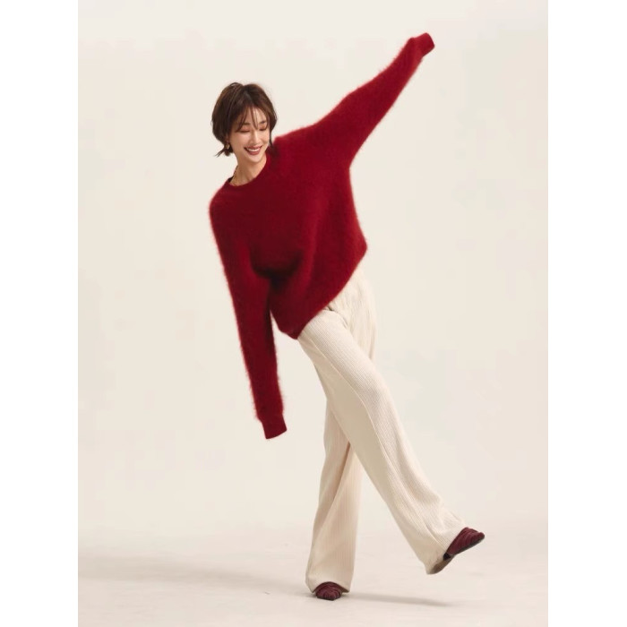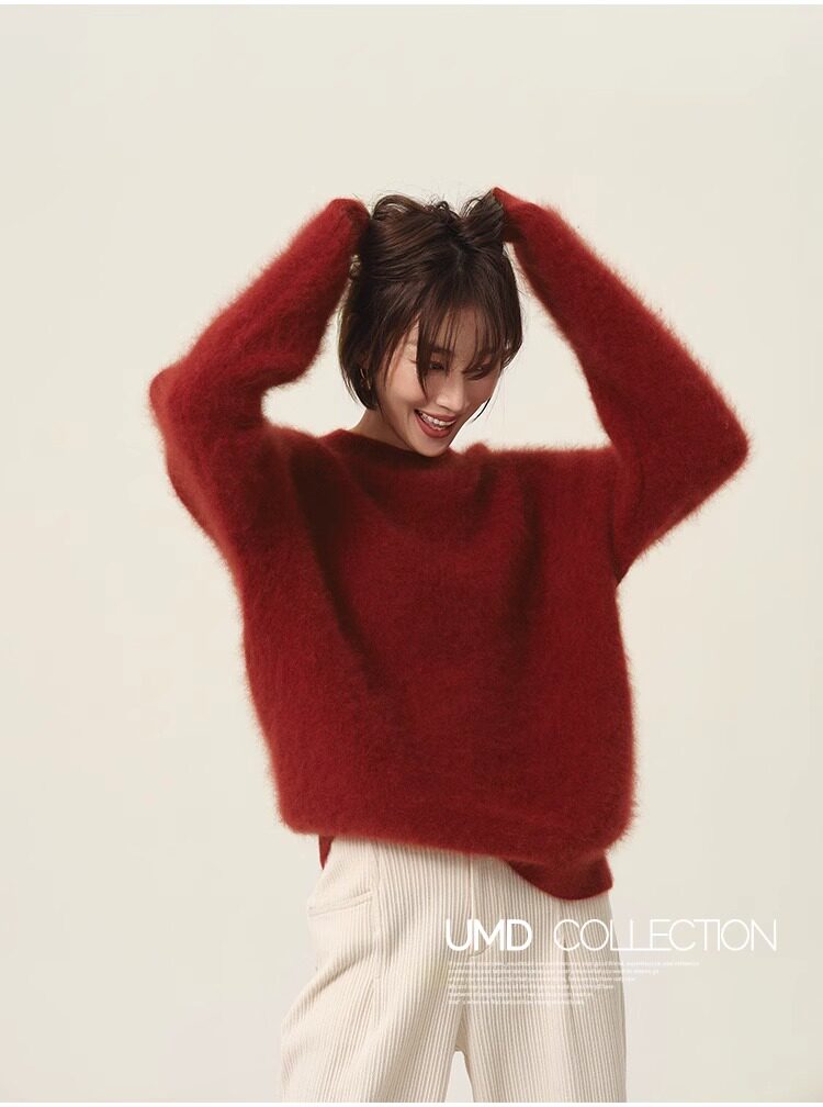 新年法式溫柔風聖誕紅色水貂絨套頭毛衣內搭圓領高級感針織女秋冬