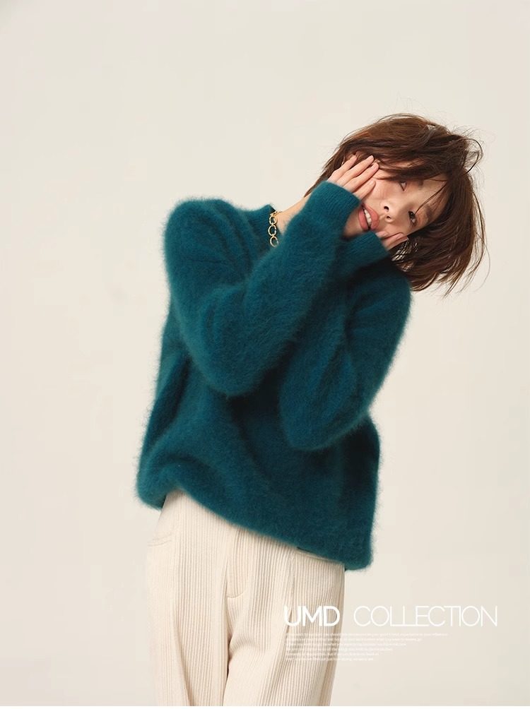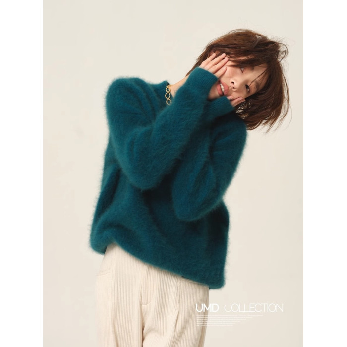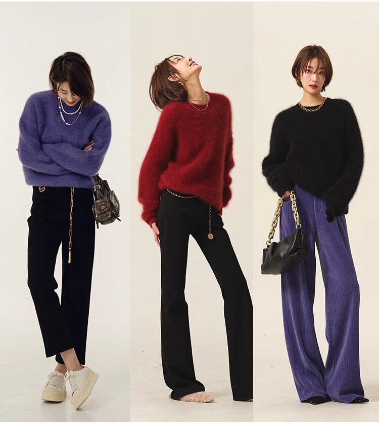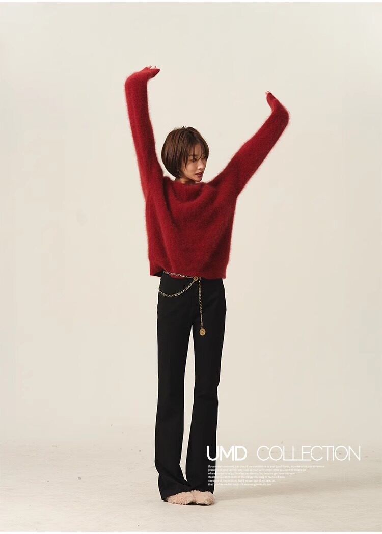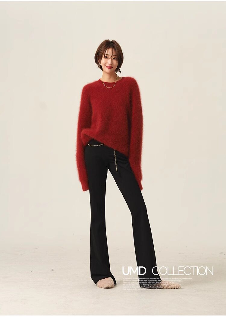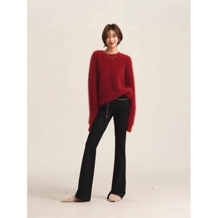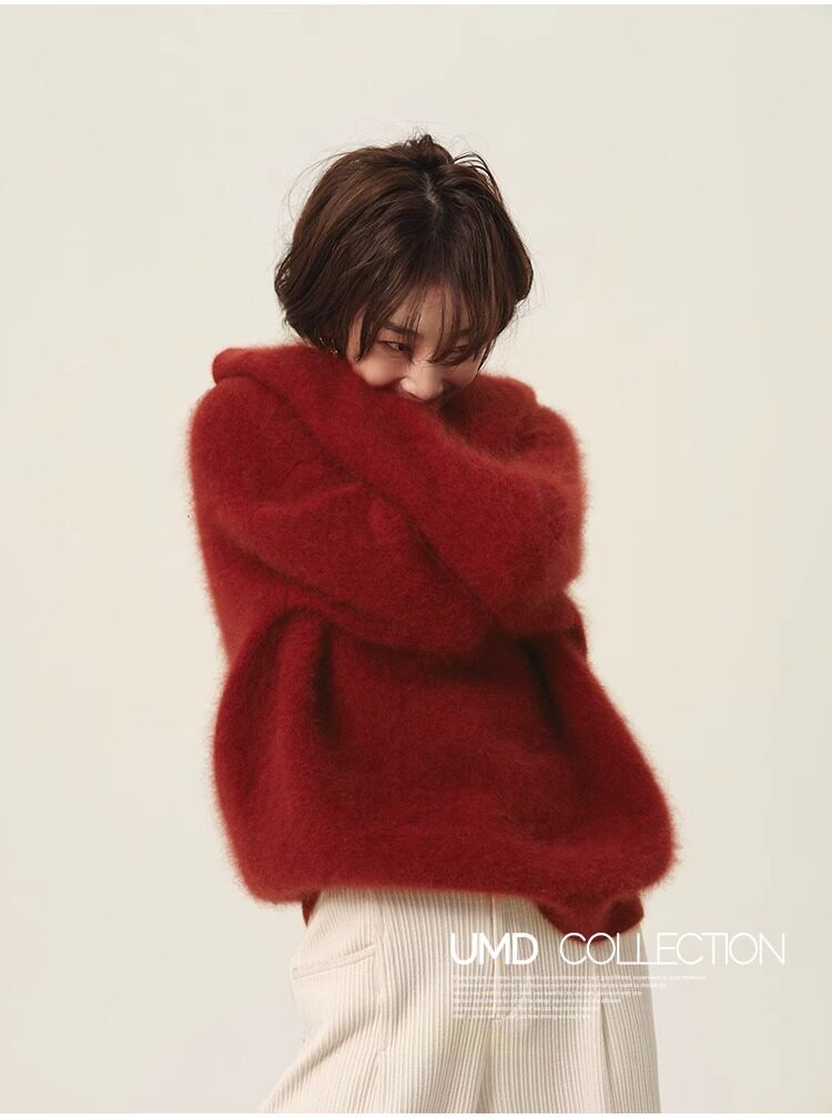 新年法式溫柔風聖誕紅色水貂絨套頭毛衣內搭圓領高級感針織女秋冬