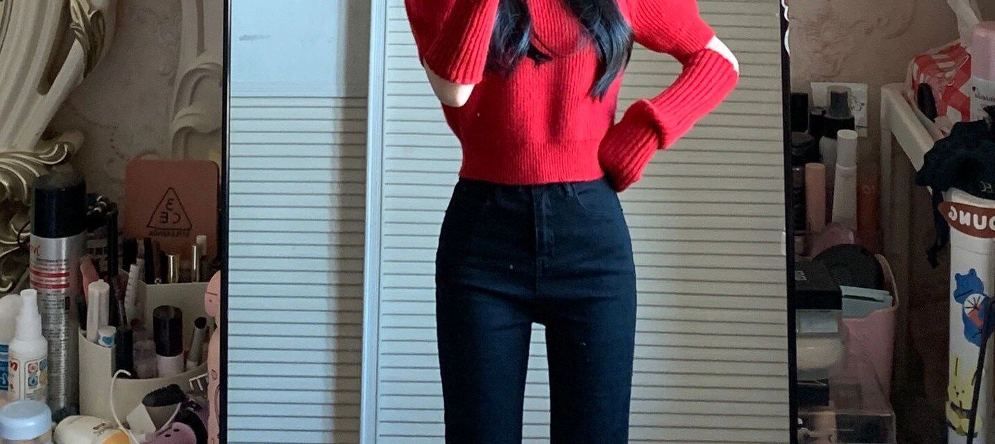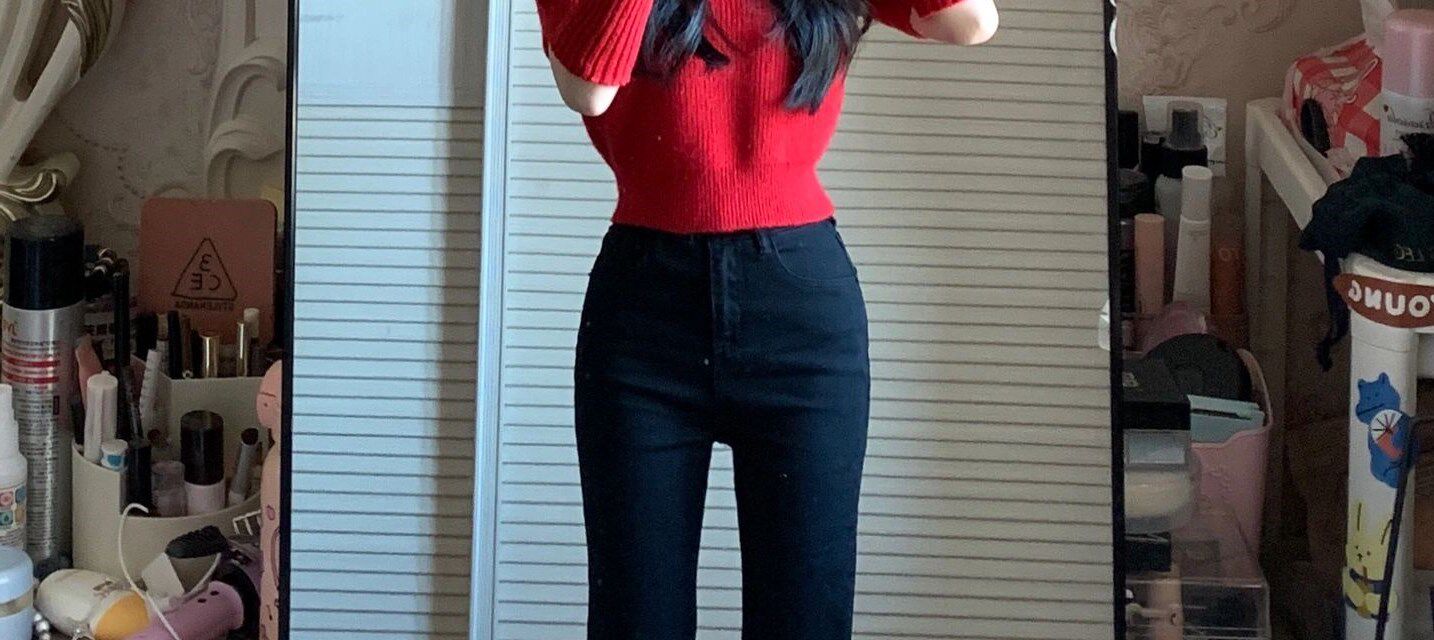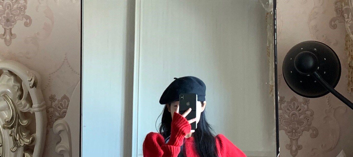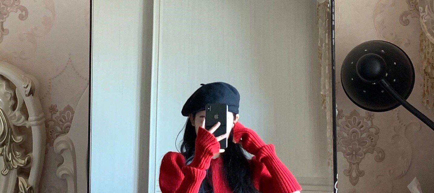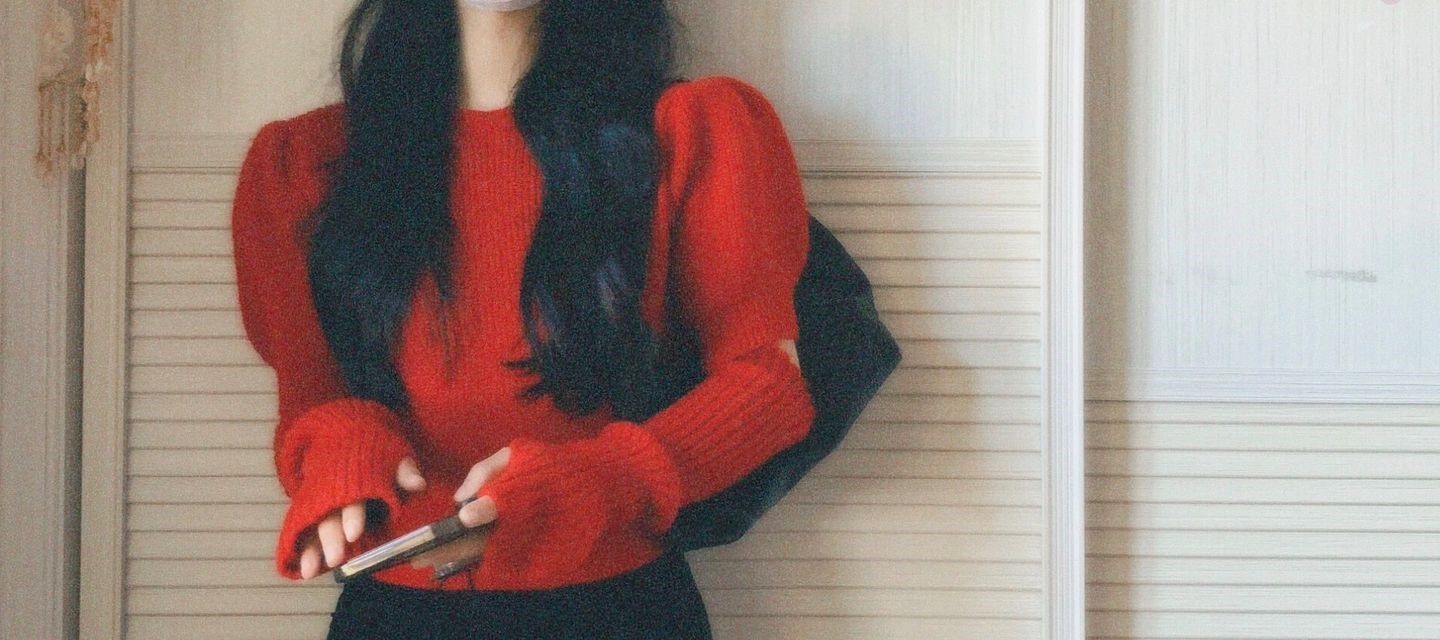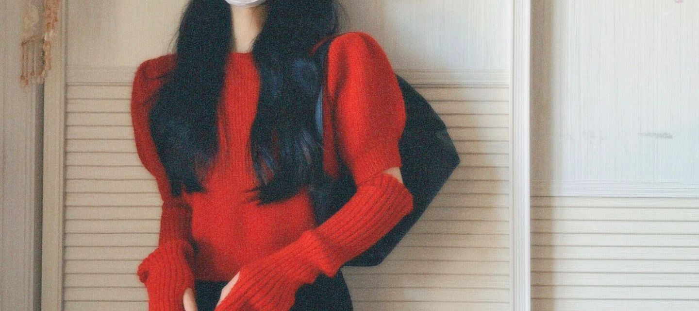 法式高級感聖誕紅色袖套毛衣女秋冬韓系泡泡袖短款針織衫新年衣服