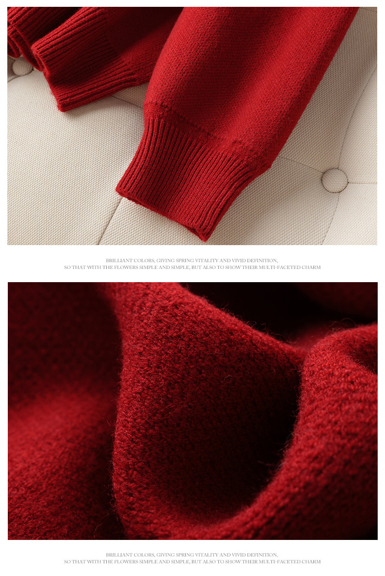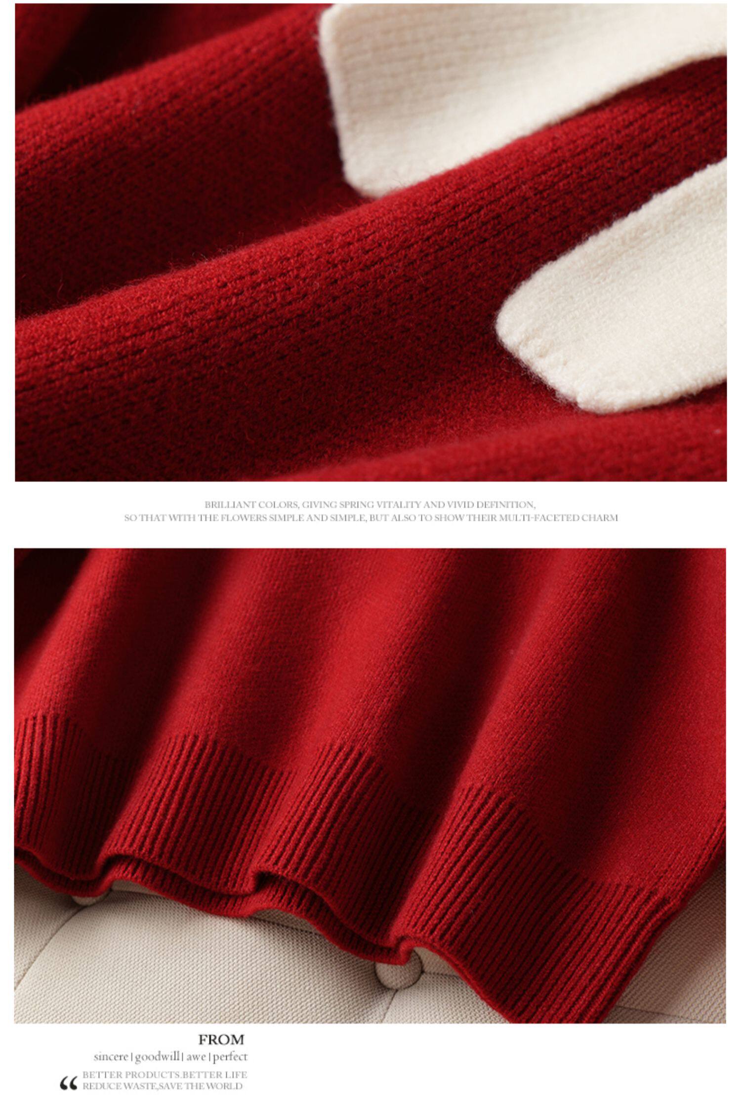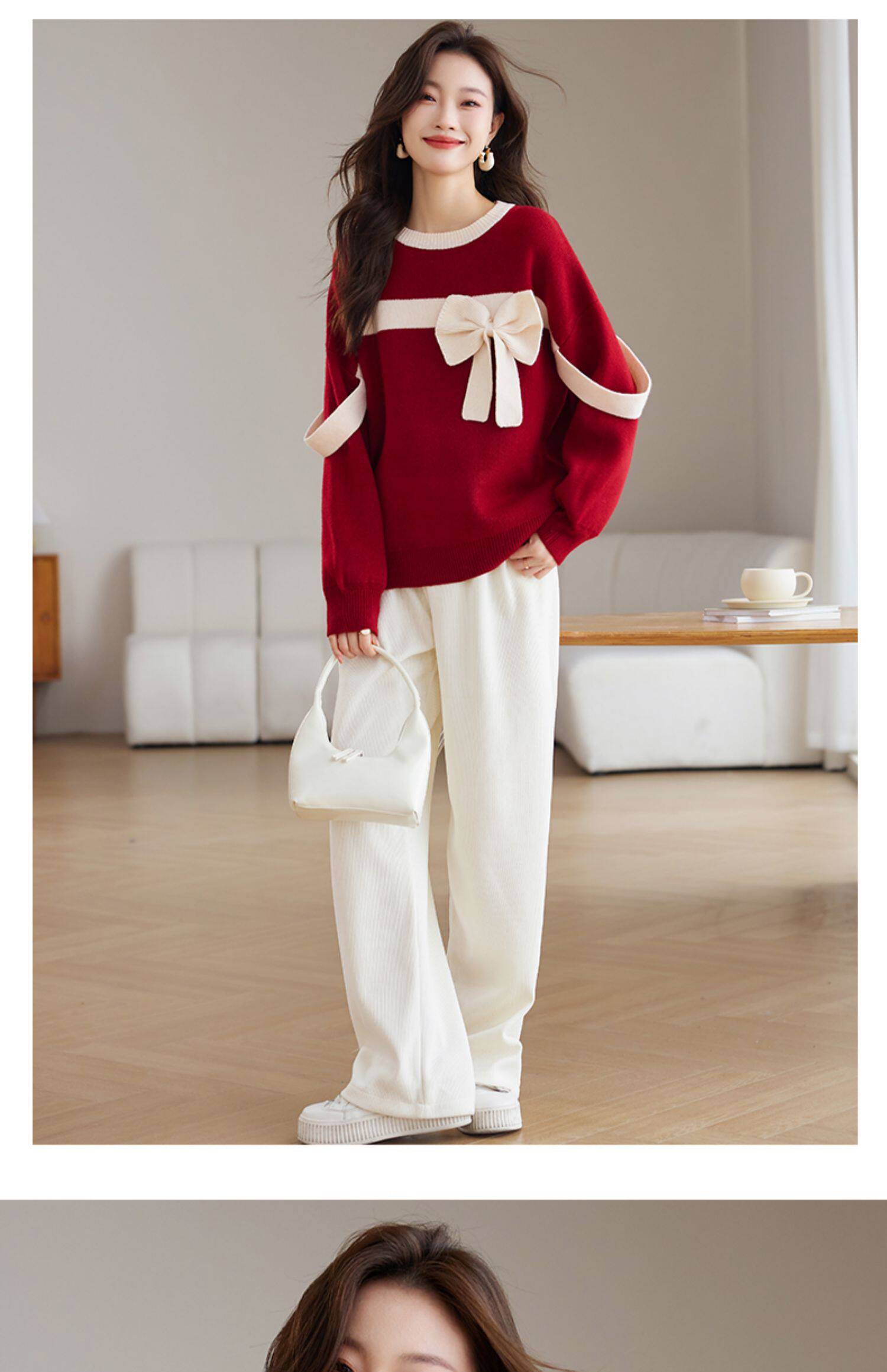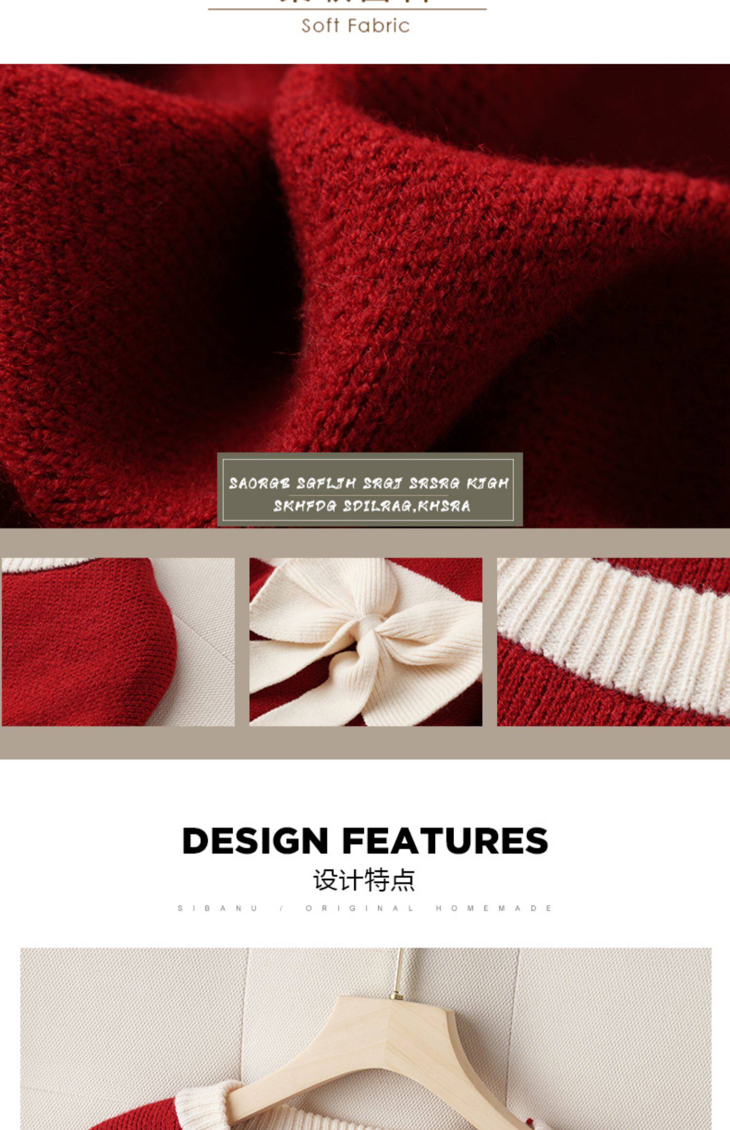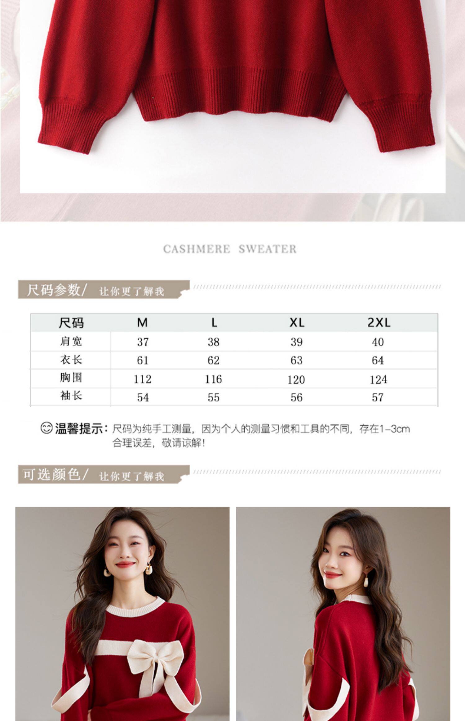 2025冬季新年聖誕紅別致蝴蝶結慵懶風毛衣圓領減齡軟糯小衆上衣女