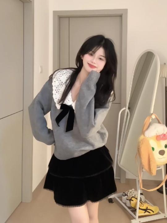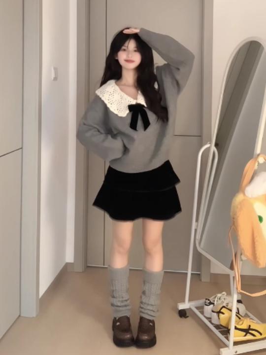 甜美設計感穿搭娃娃領毛衣女秋冬小個子溫柔減齡慵懶風針織衫上衣