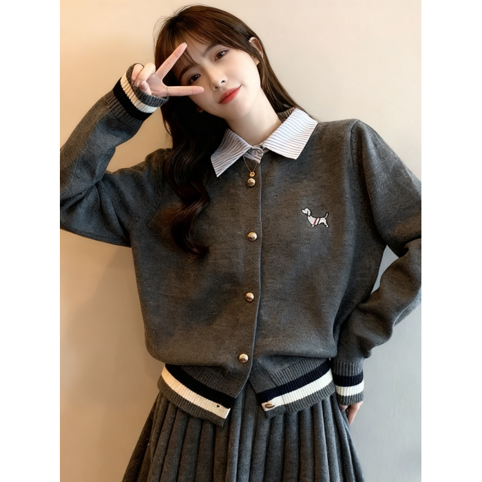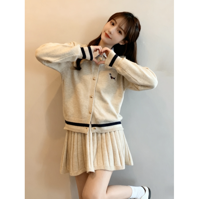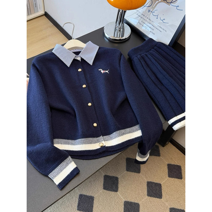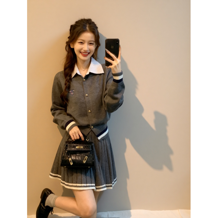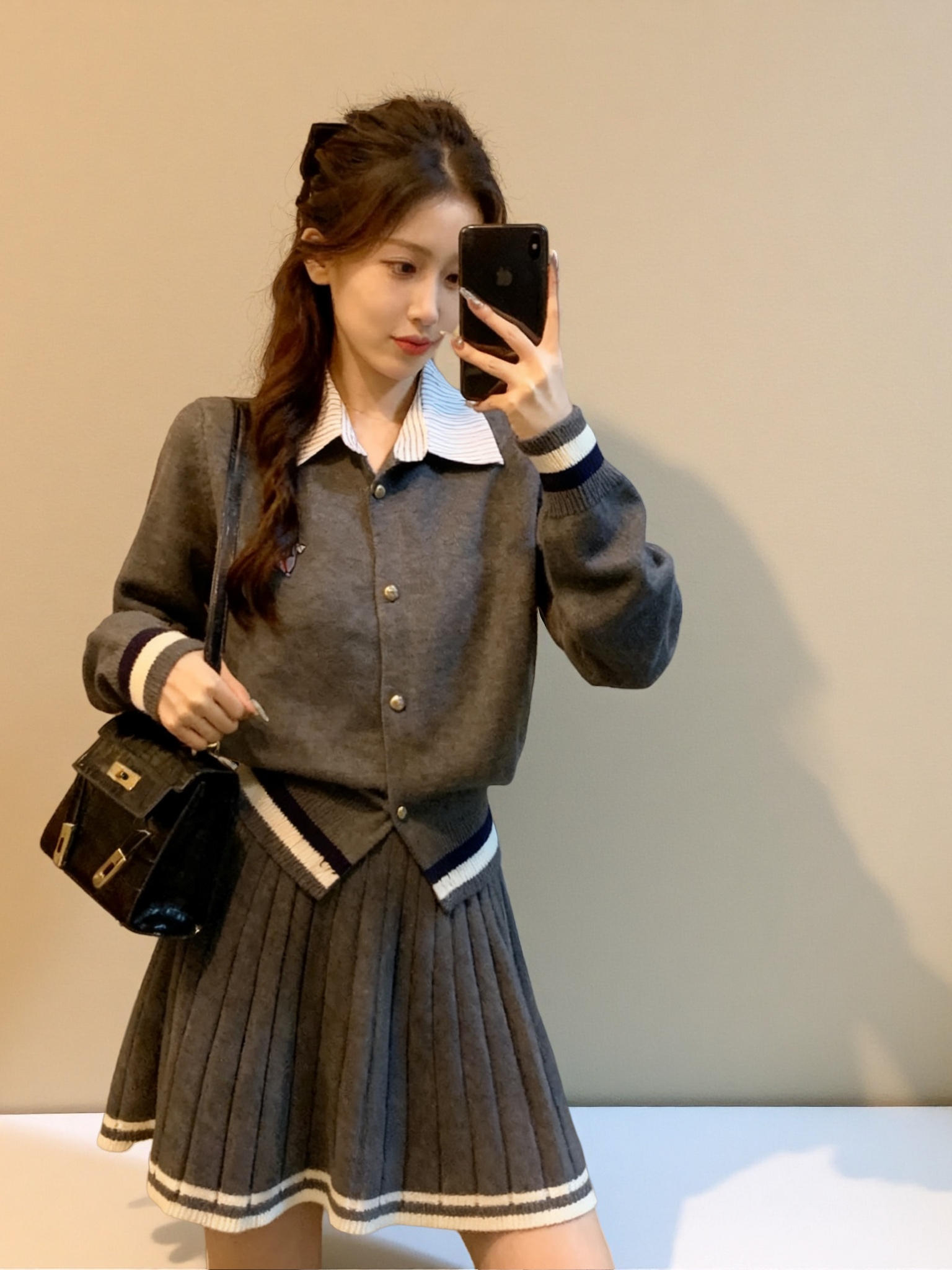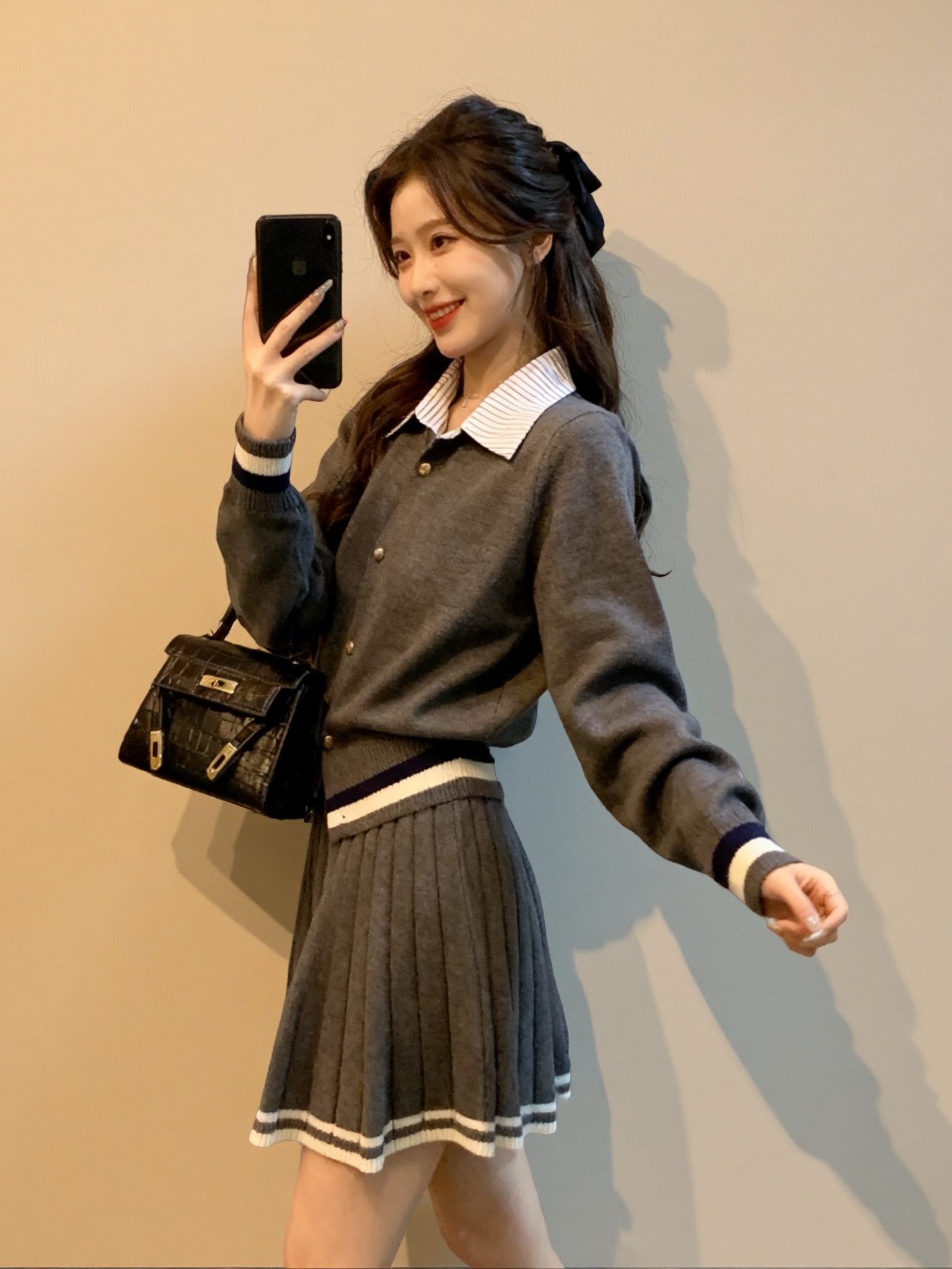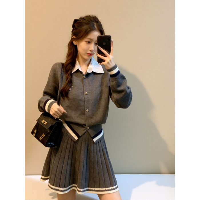韓系早秋超火穿搭套裝女2025新款學院風灰色針織毛衣半身裙兩件套