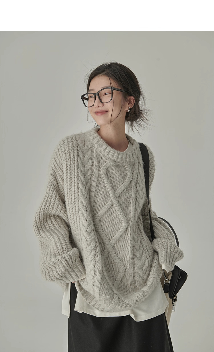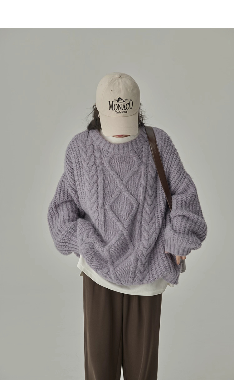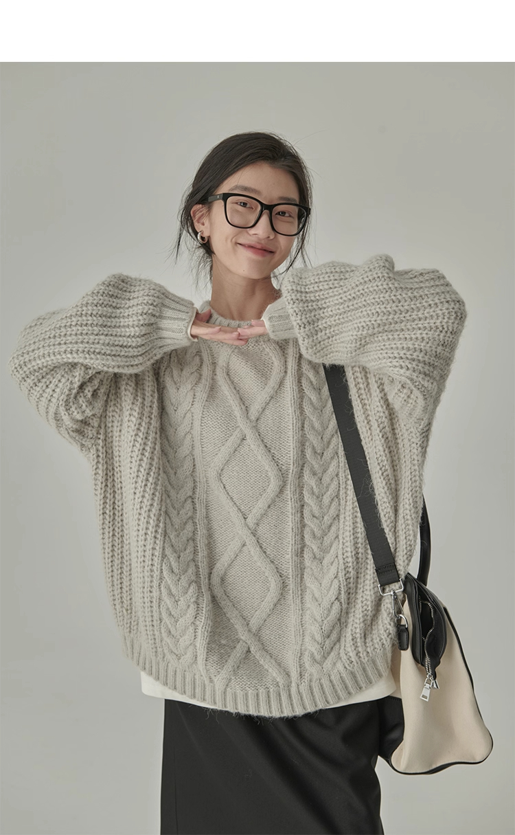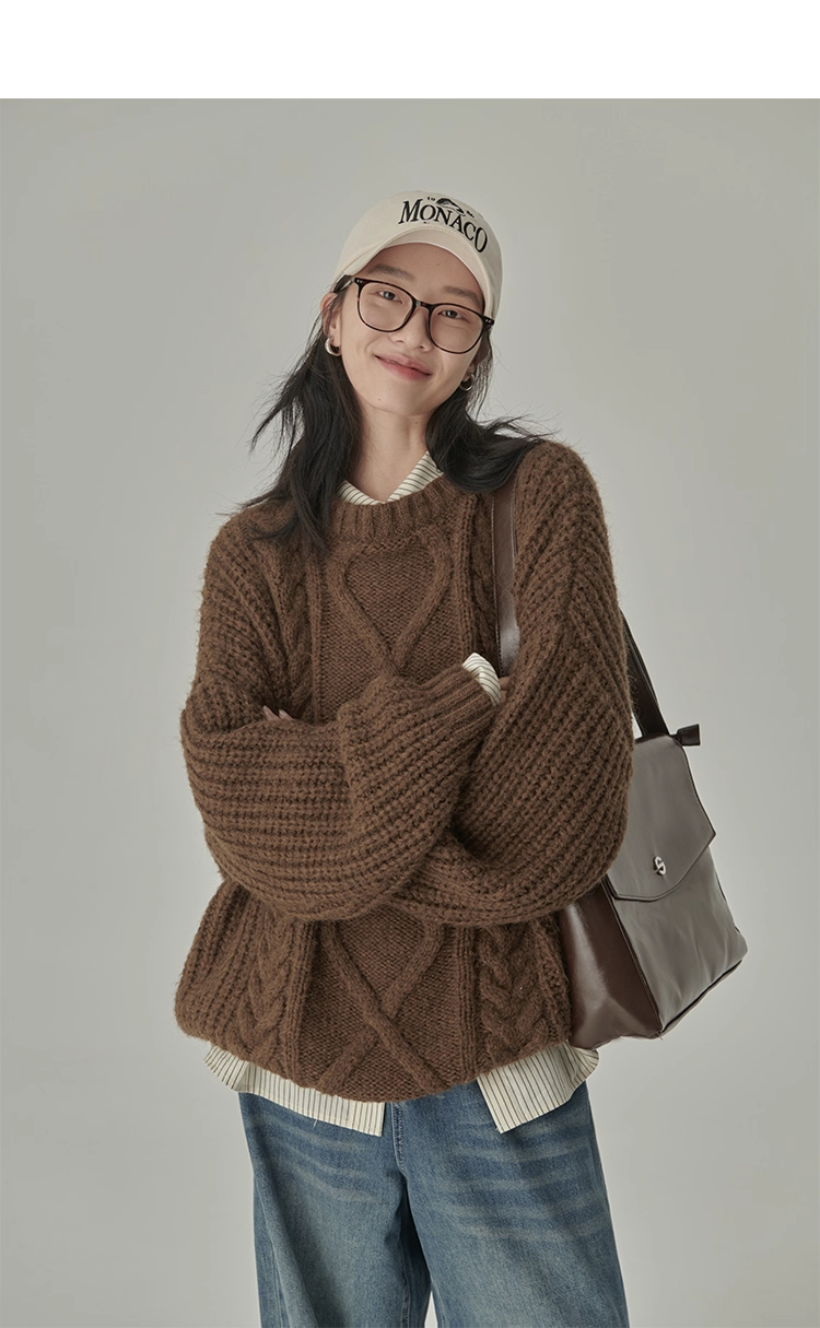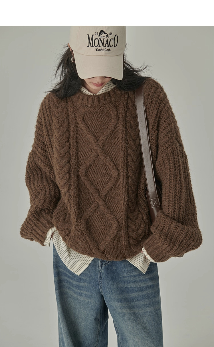 秋冬季松弛感寬松復古套頭麻花加厚單外穿內搭毛衣針織衫女慵懶風