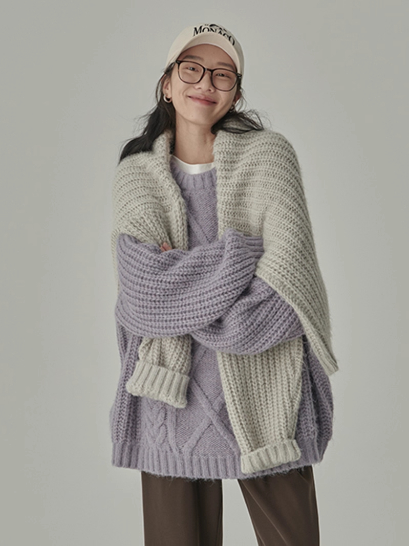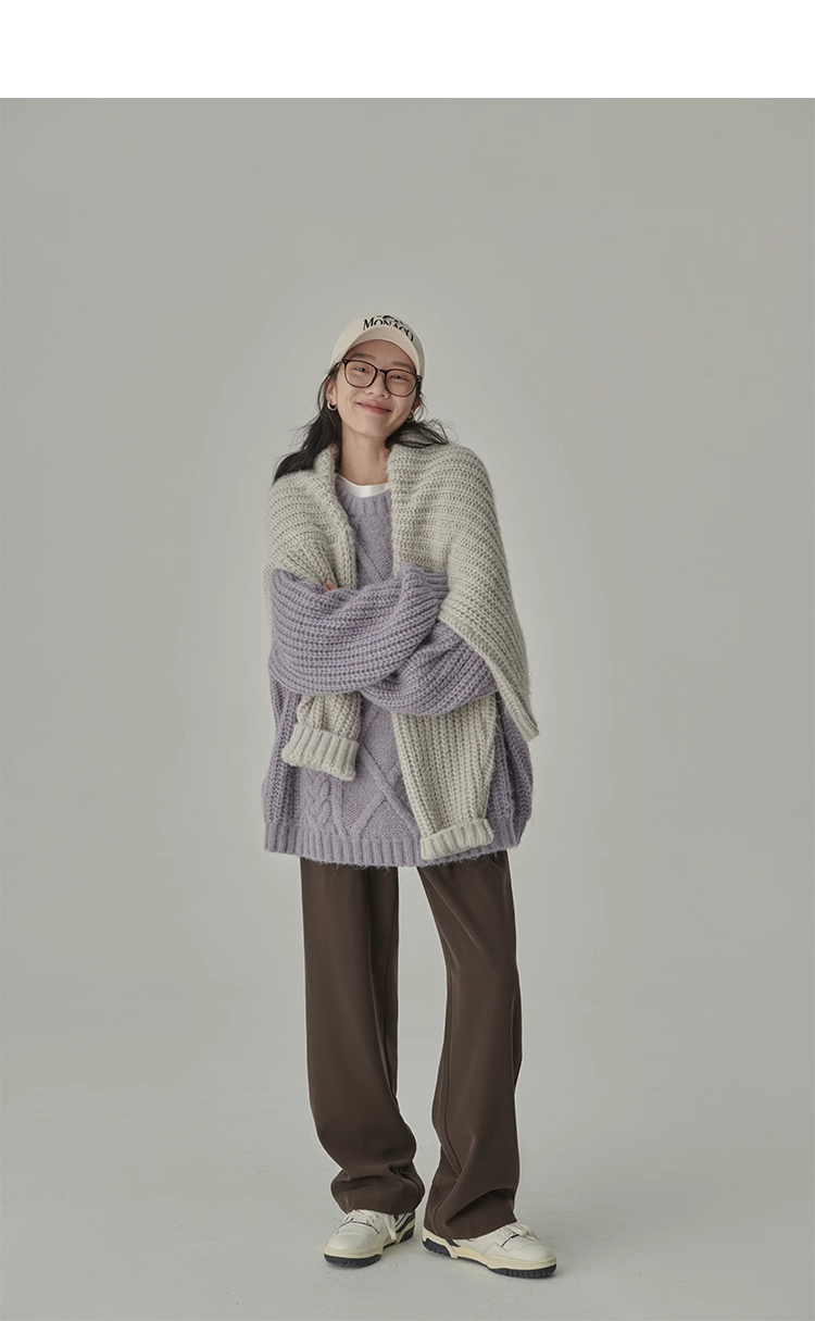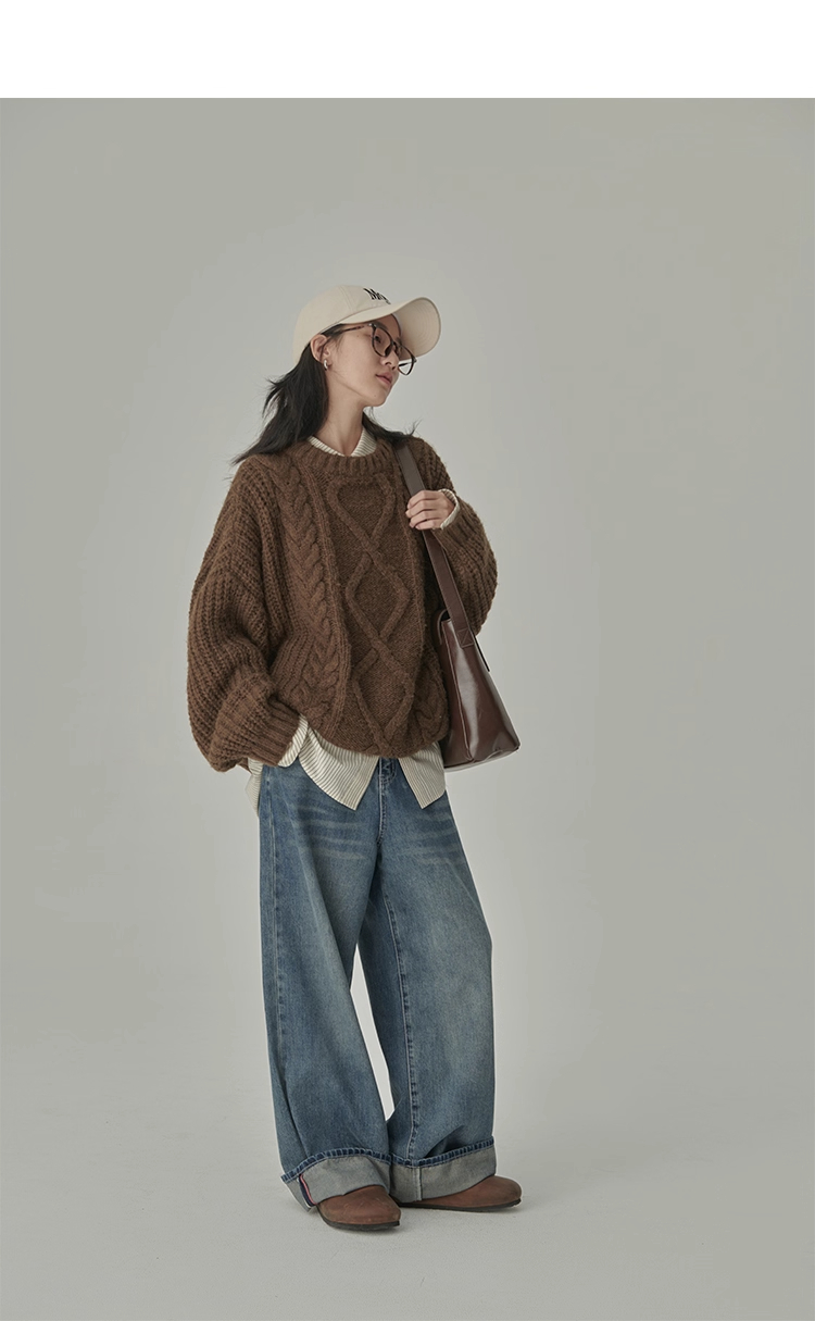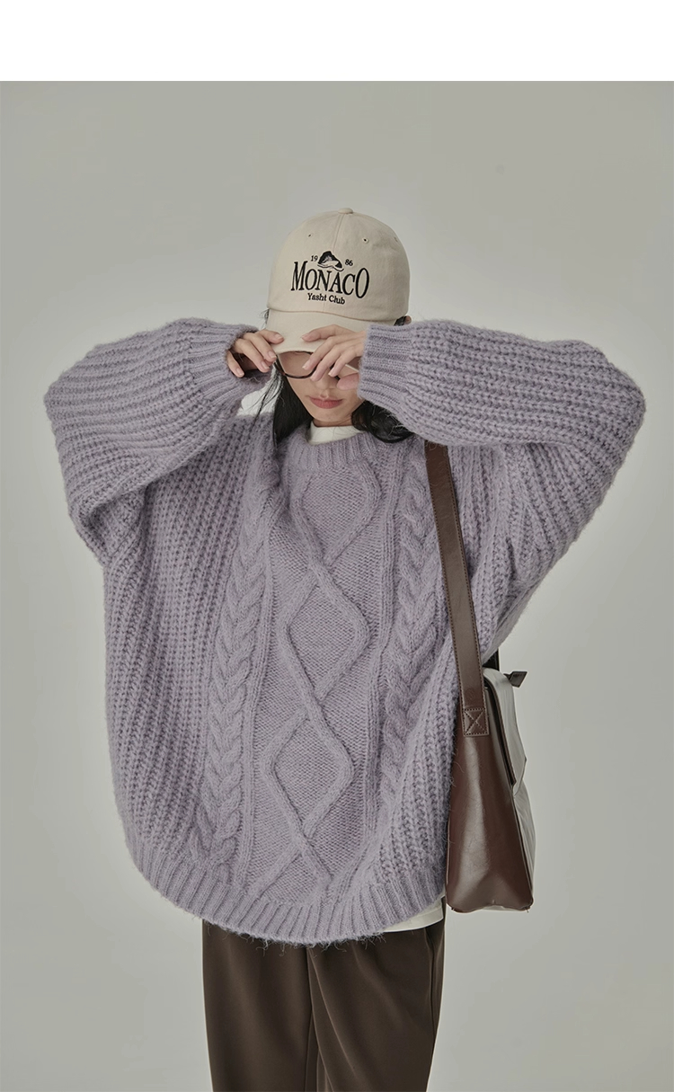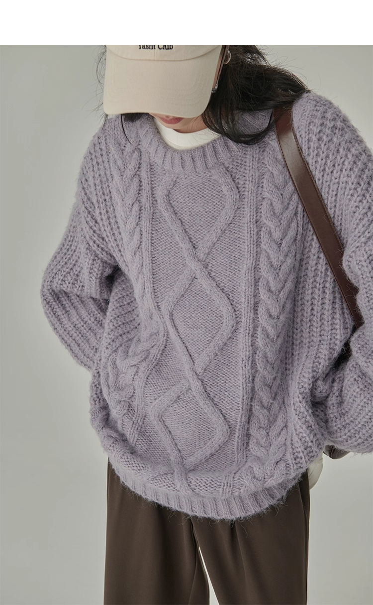 秋冬季松弛感寬松復古套頭麻花加厚單外穿內搭毛衣針織衫女慵懶風