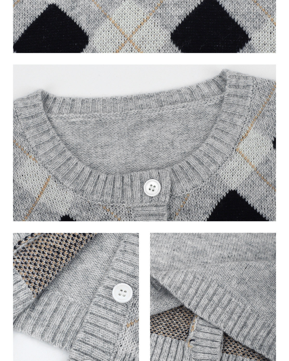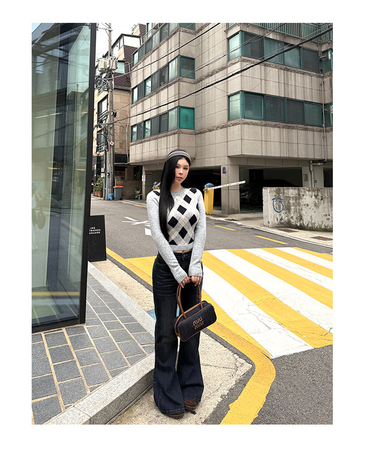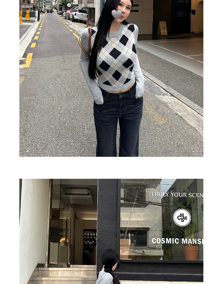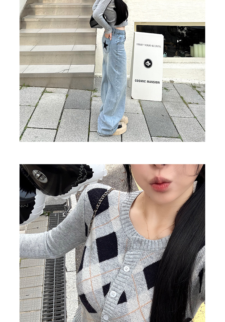 黑澤玄七2025秋季新款微胖長袖毛衣女菱形格提花修身短款開衫外套