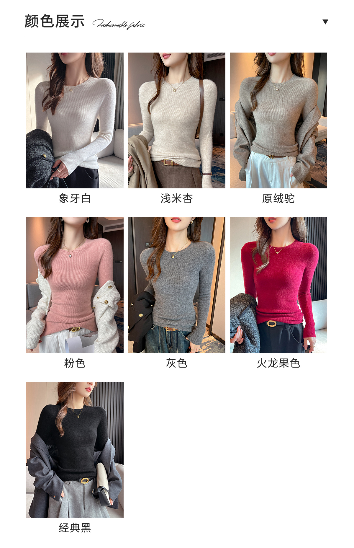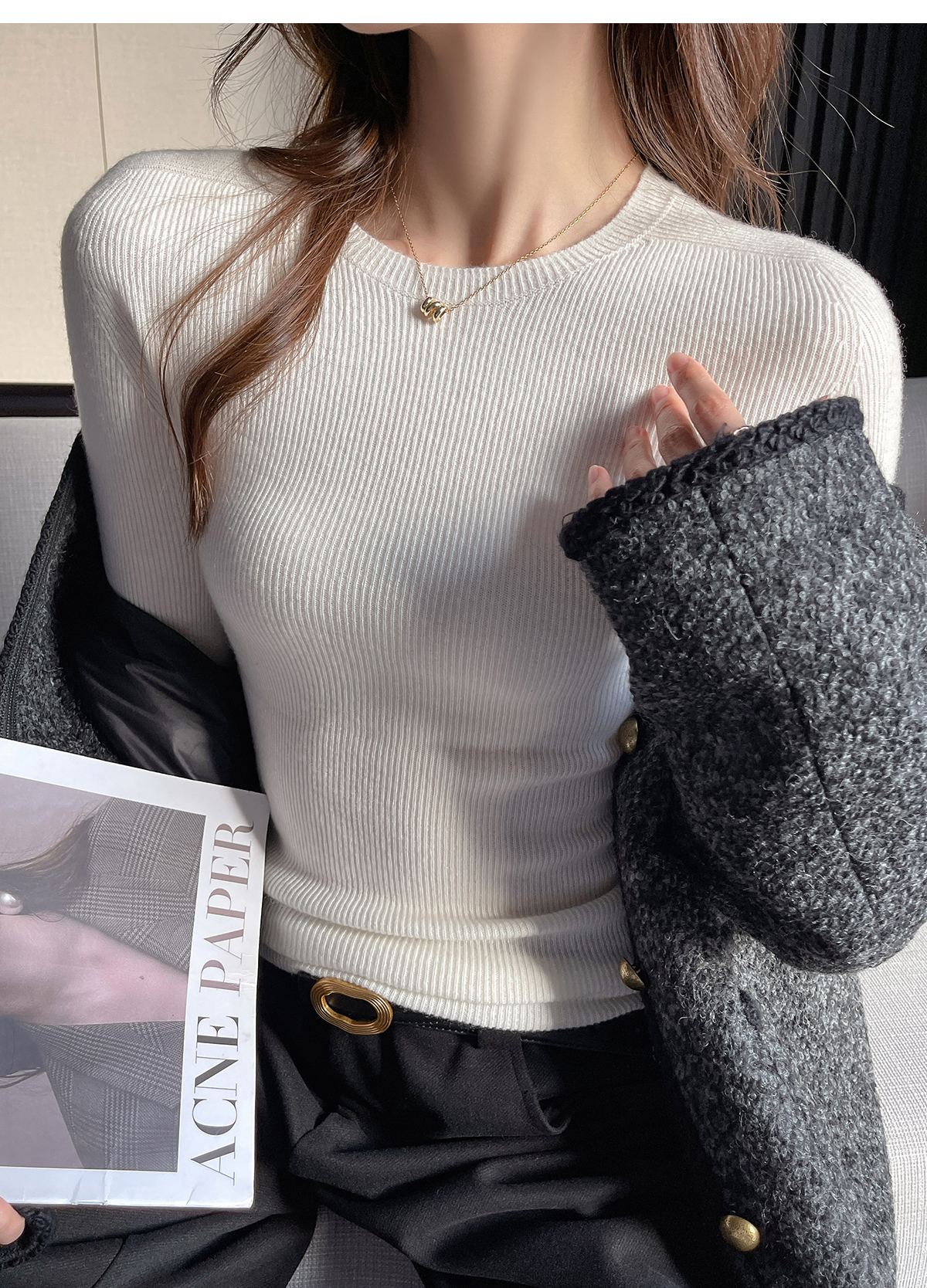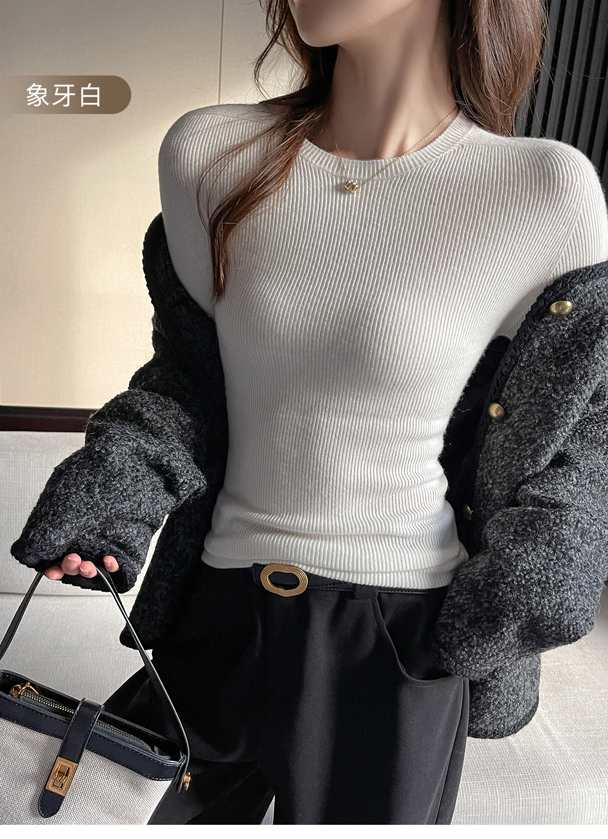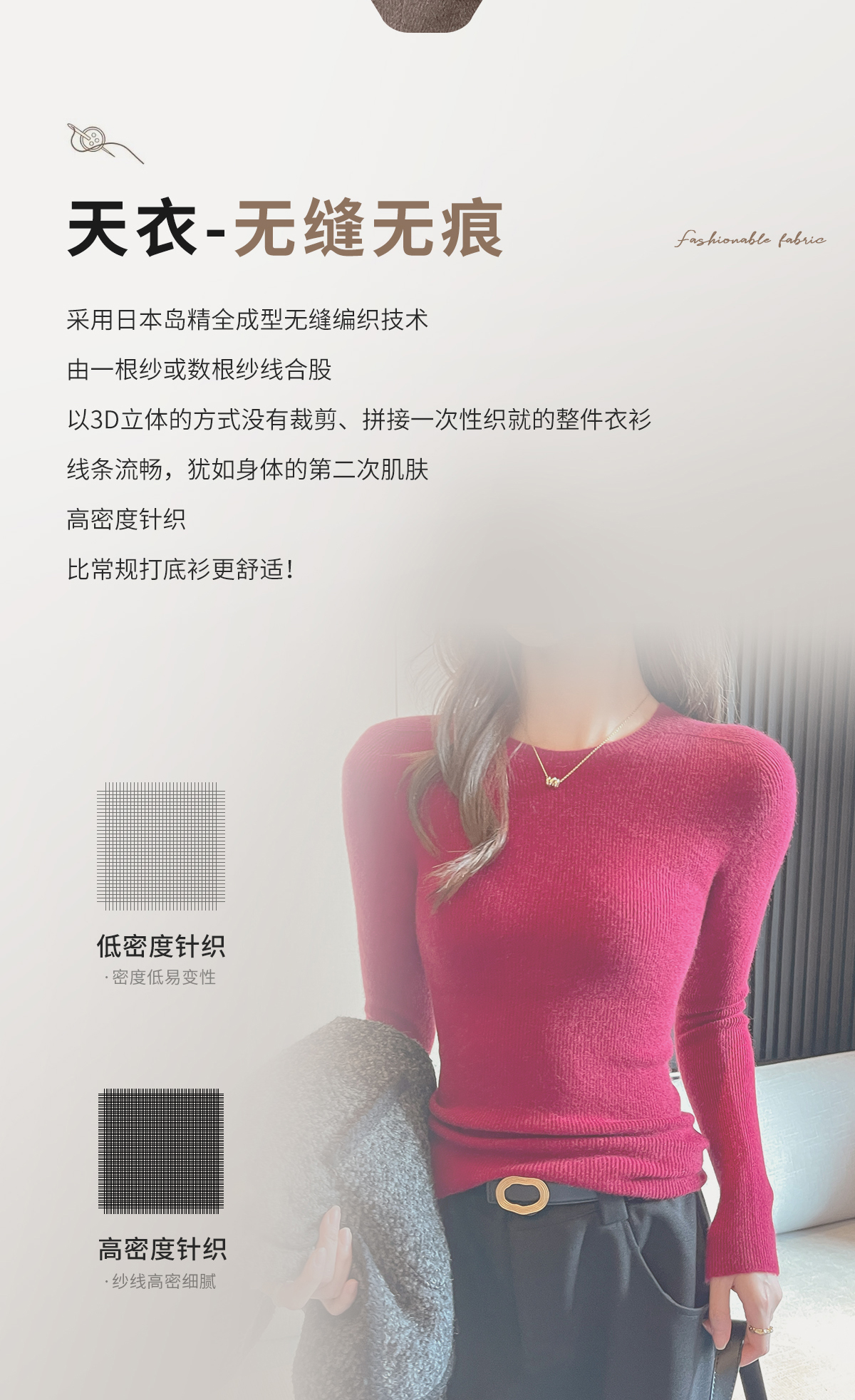 膚感細膩~無縫一體圓領針織衫毛衣女秋冬修身長袖打底衫緊身內搭