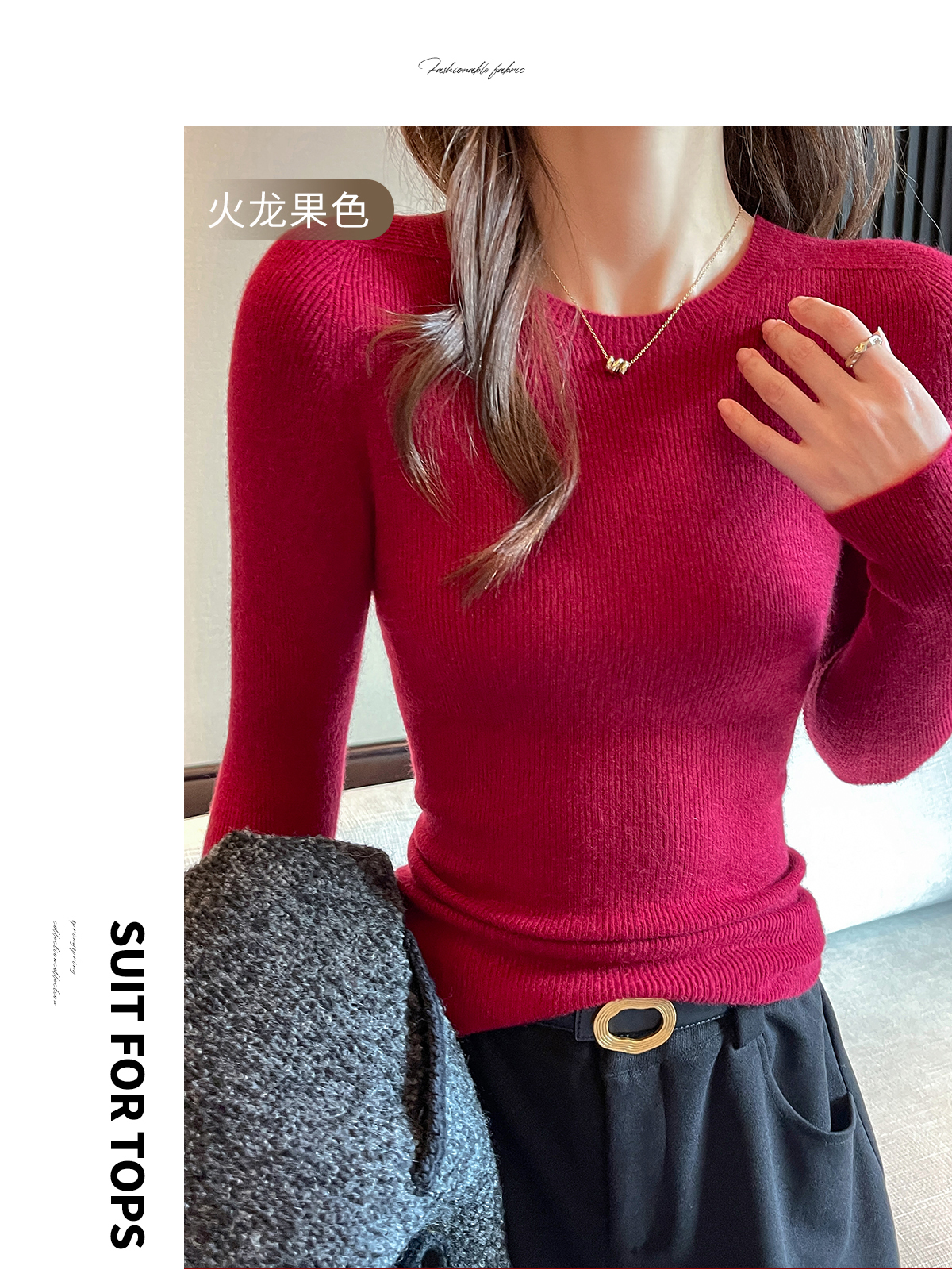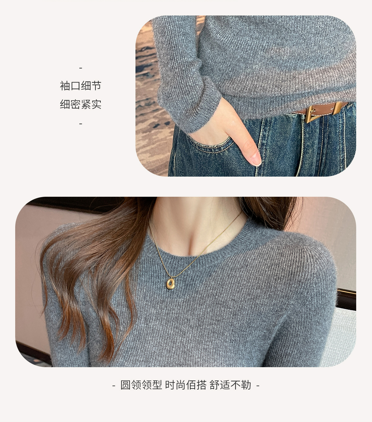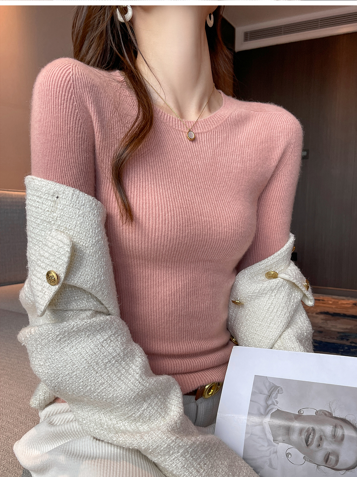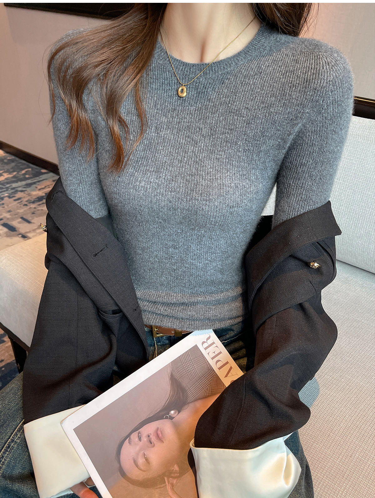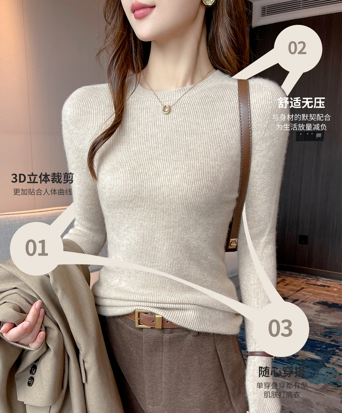 膚感細膩~無縫一體圓領針織衫毛衣女秋冬修身長袖打底衫緊身內搭
