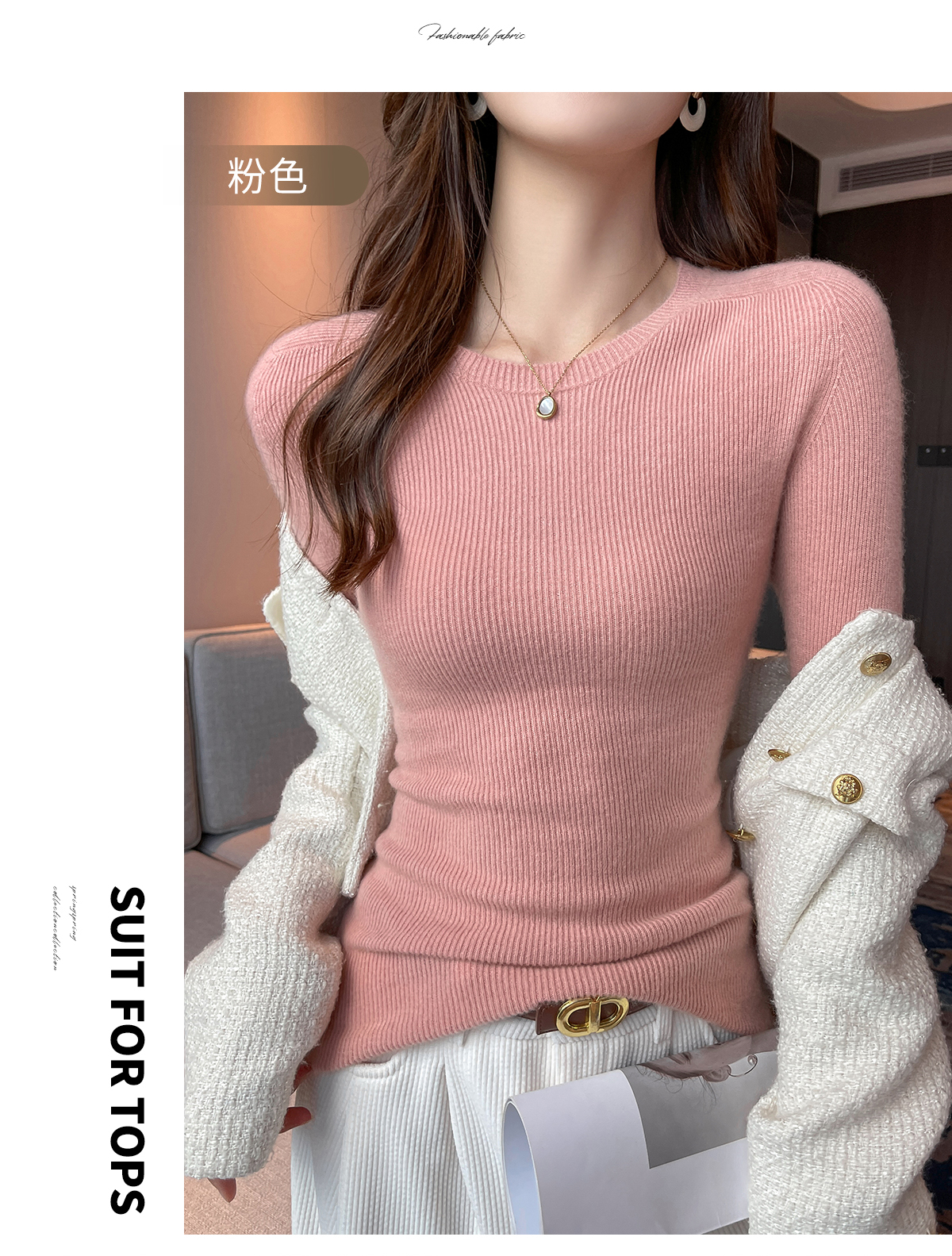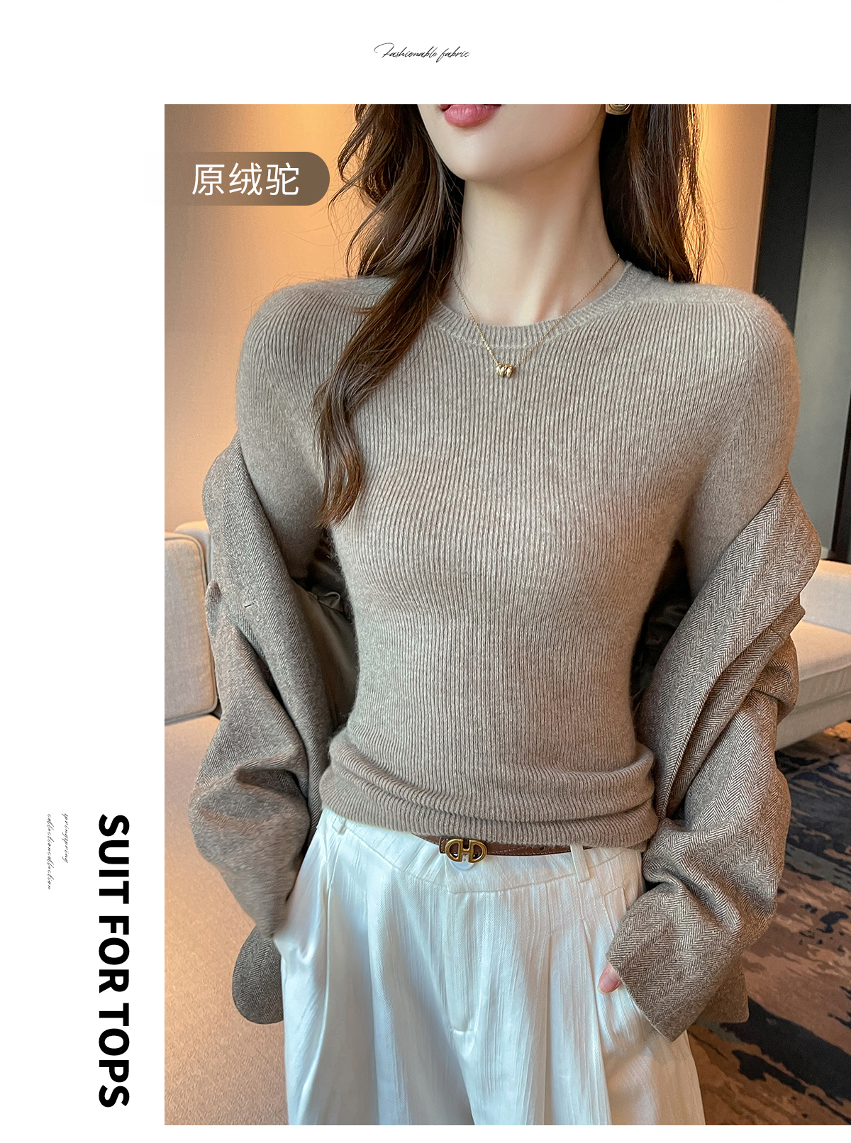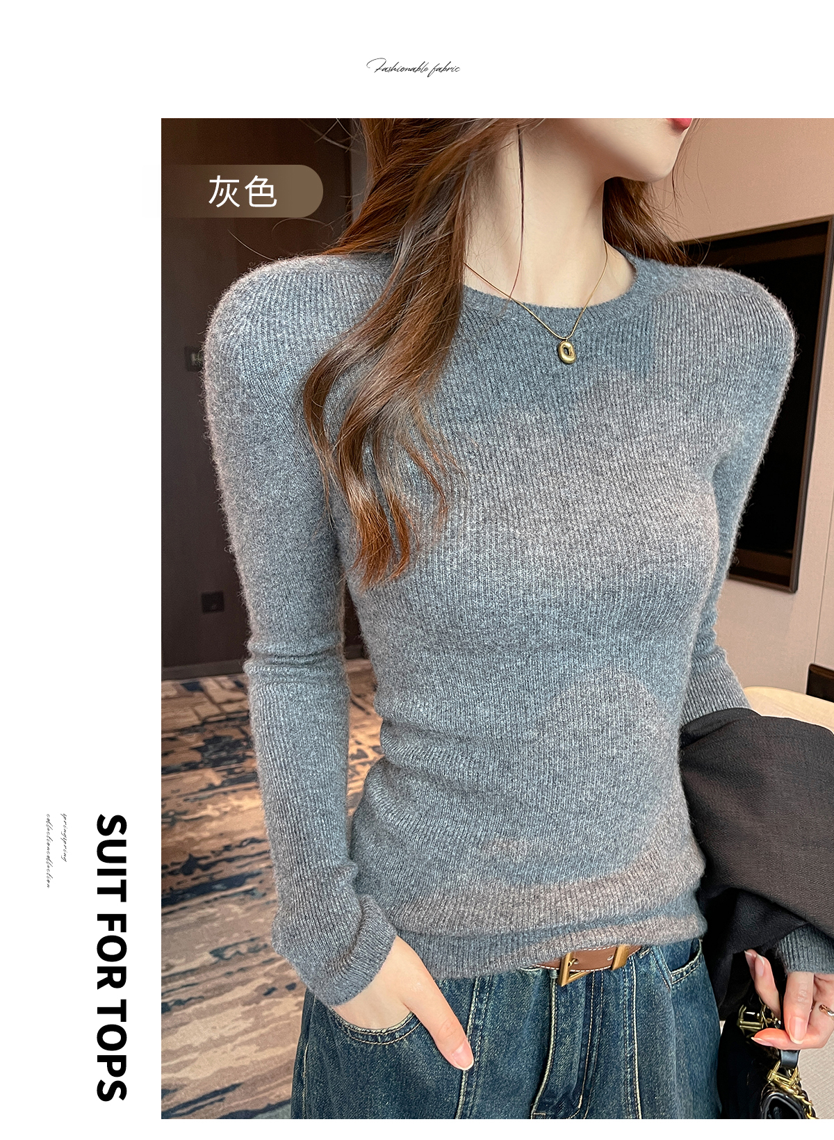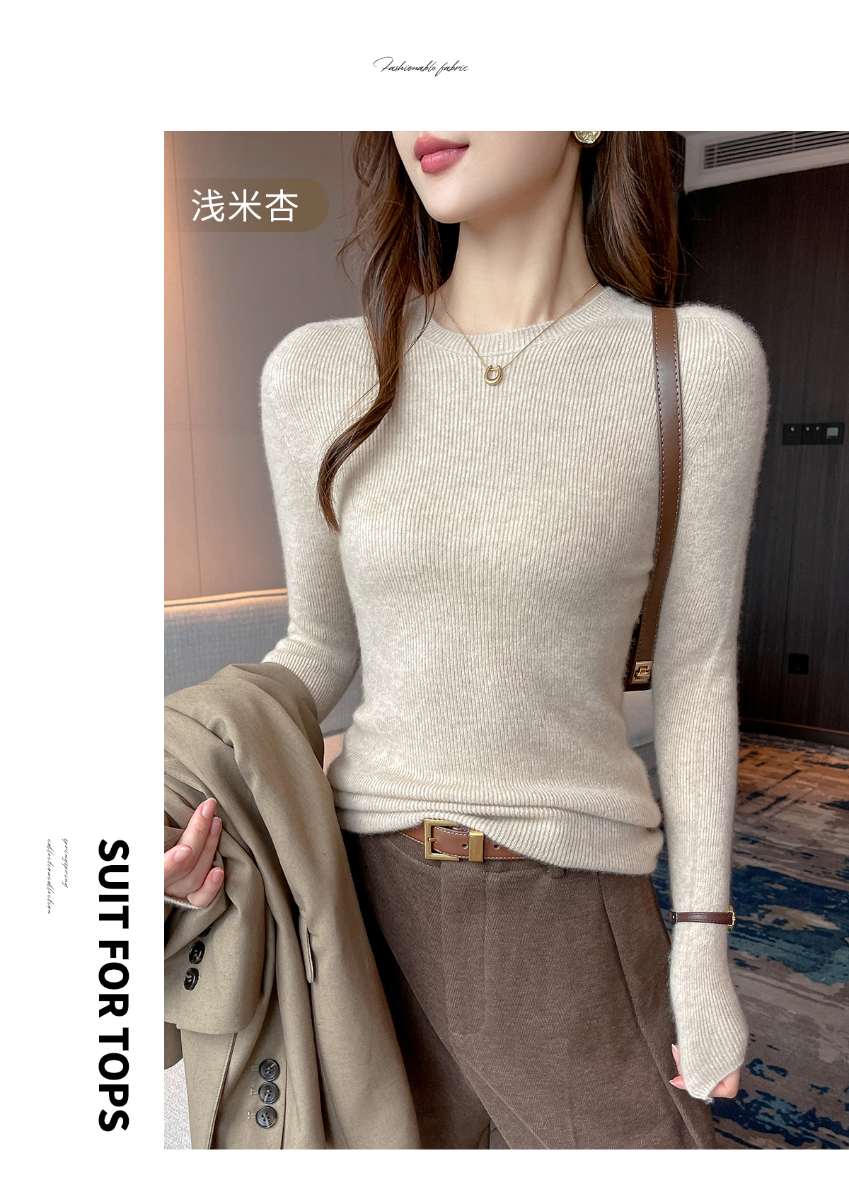 膚感細膩~無縫一體圓領針織衫毛衣女秋冬修身長袖打底衫緊身內搭