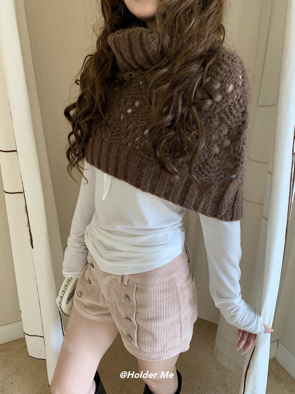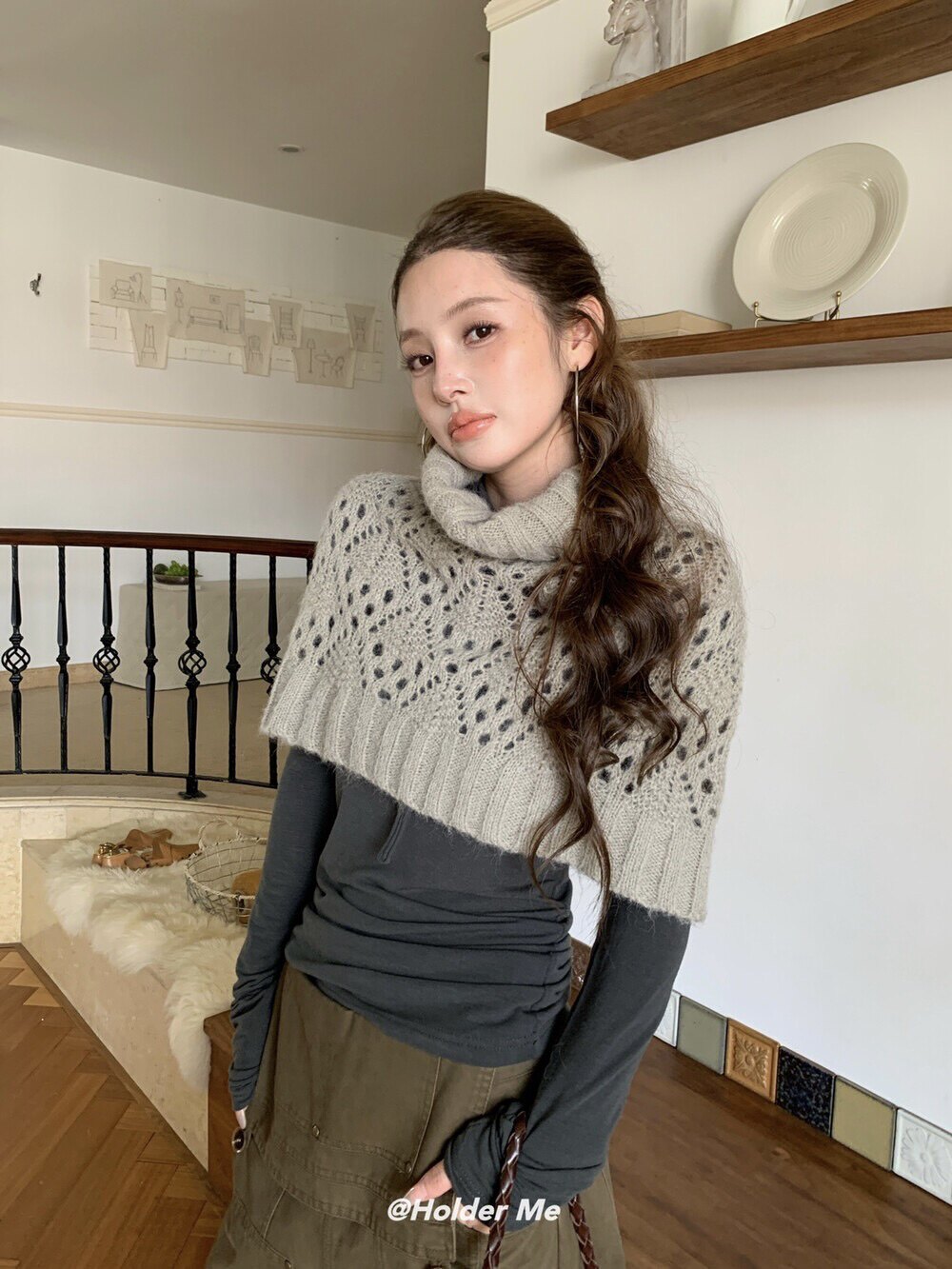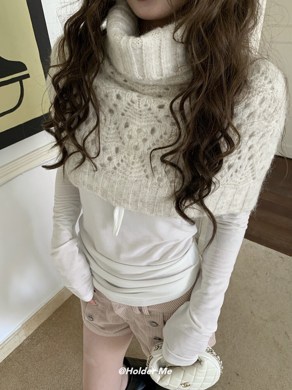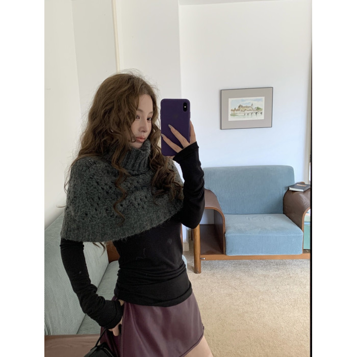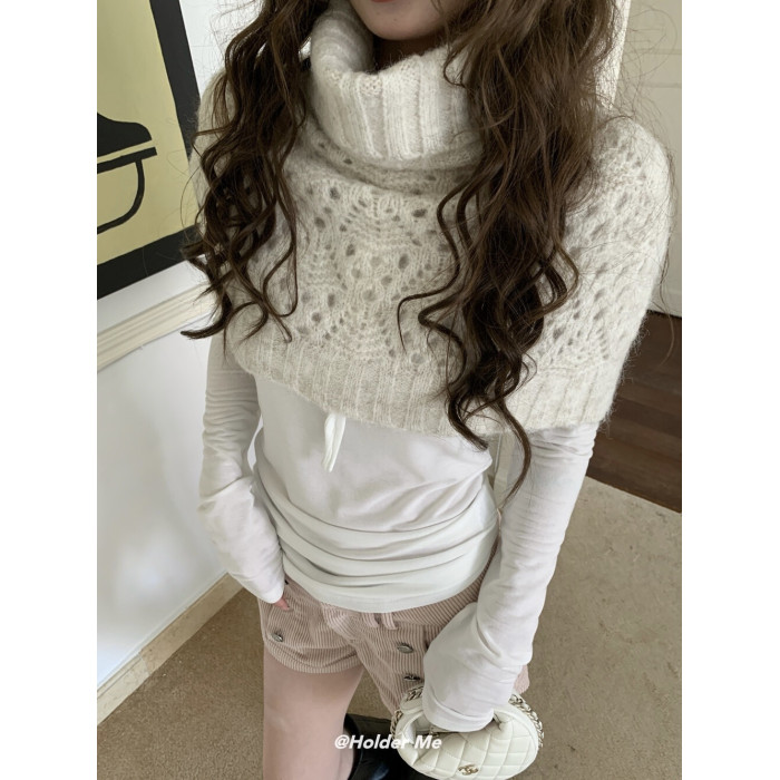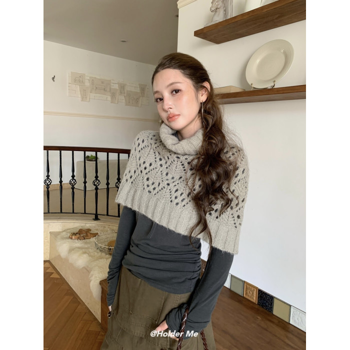 HOLDER十三行2025秋季新款韓系百搭設計感披肩曡搭高領短款毛衣女