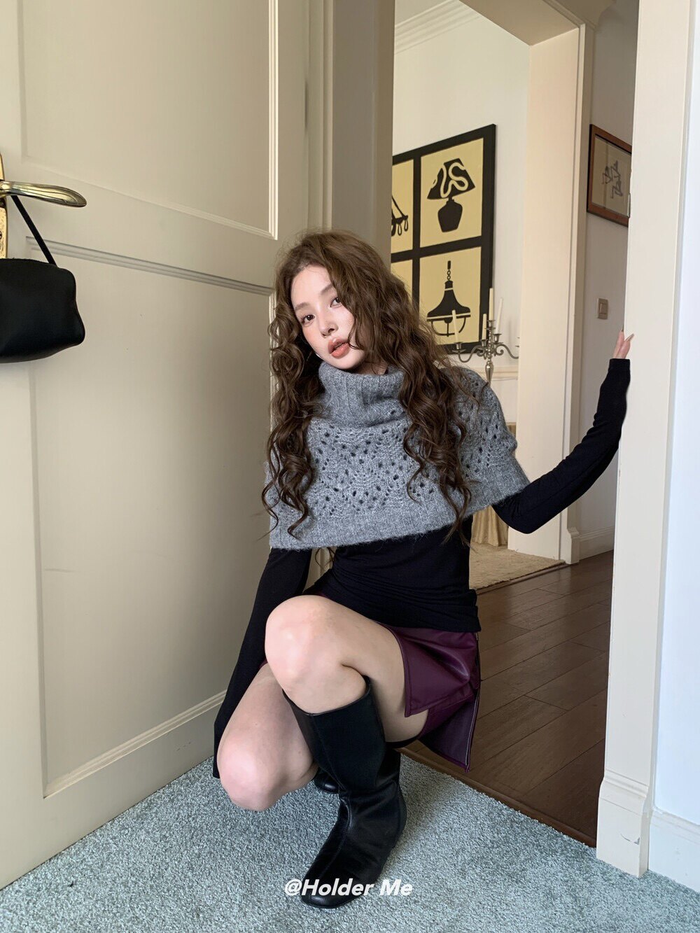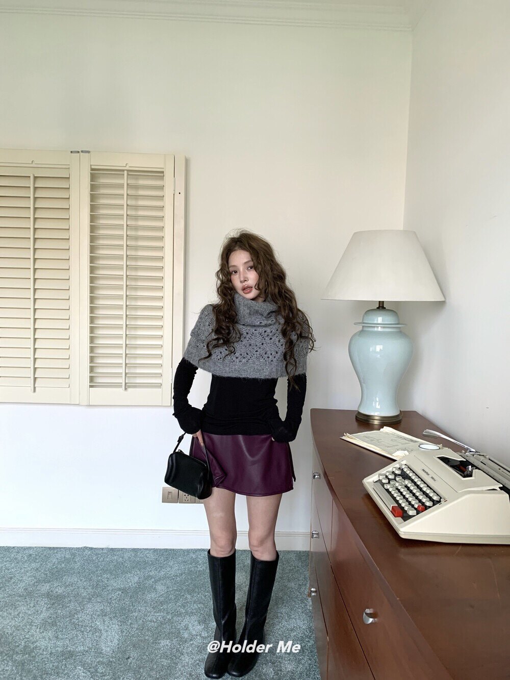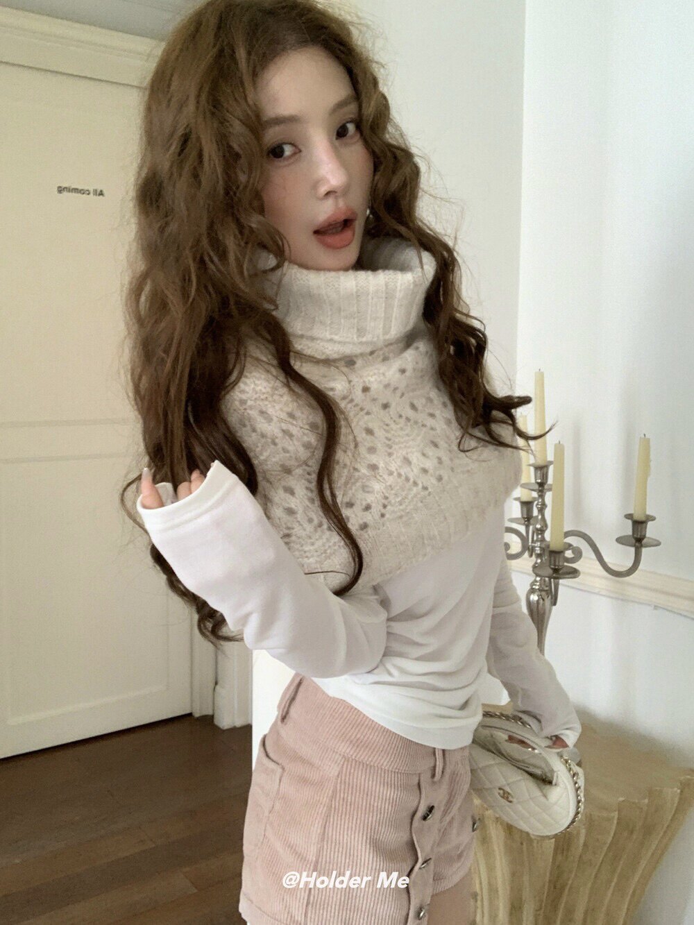HOLDER十三行2025秋季新款韓系百搭設計感披肩曡搭高領短款毛衣女