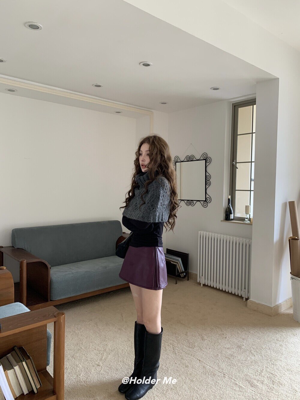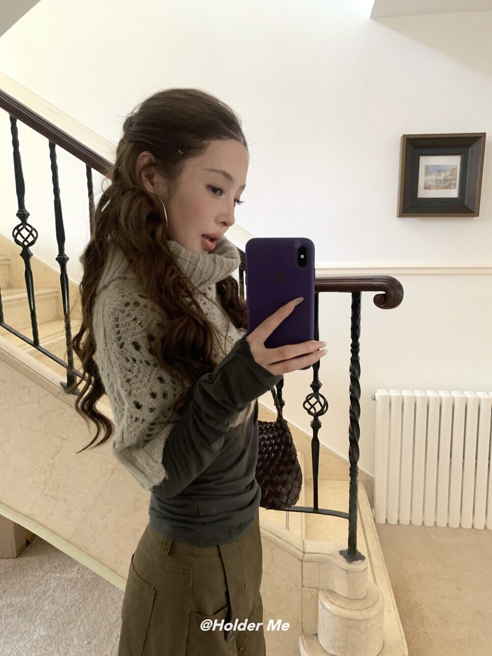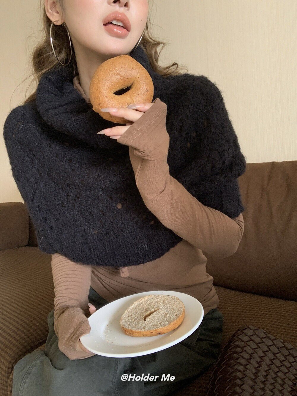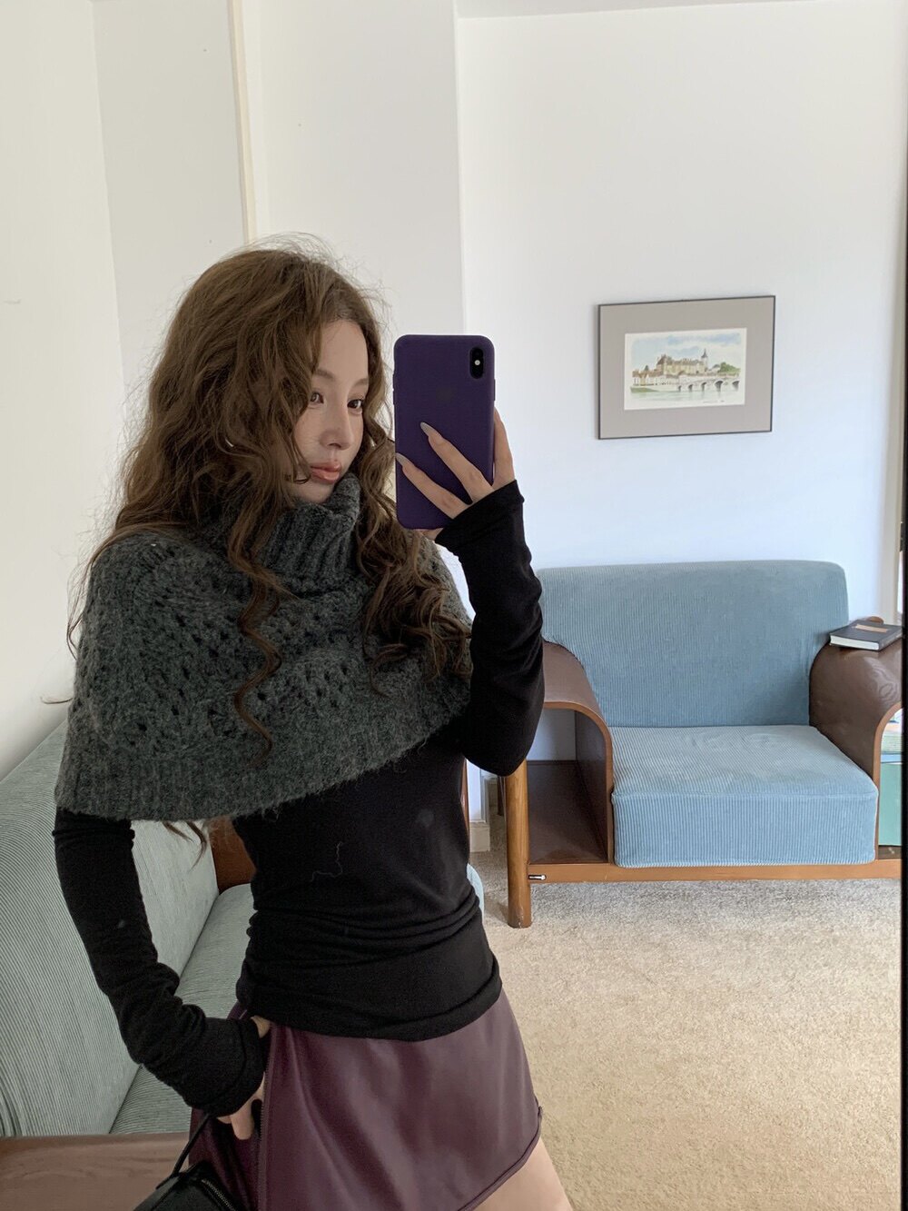 HOLDER十三行2025秋季新款韓系百搭設計感披肩曡搭高領短款毛衣女