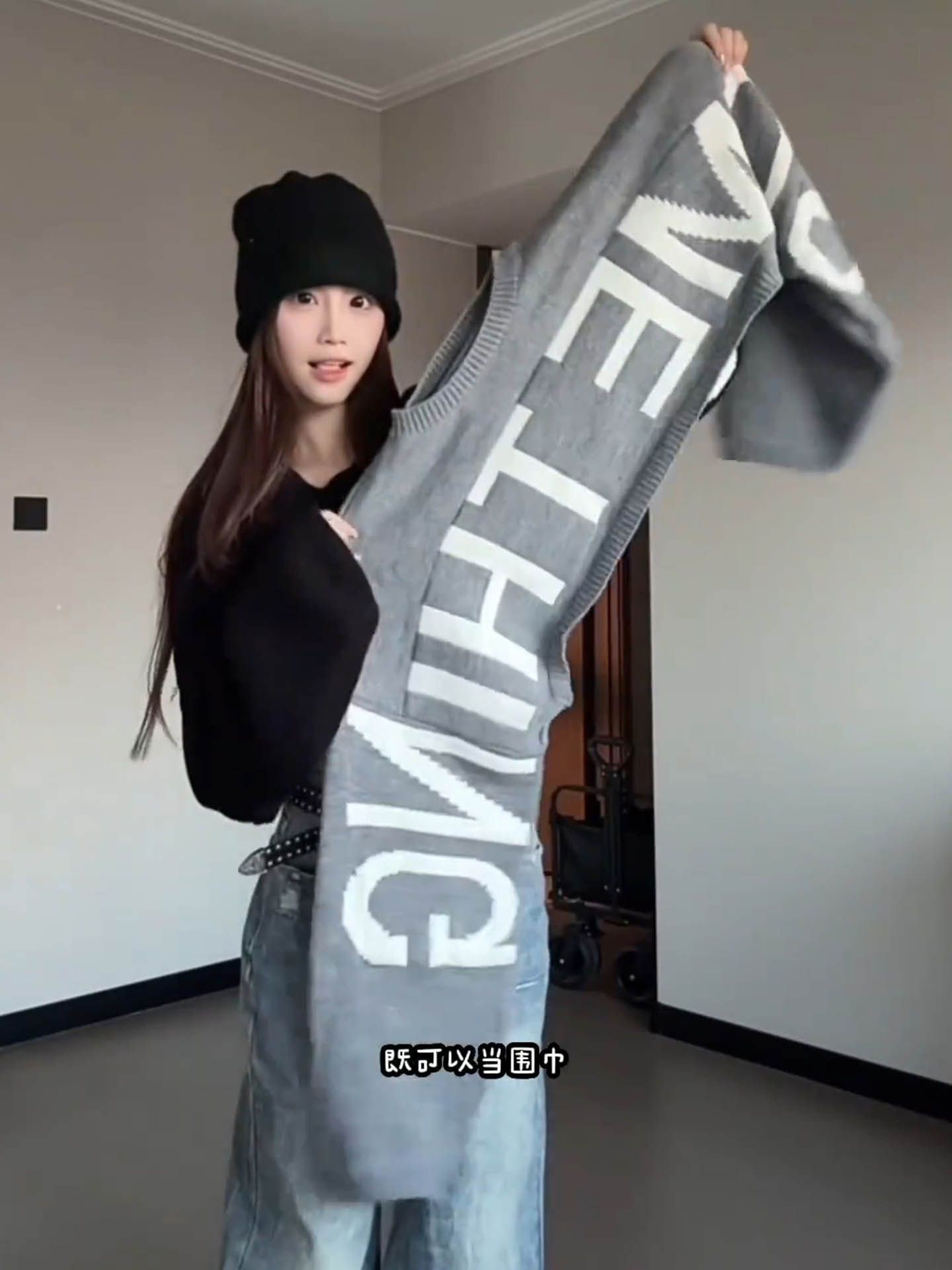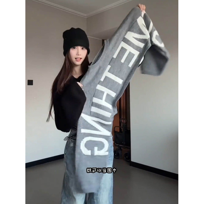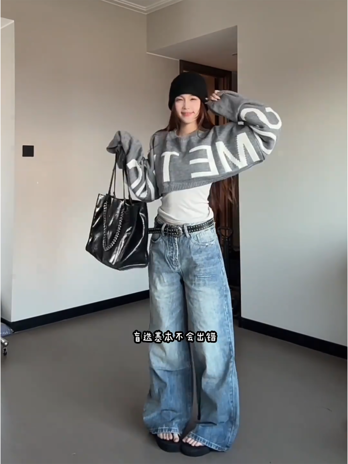 美式復古超大袖子印花休閒短款毛衣女秋冬季小衆設計辣妹針織上衣