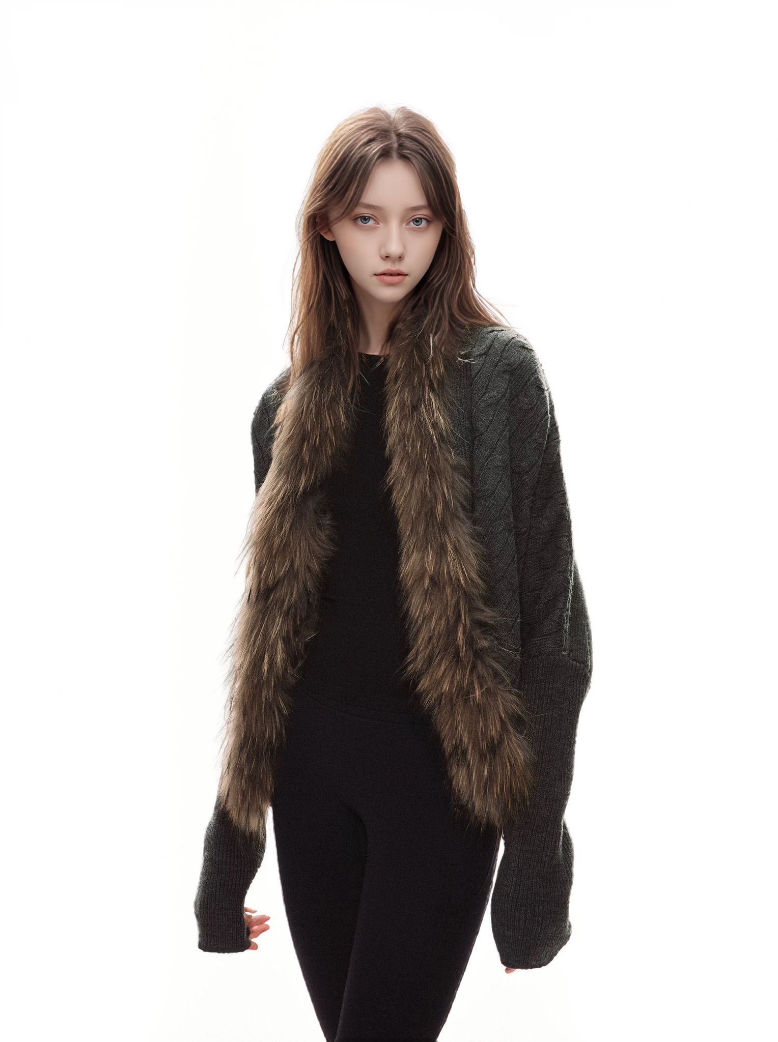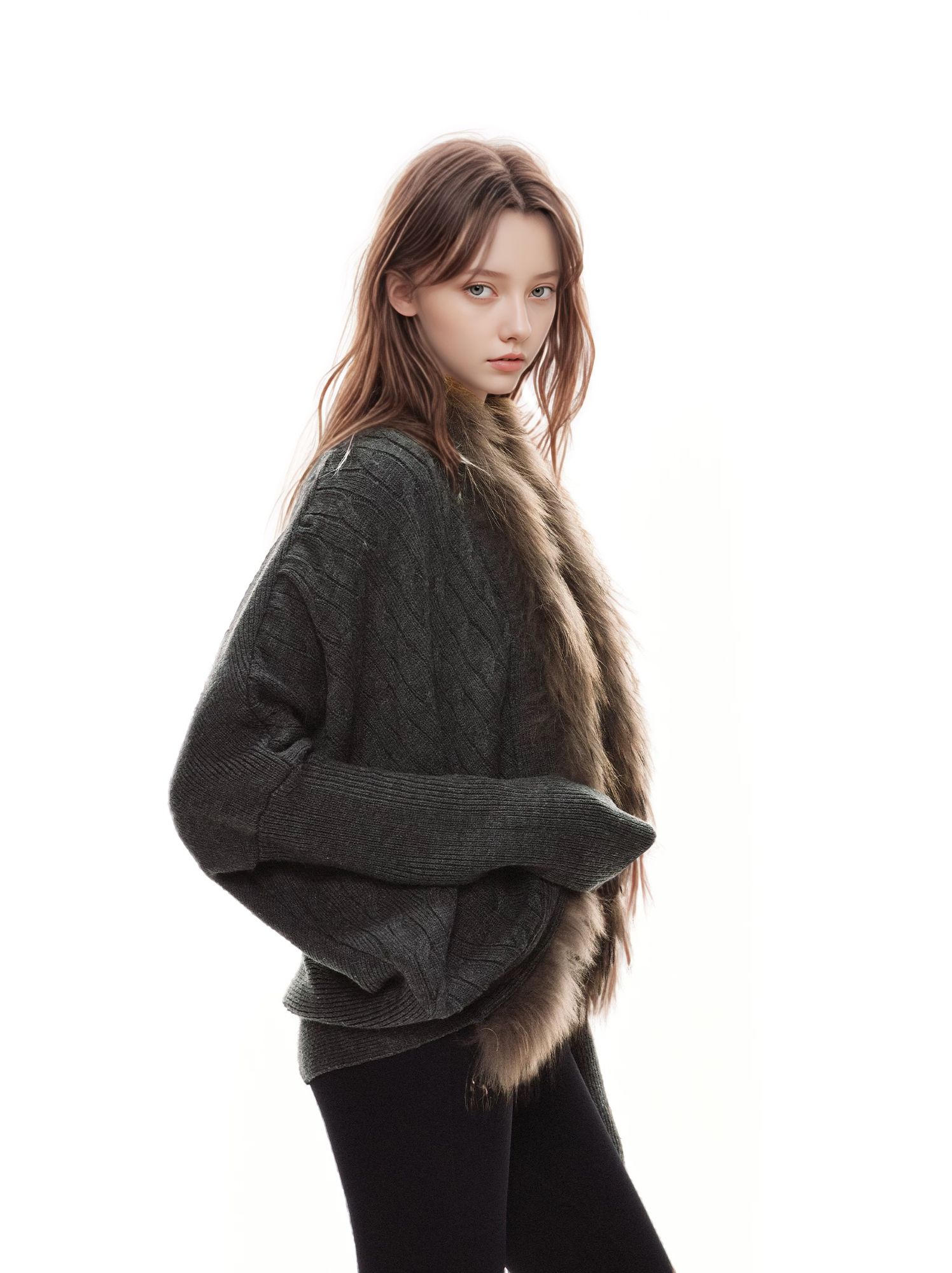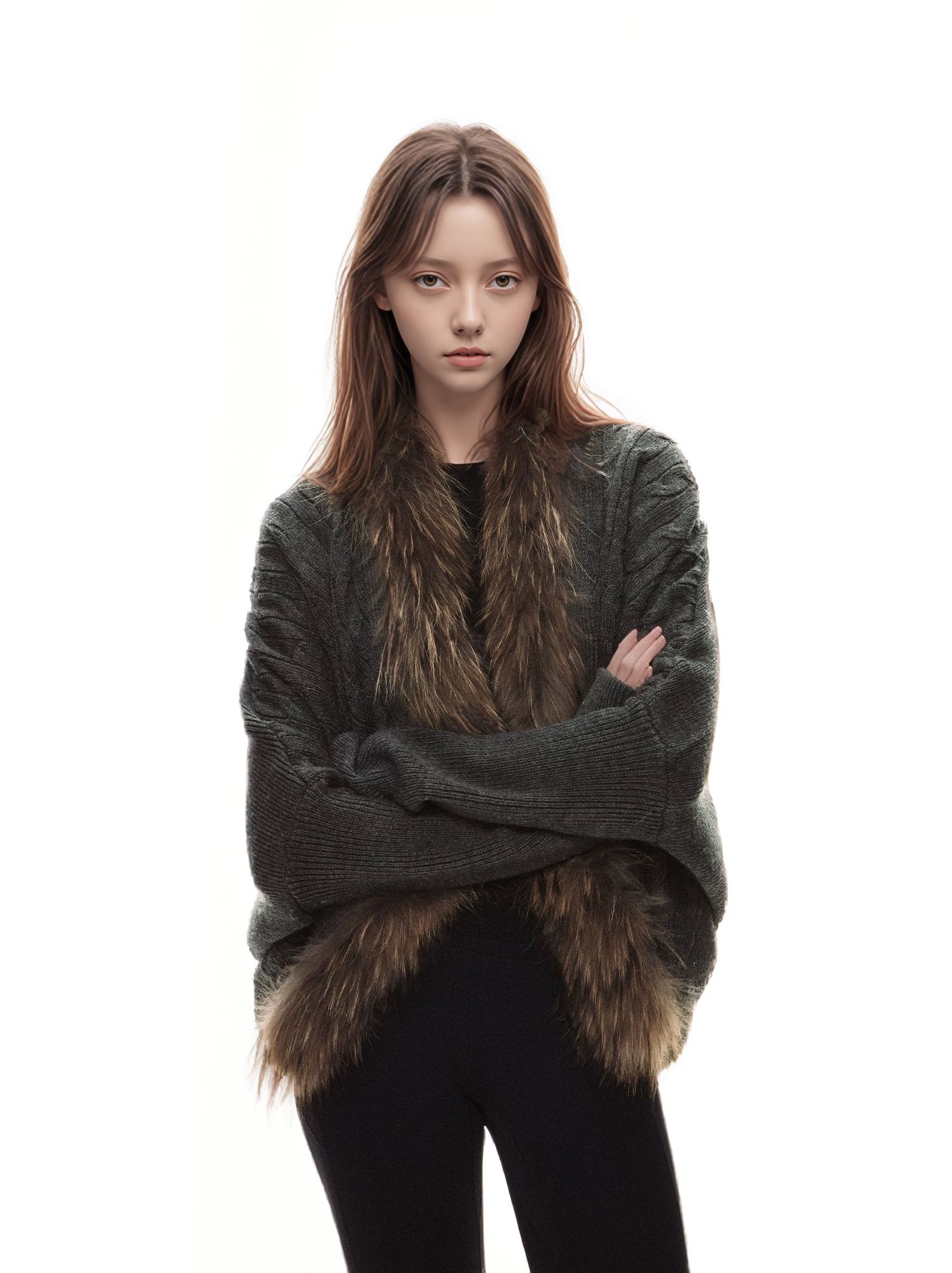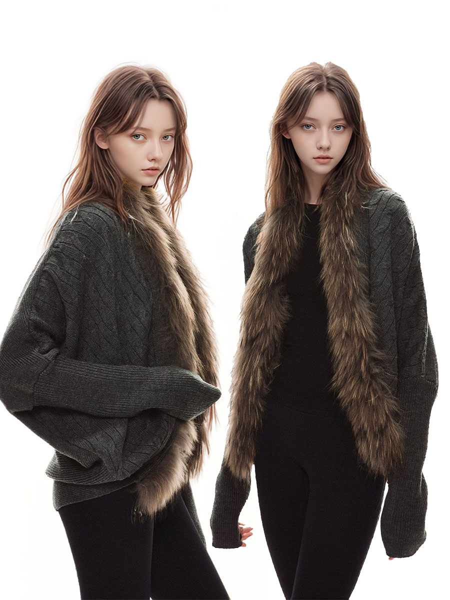 美式辣妹毛領長袖針織毛衣開衫女秋冬慵懶設計高級感小衆復古外套