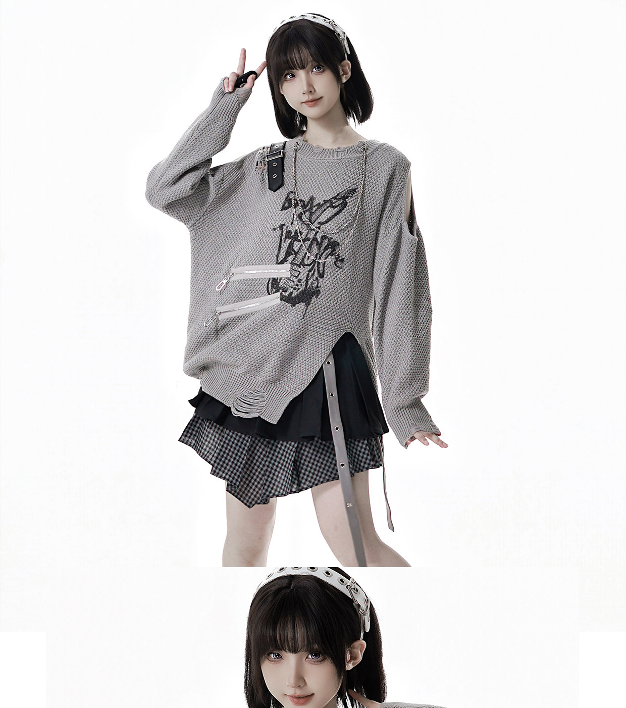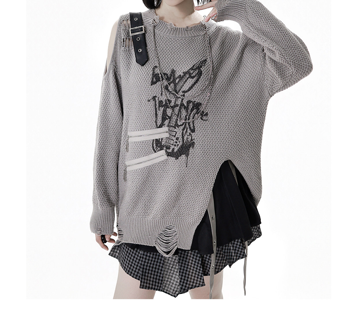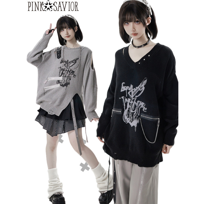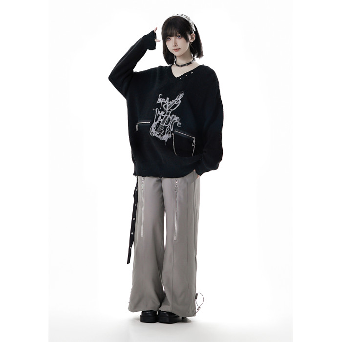 pinksavior【灰度和弦】黑灰設計不規則粗織秋冬毛衣格紋搭配長褲