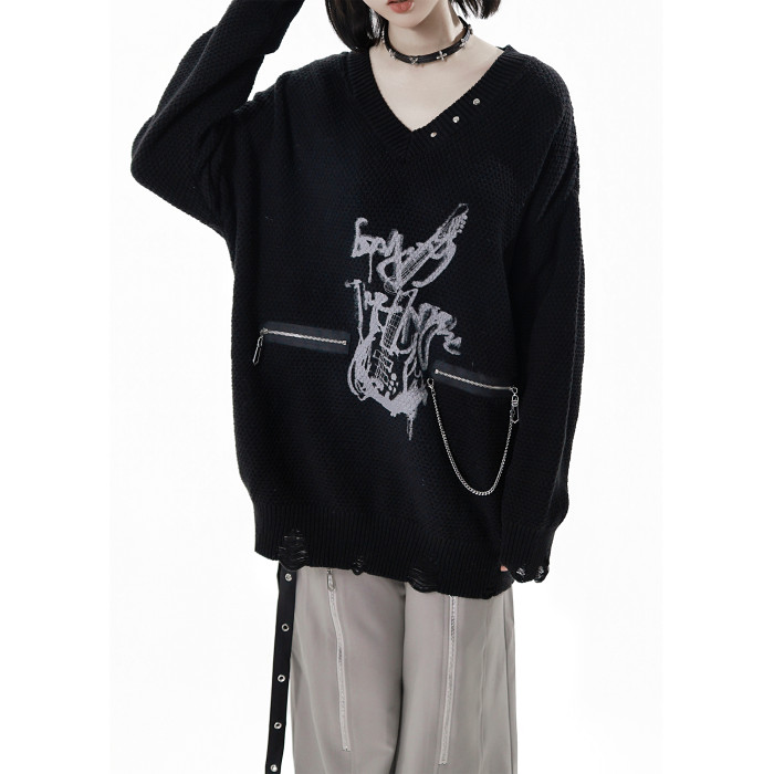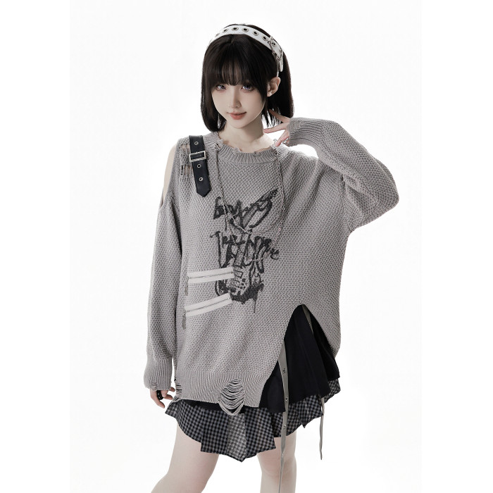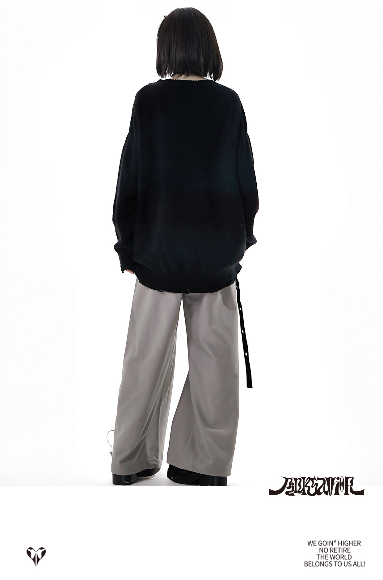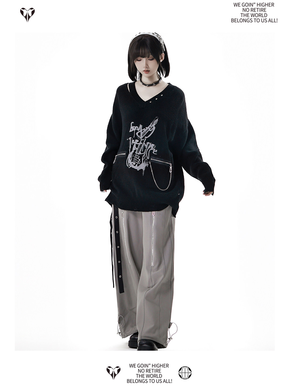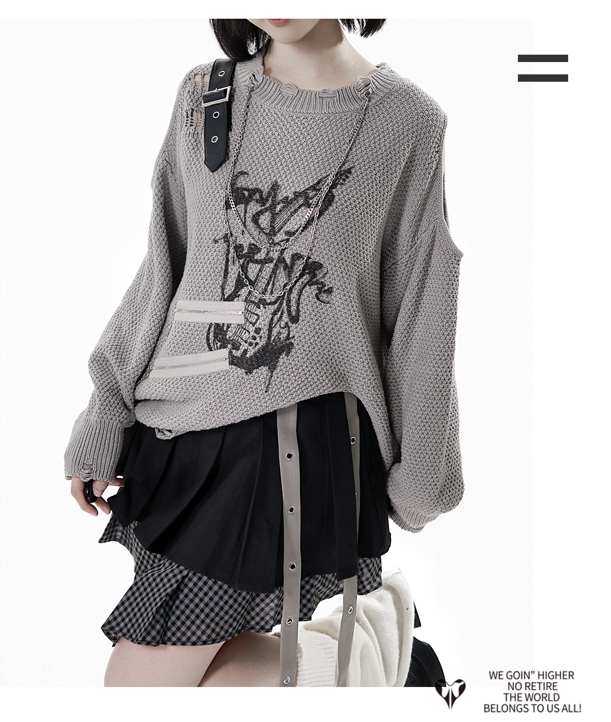pinksavior【灰度和弦】黑灰設計不規則粗織秋冬毛衣格紋搭配長褲